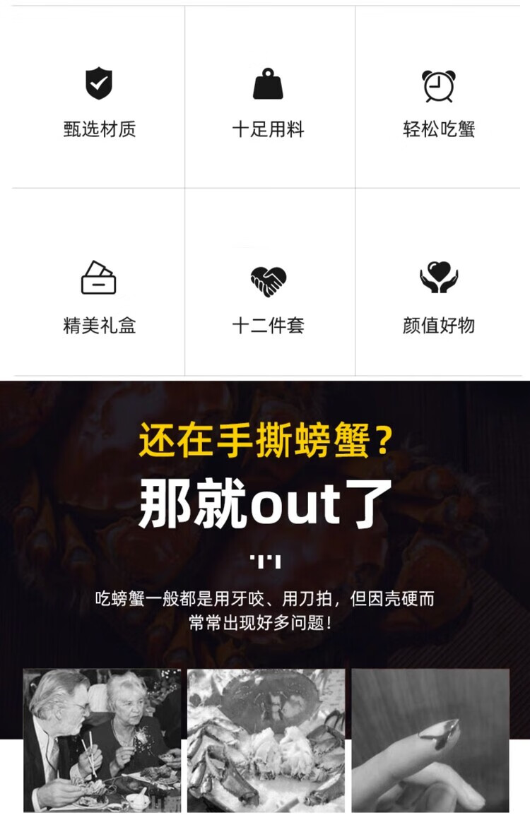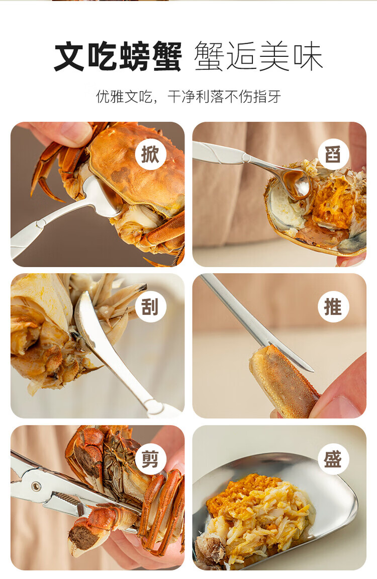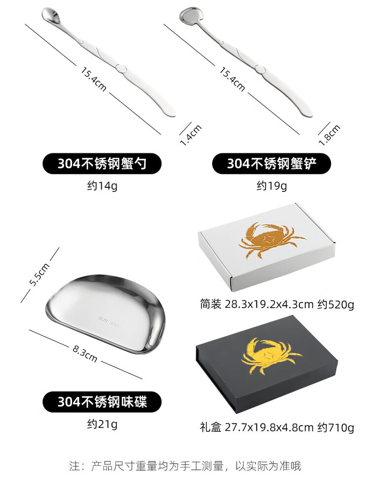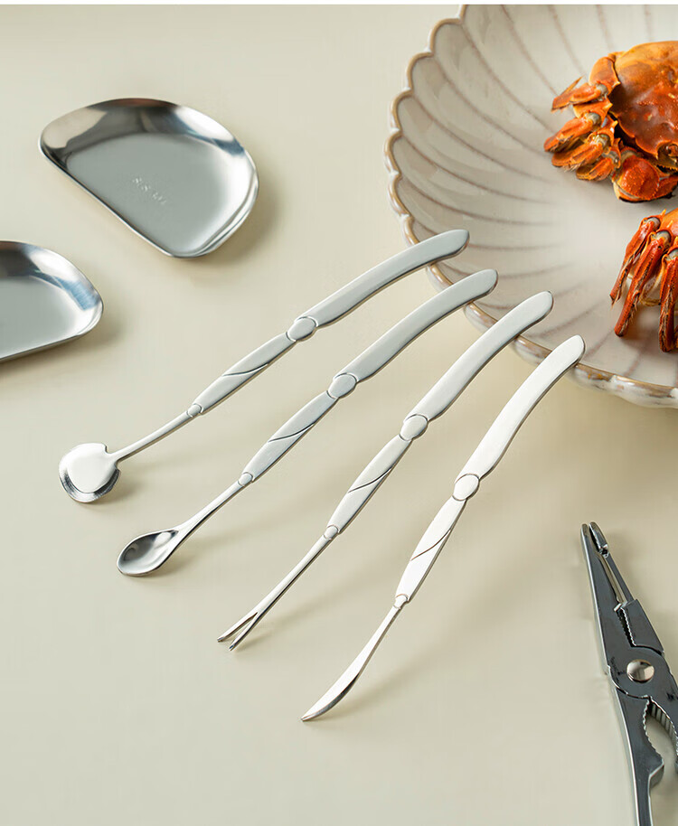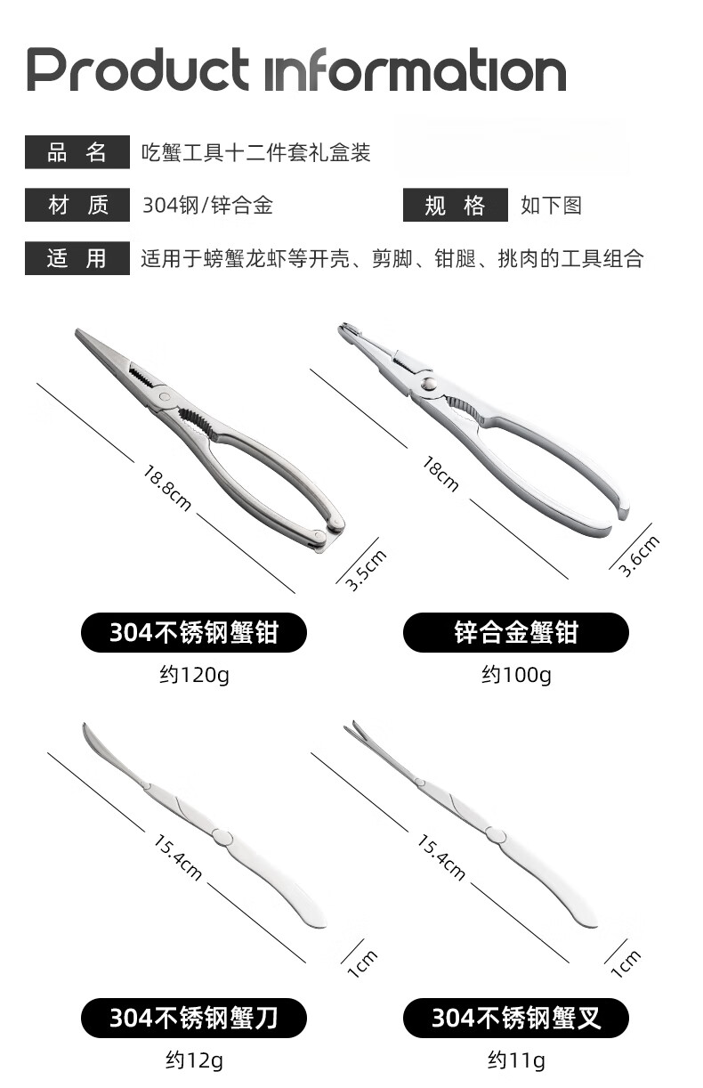 Man Gong high-end quality crab eight-piece 304 stainless steel crab-eating tool set in a gift box, eight-piece crab claws and crab-eating tools 304 steel & 304 steel pliers-gift box