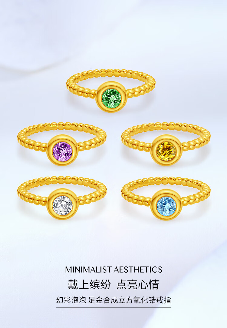 Chiba Jewelry Pure Gold Synthetic Cubic Zirconia Ring Symphony Bubble Exquisite Versatile Jewelry 5D Craftsmanship Pricing for Women Pure White/Gold Weight Approximately 1.15g/Support More Returns Less Replenishment No. 12