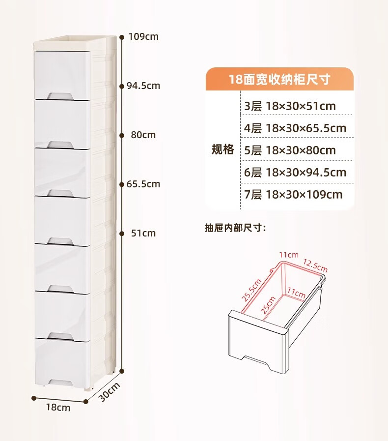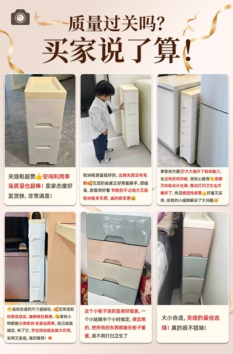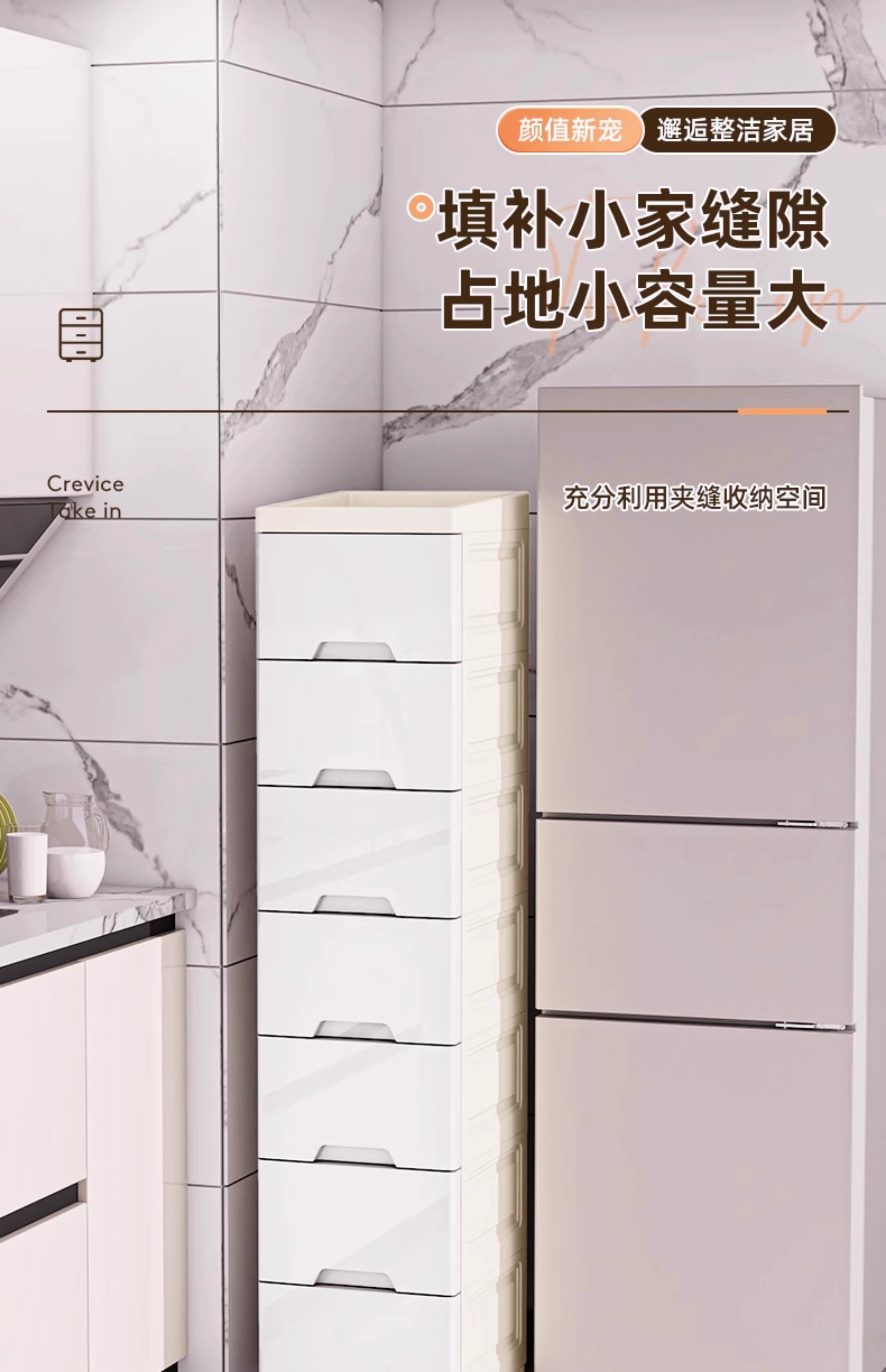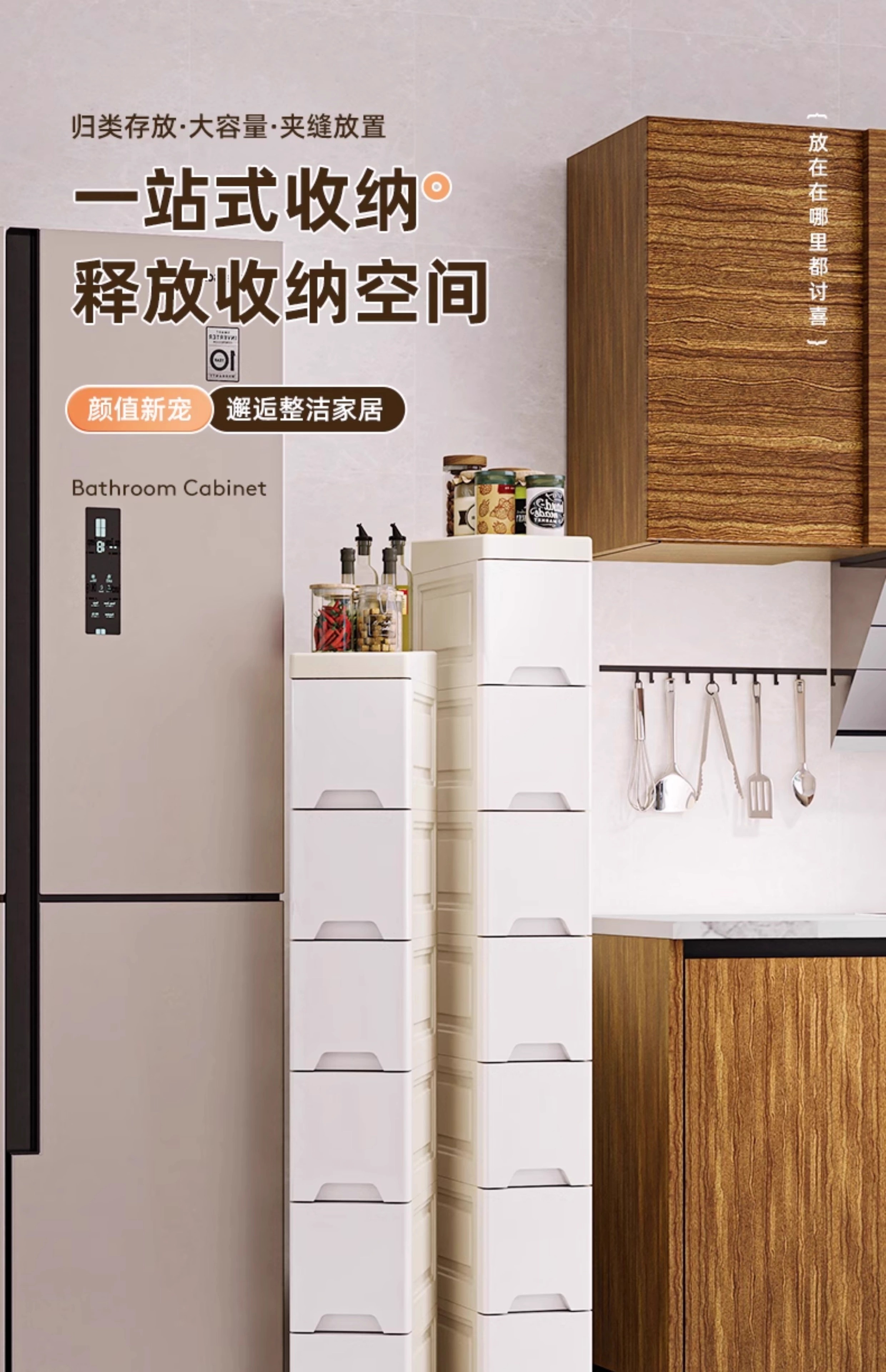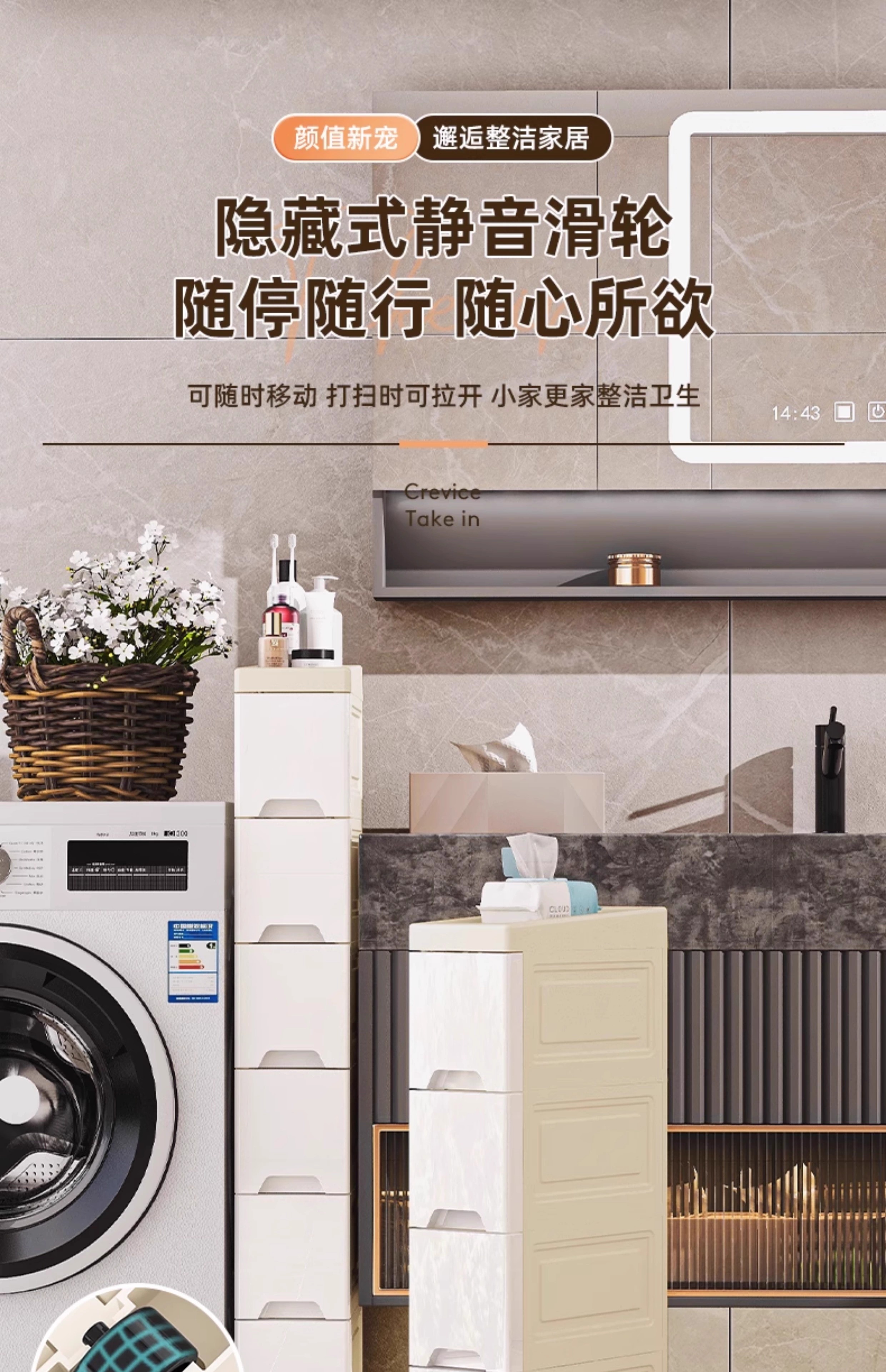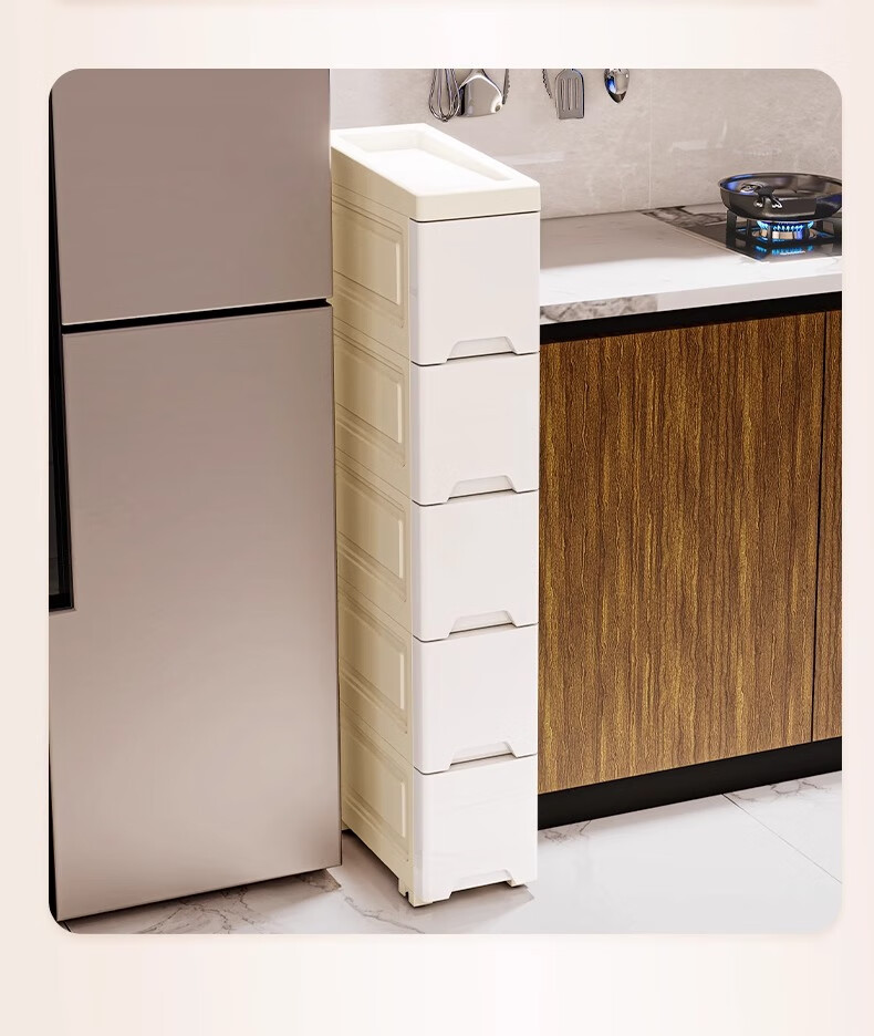 Nafenai Bathroom Slit Storage Cabinet Multi-layer Drawer Kitchen Bathroom Narrow Slot Storage Rack Toilet Side Narrow Cabinet 18cm Width Pure White - Thickened (Mobile Model) 5 Layers