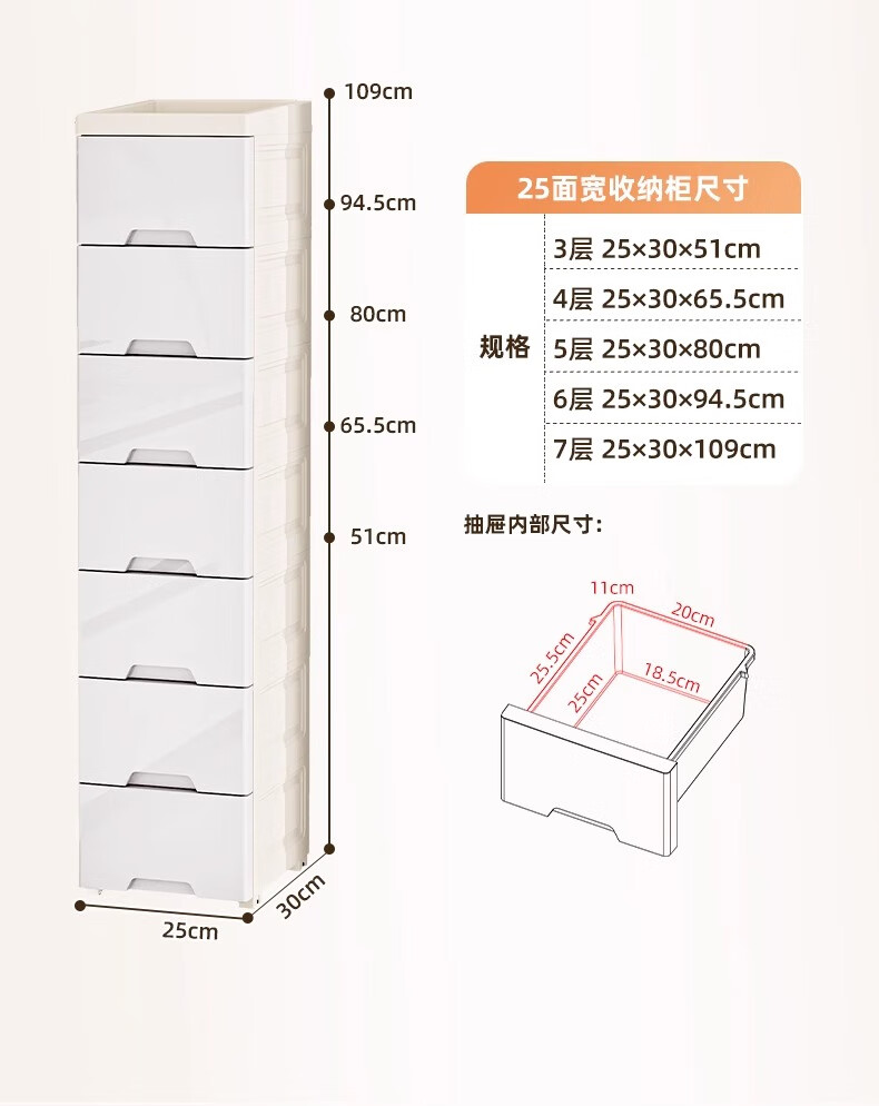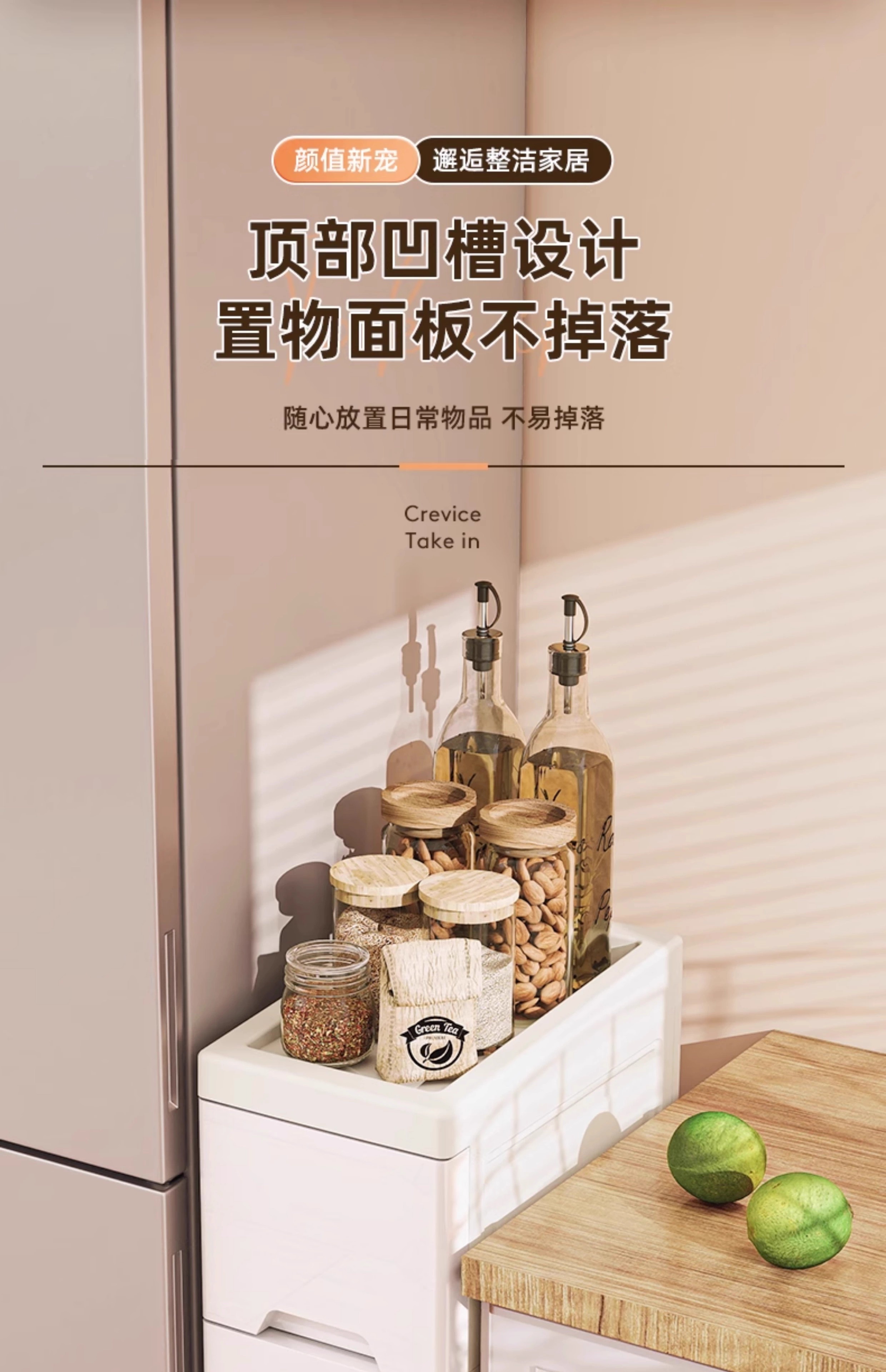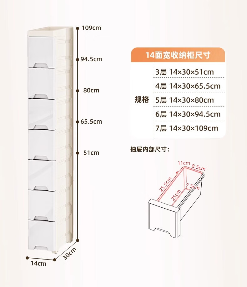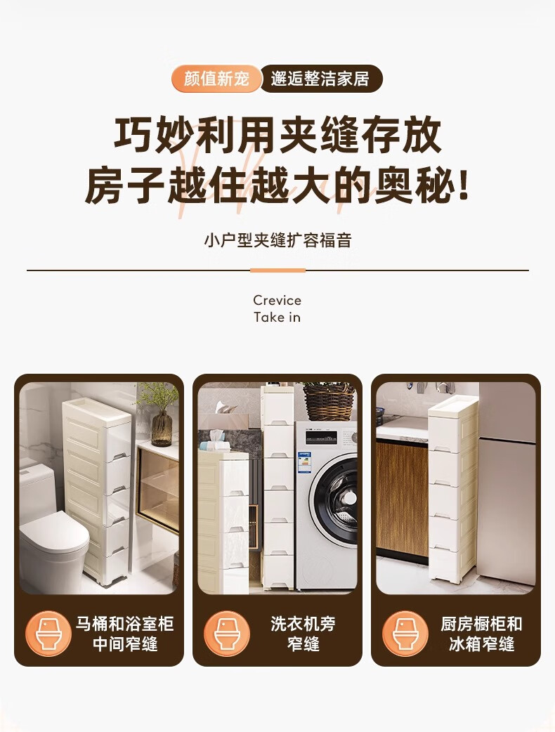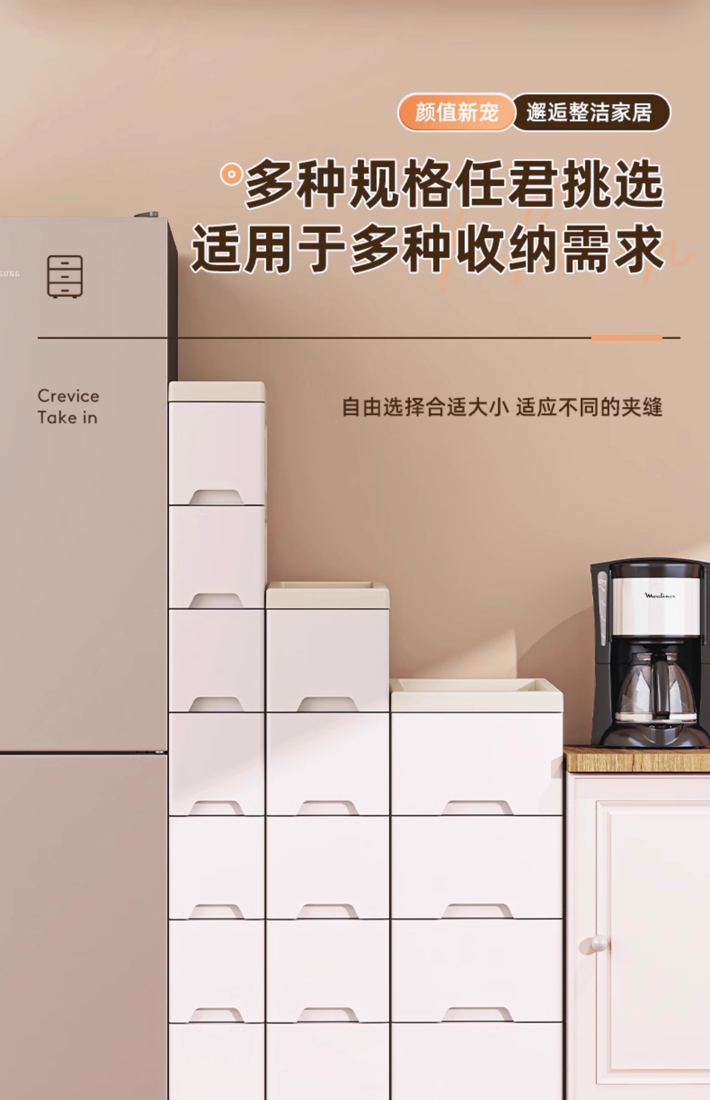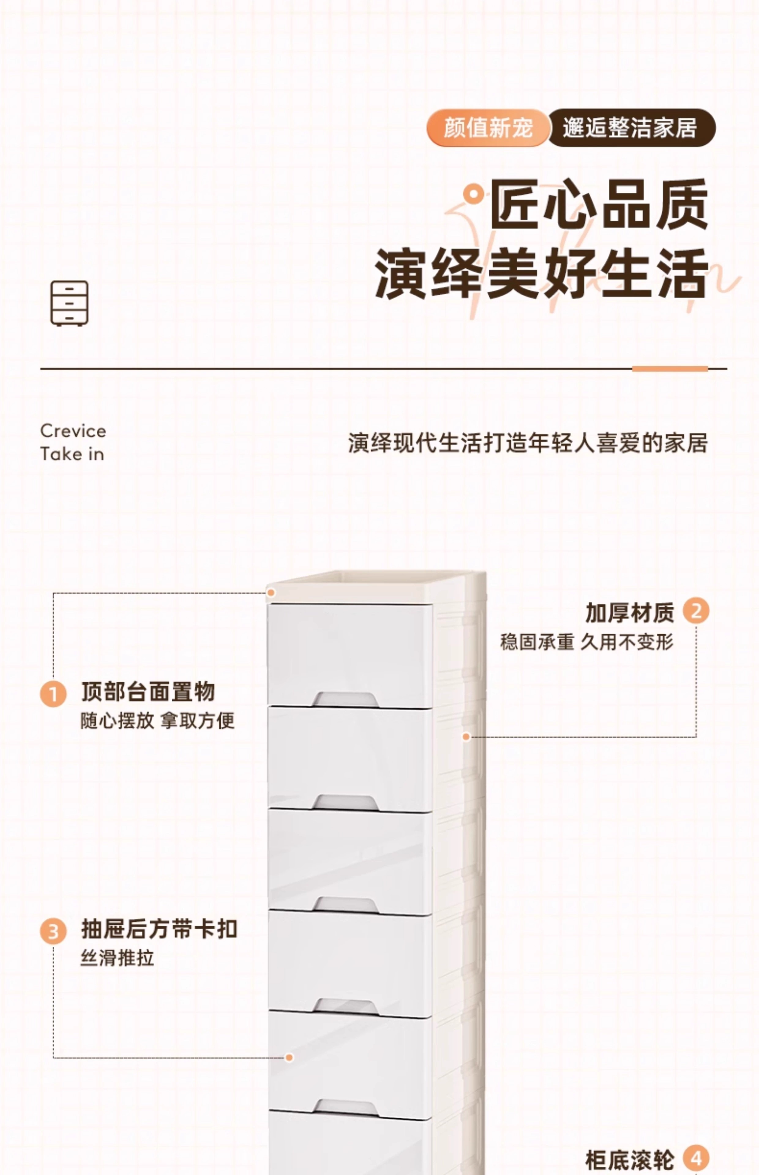 Nafenai Bathroom Slit Storage Cabinet Multi-layer Drawer Kitchen Bathroom Narrow Slot Storage Rack Toilet Side Narrow Cabinet 18cm Width Pure White - Thickened (Mobile Model) 5 Layers