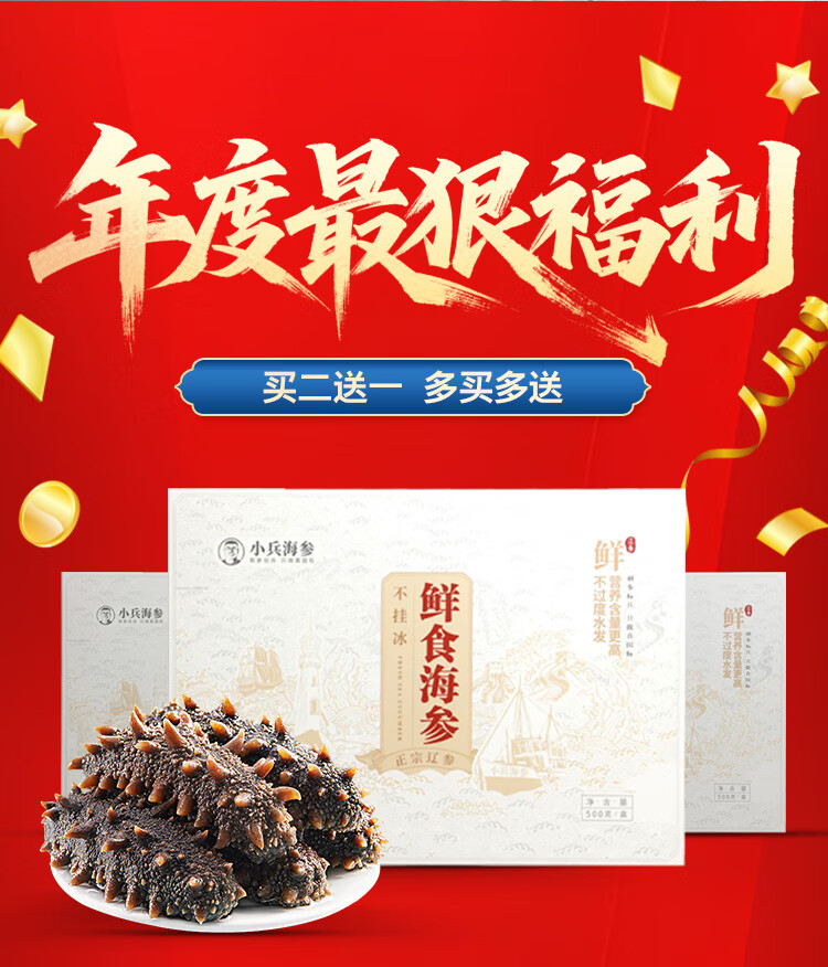 Xiaobing sea cucumber Double Eleven special offer Ready-to-eat sea cucumbers, fresh sea cucumbers and Liao sea cucumbers, no soaking, individually packaged and ready to eat, 100 yuan off a single bag, get 1 bag, 10-12 pieces/Jin Jin is equal to 0.5 kg
