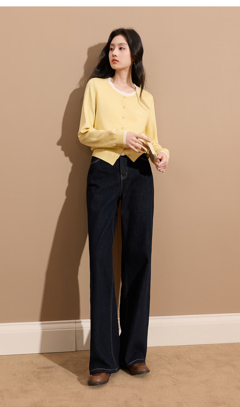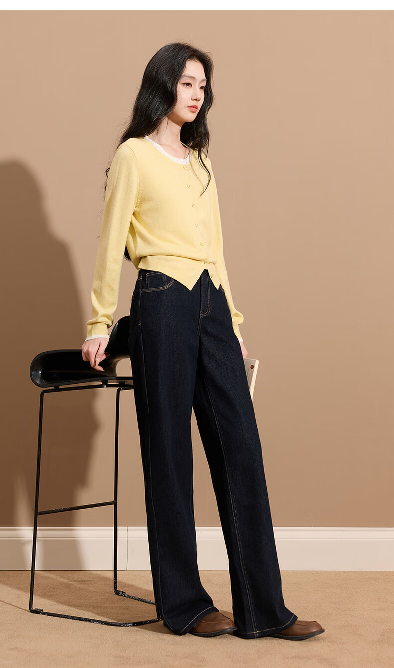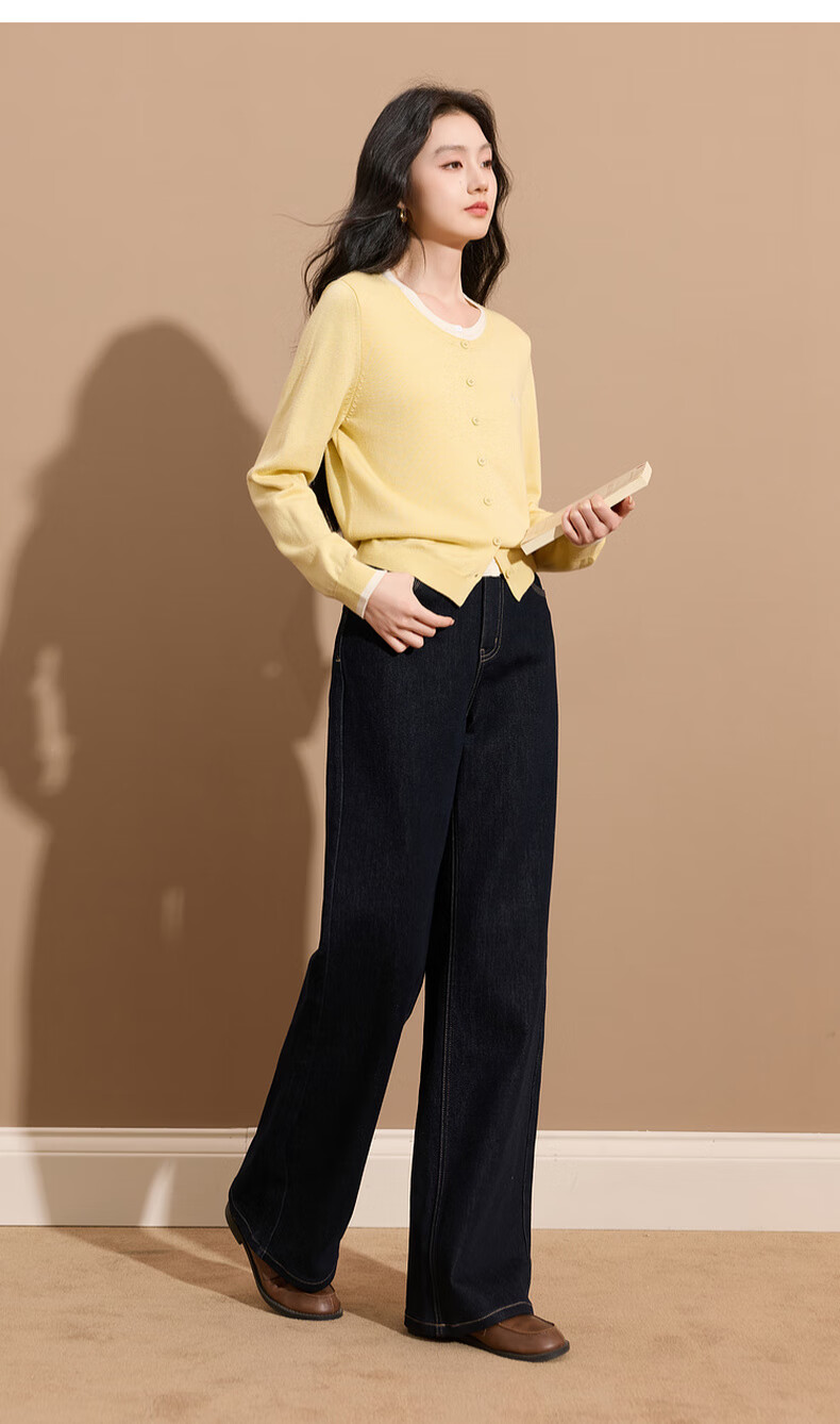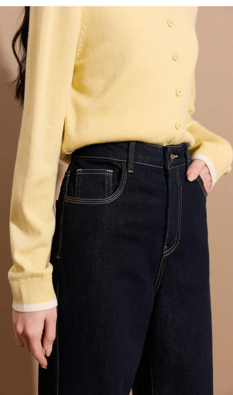Sancai 2025 new winter all-in-one velvet brushed jeans casual pants straight trousers trousers waisted S deep sea blue pre-sale shipped within 15 days of payment M 160/68A 160/68A