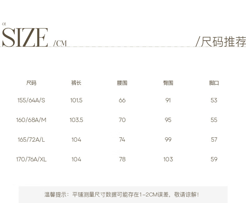 Outseam (cm) 99 cm 101.5 cm 104 cm 106.5 cm 109 cm