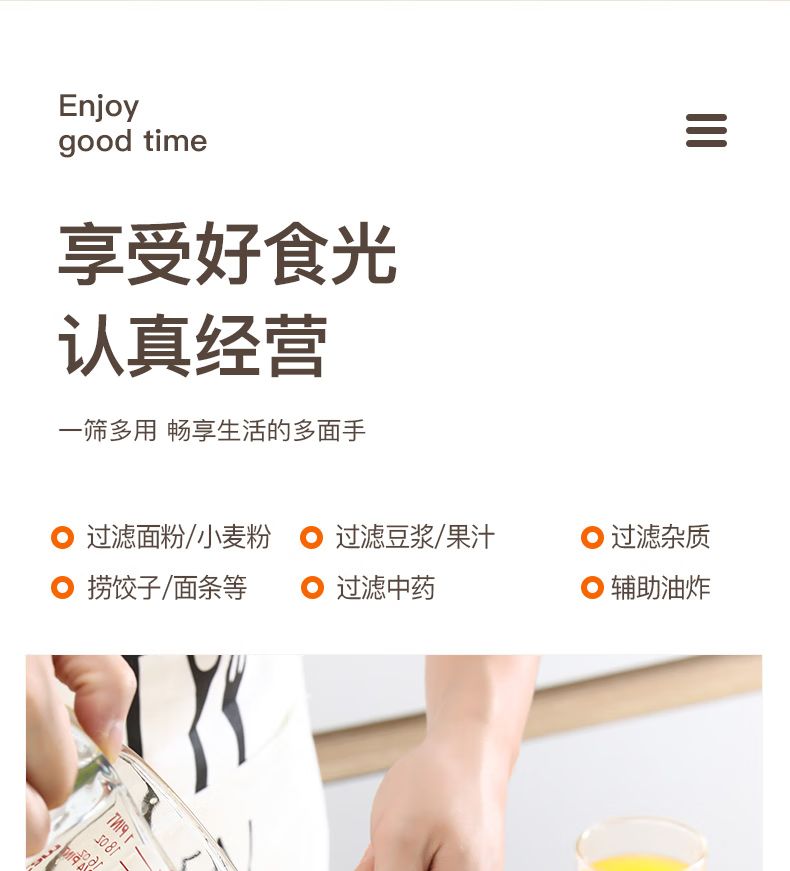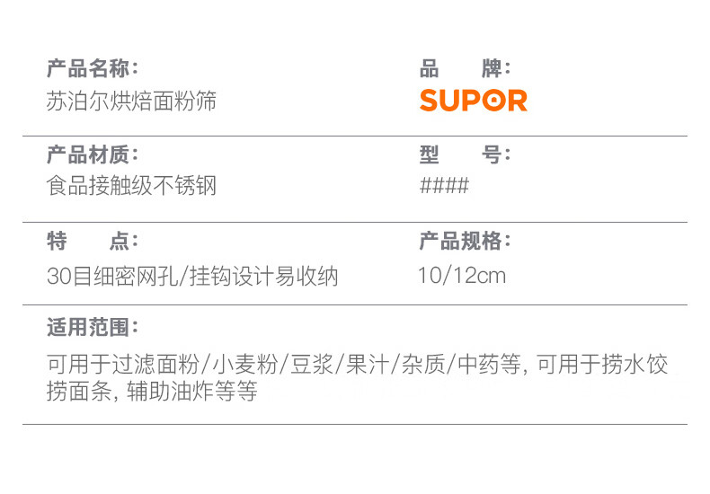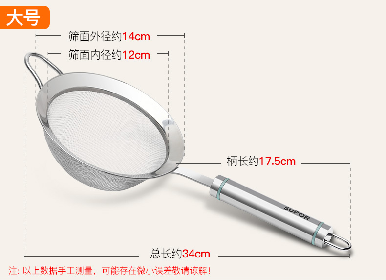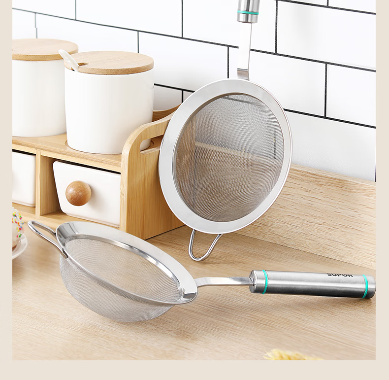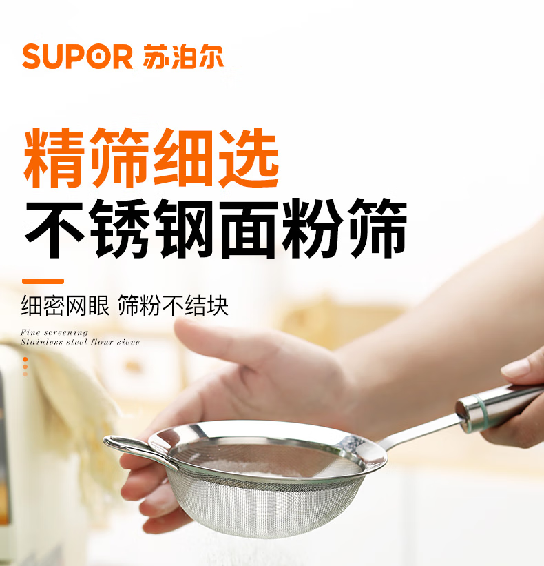 SUPOR stainless steel flour sieve, baking sieve, traditional Chinese medicine bean berry juice foaming filter, fine mesh, non-caking, large flour sieve