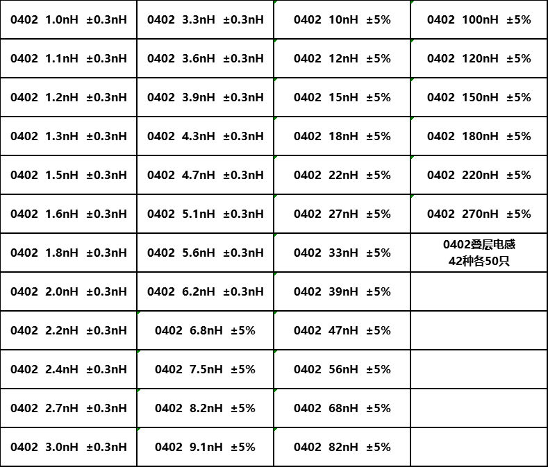 Chip inductor package 0201 0402 0603 0805 1206 sample package laminated wirewound inductor component booklet 0402 laminated 42 types, 50 pieces each