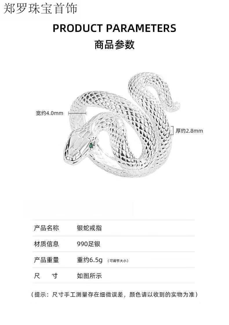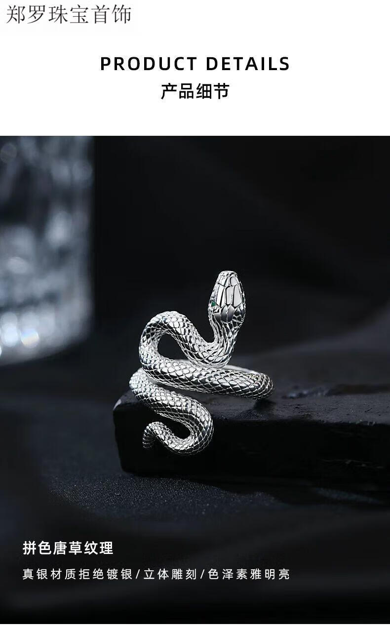 Tongrubi 999 sterling silver pure silver snake-shaped ring men and women niche snake snake birth year ring pure silver snake code
