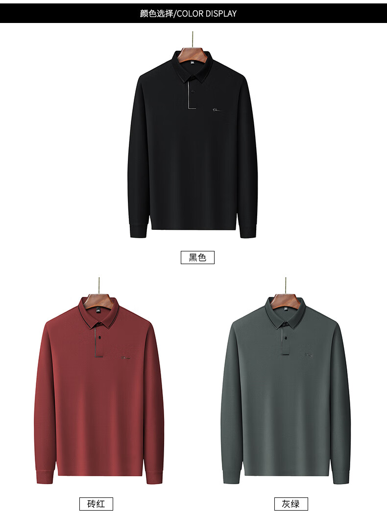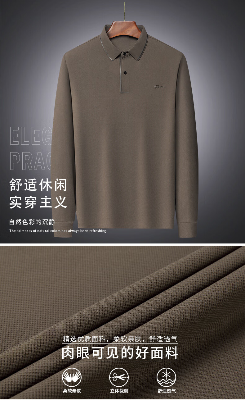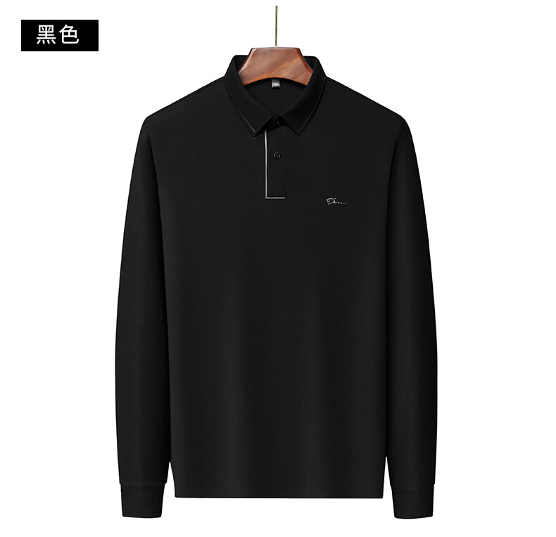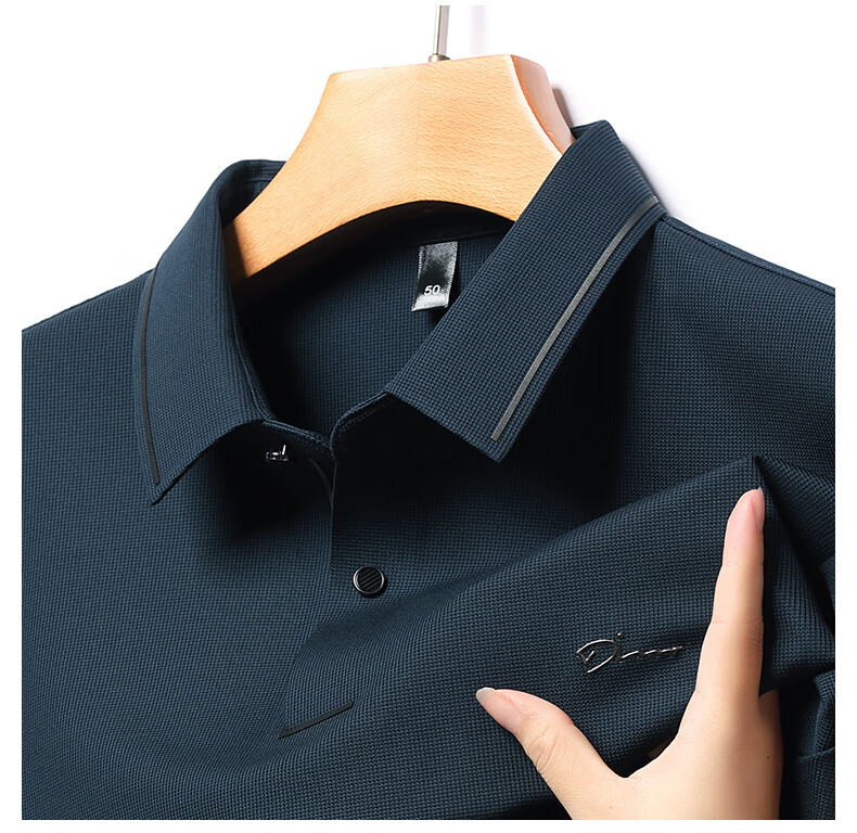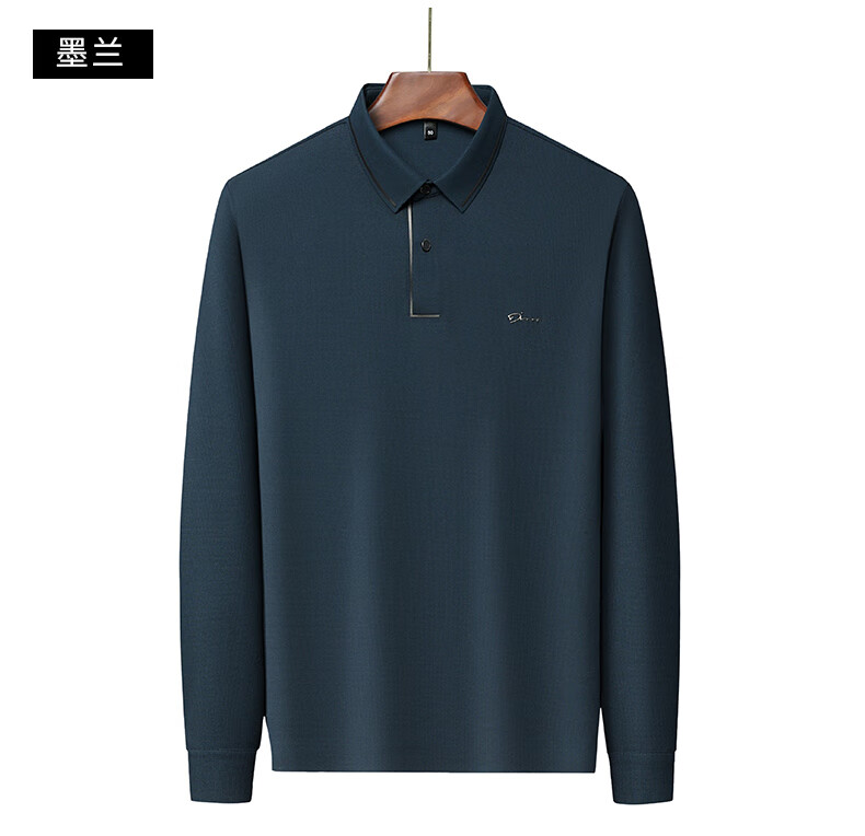 Dad's long-sleeved T-shirt seamless lapel Polo shirt middle-aged and elderly spring and autumn men's business casual T-shirt dark blue L 170 size 110-125Jin Jin equals 0.5 kg