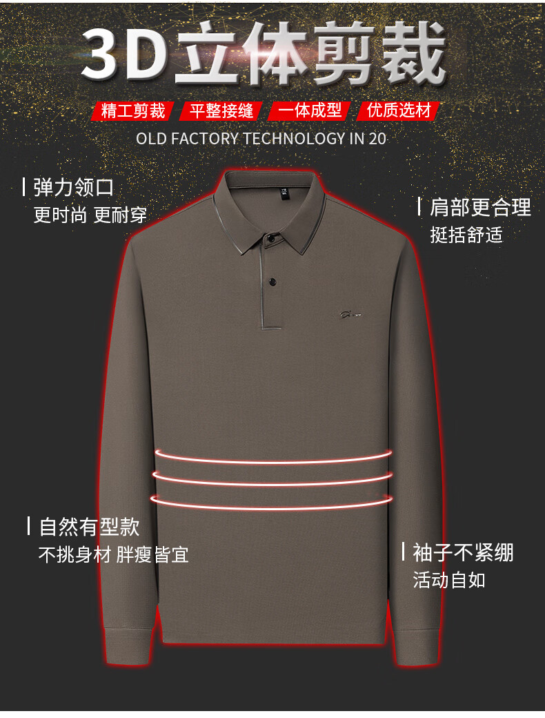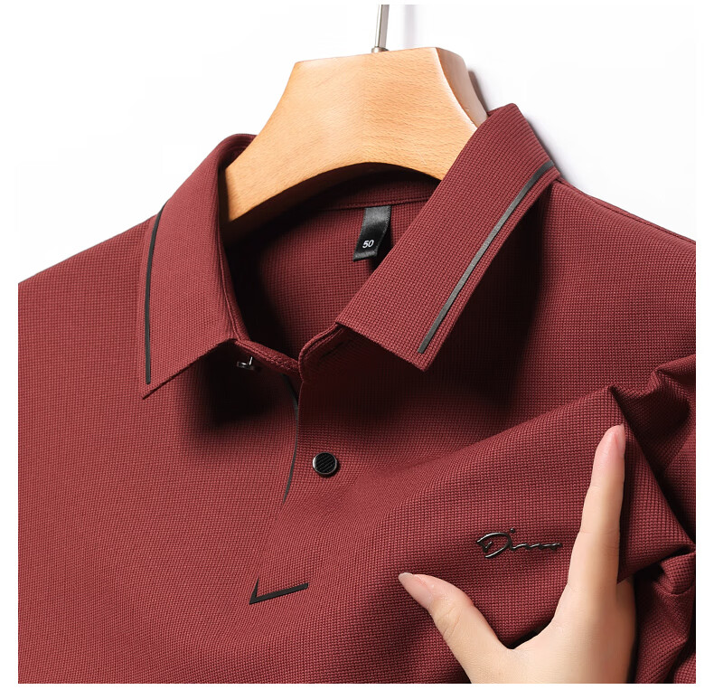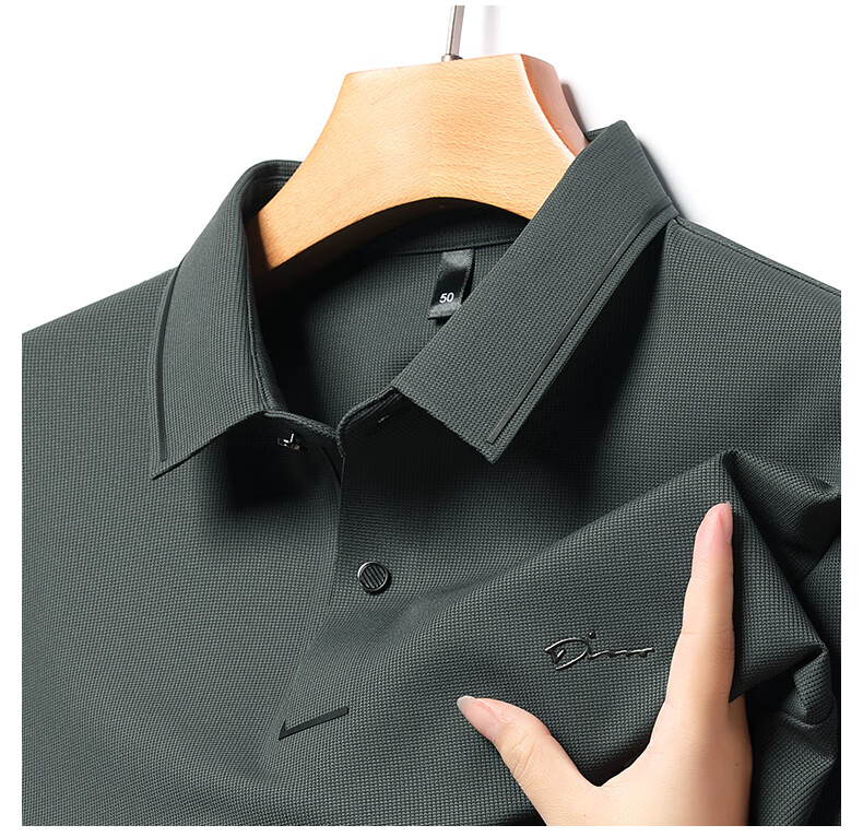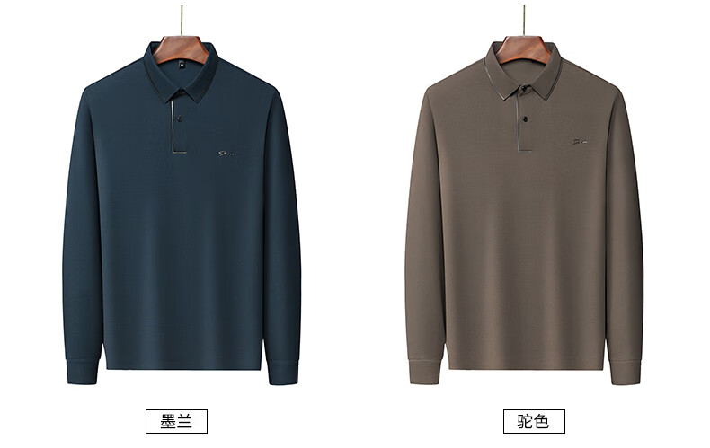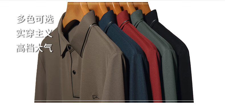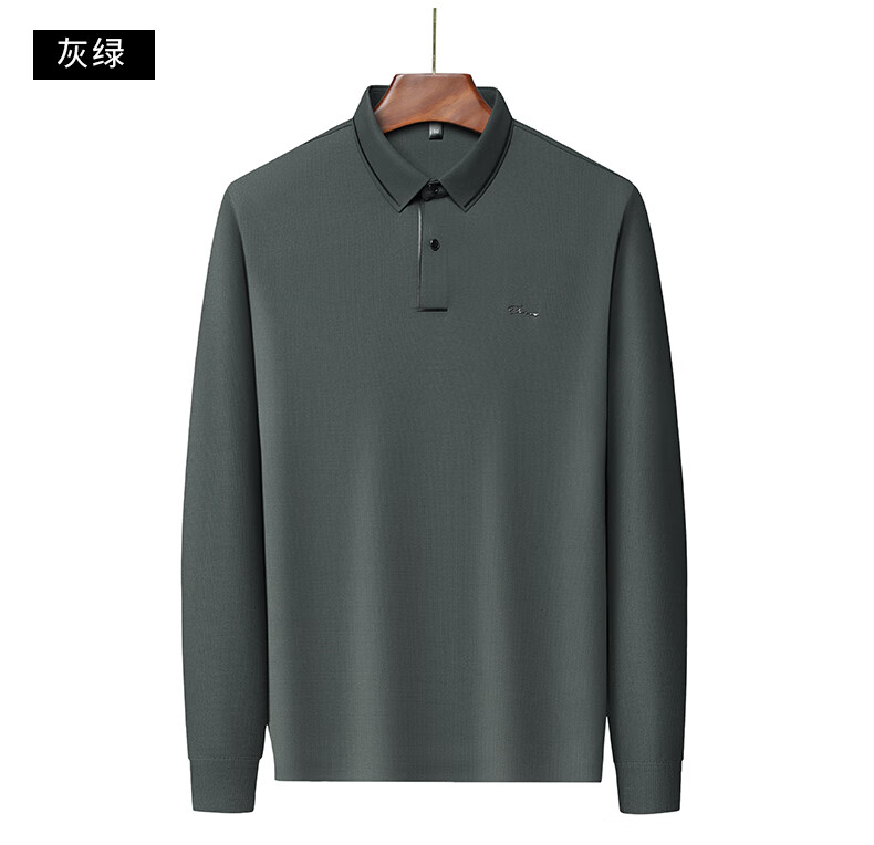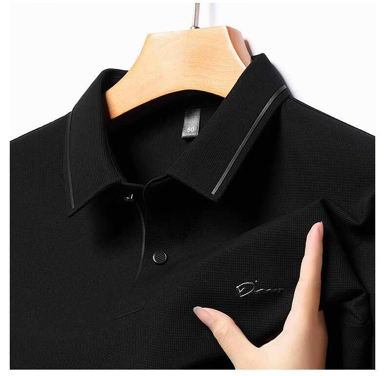 Dad's long-sleeved T-shirt seamless lapel Polo shirt middle-aged and elderly spring and autumn men's business casual T-shirt dark blue L 170 size 110-125Jin Jin equals 0.5 kg
