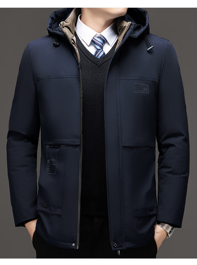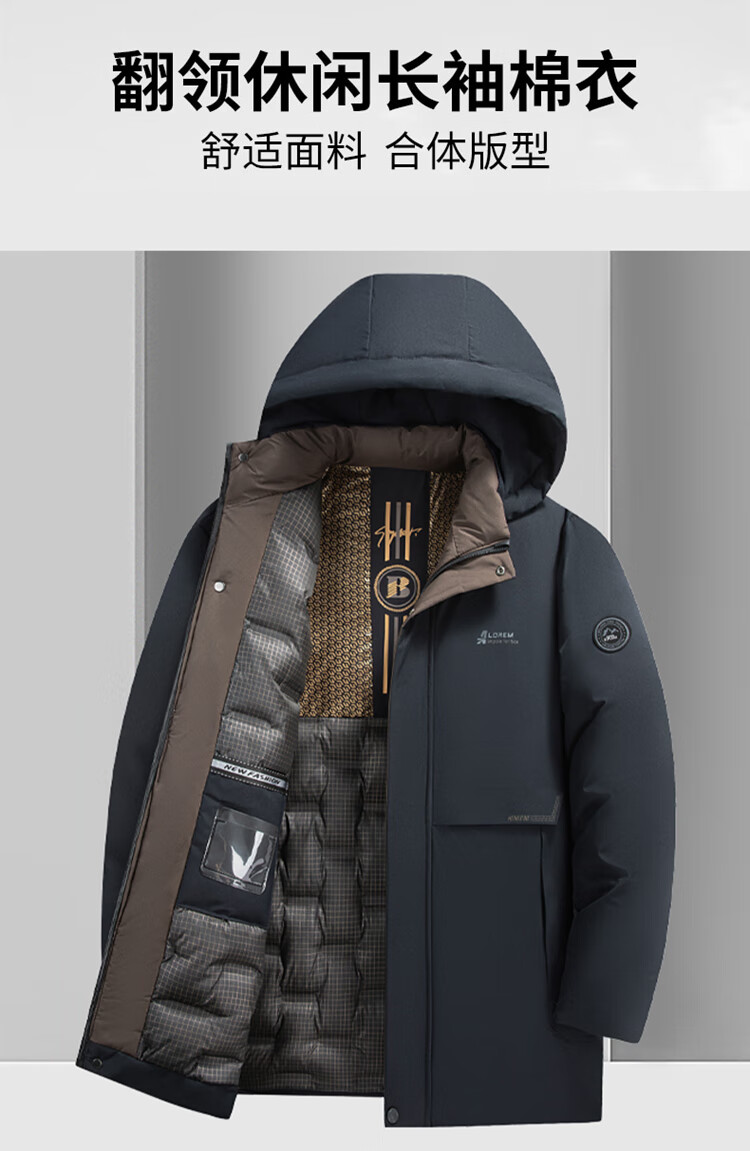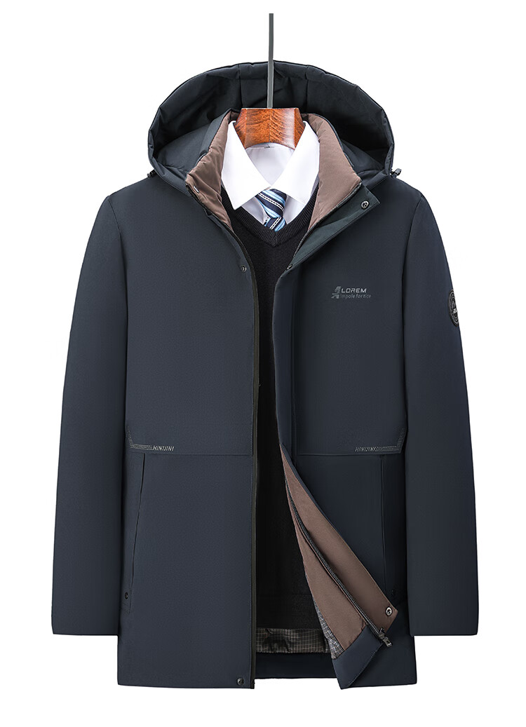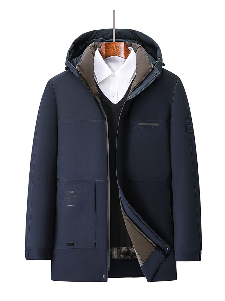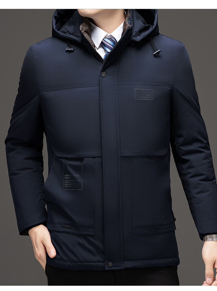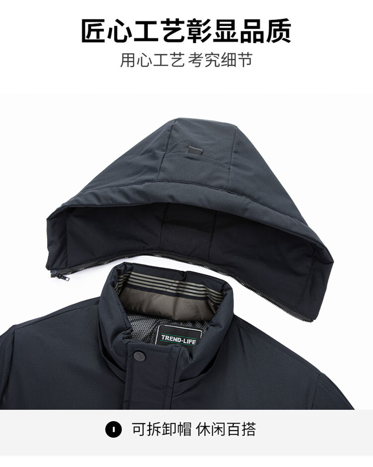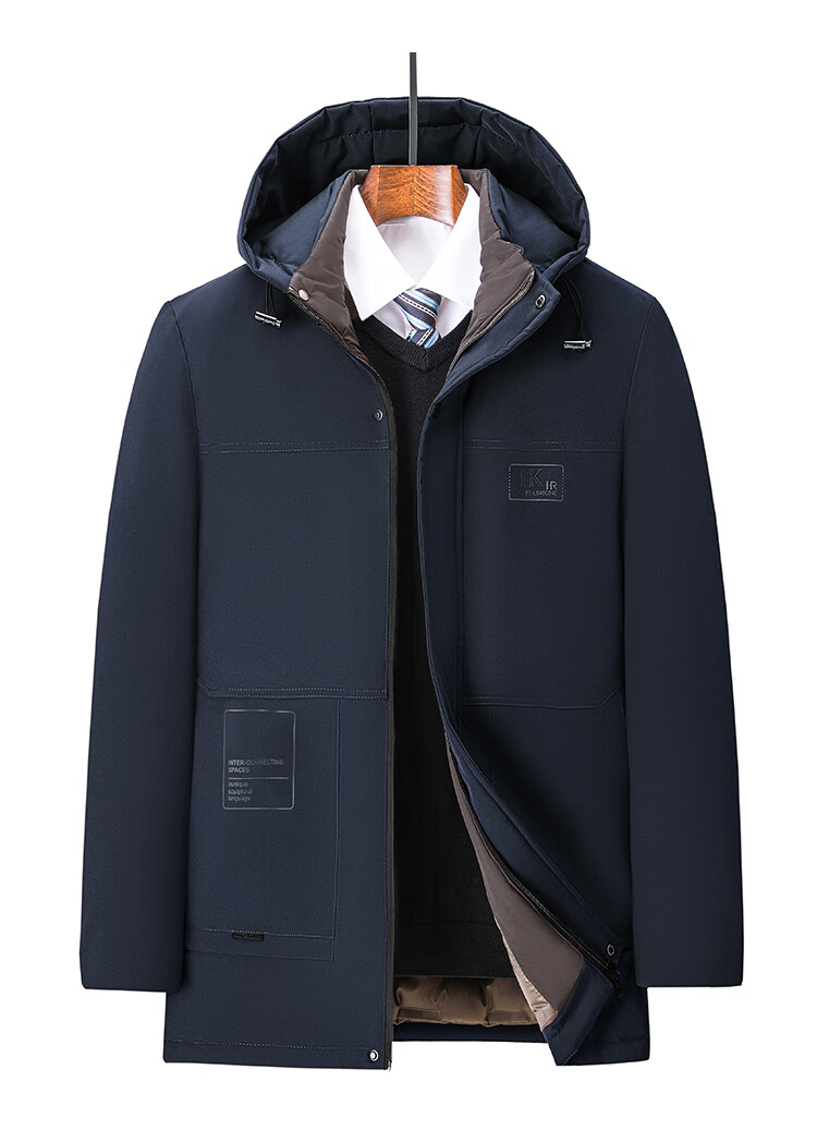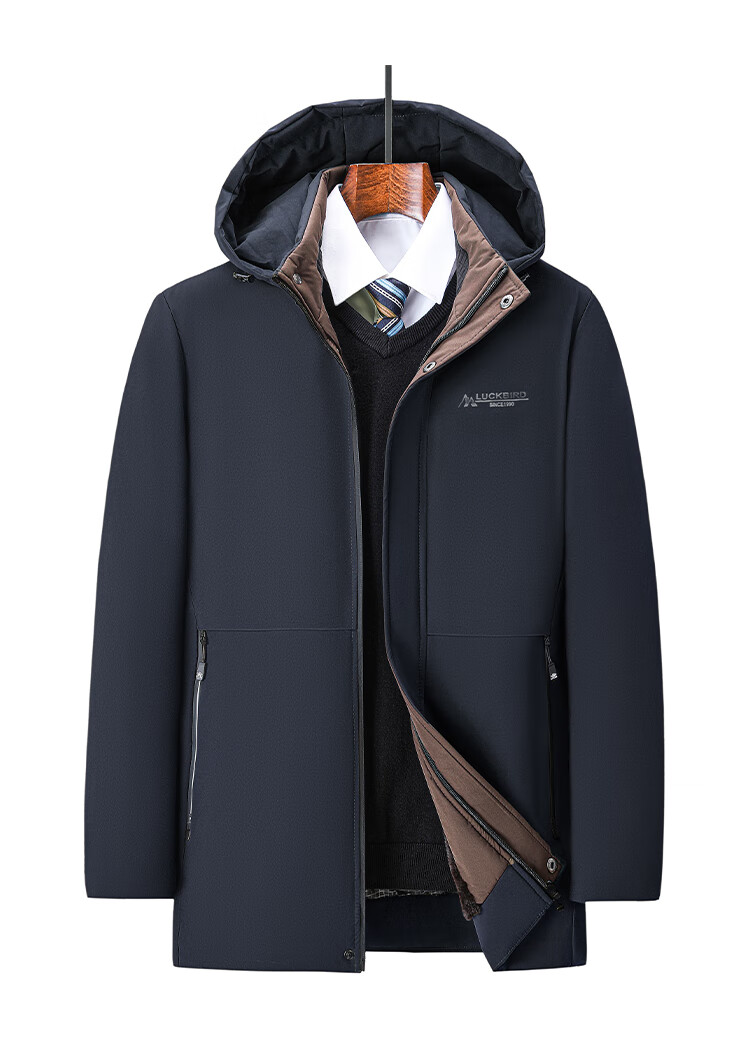 Men's warm winter cotton coat new middle-aged and elderly removable hood mid-length coat for men 2855-Navy Blue XL