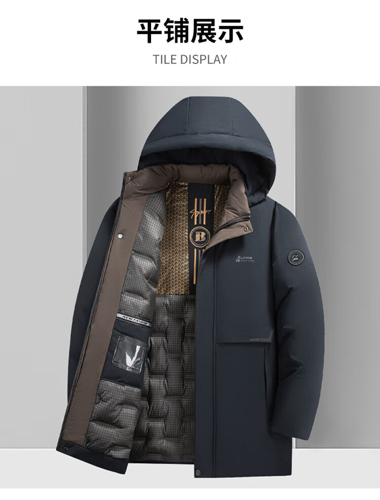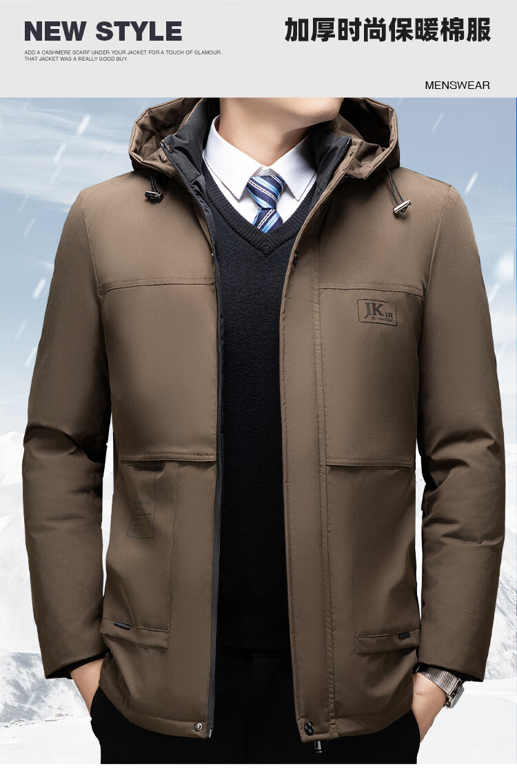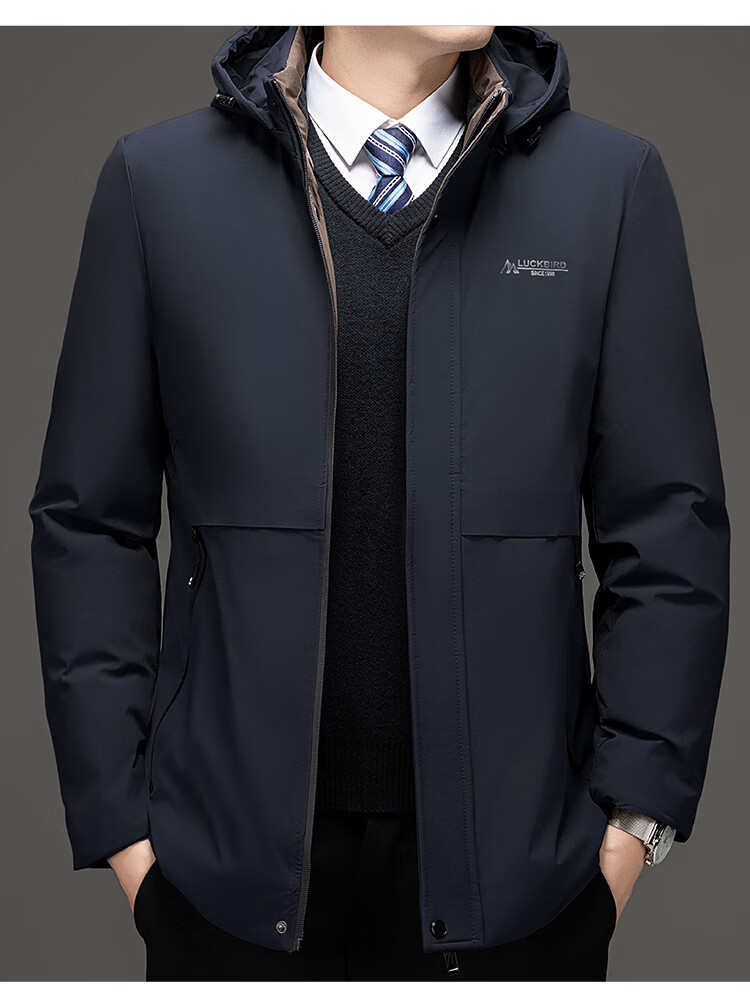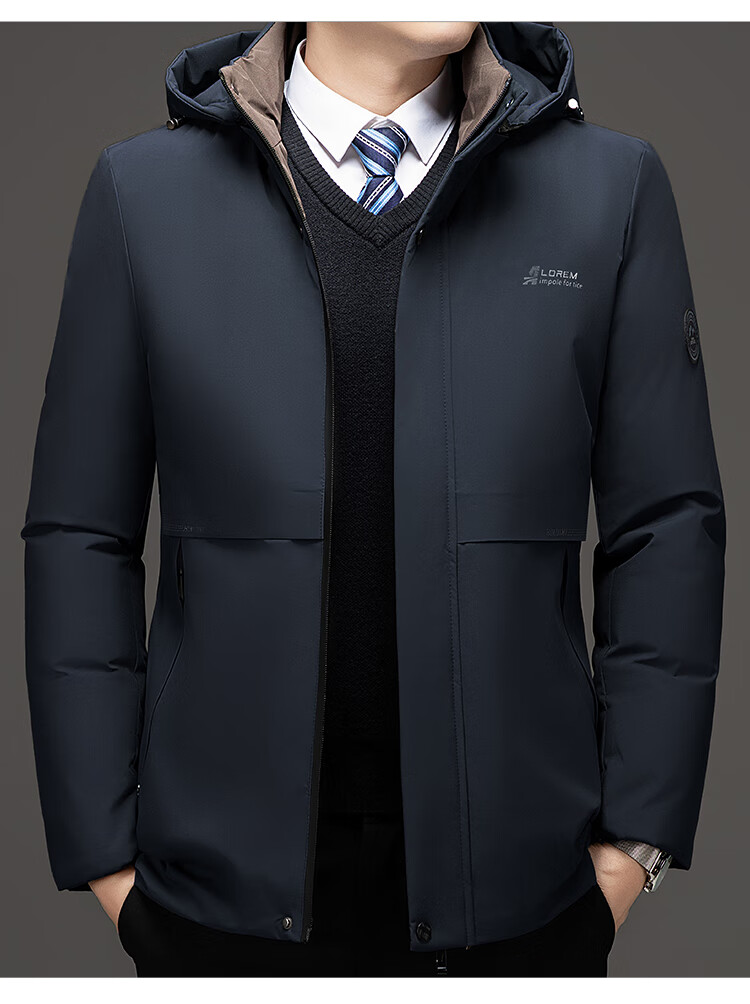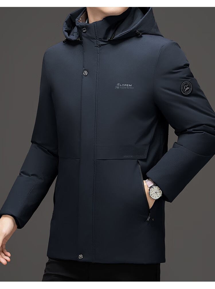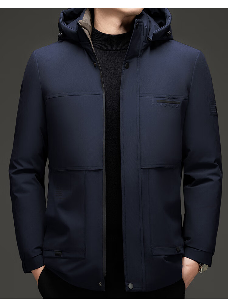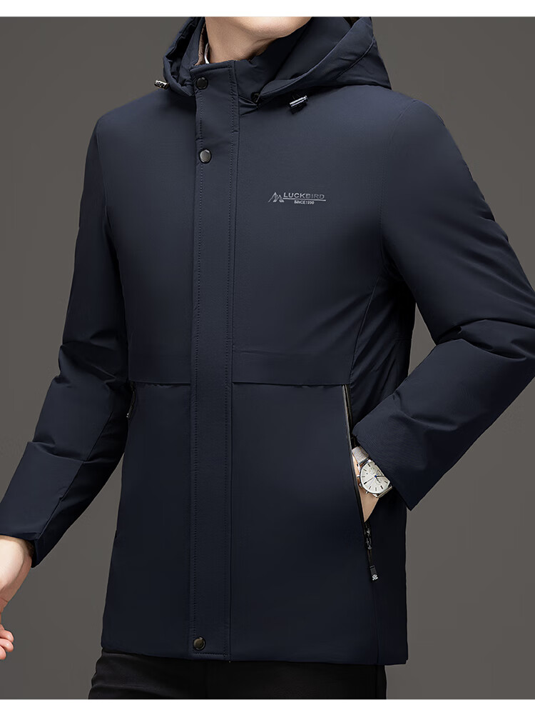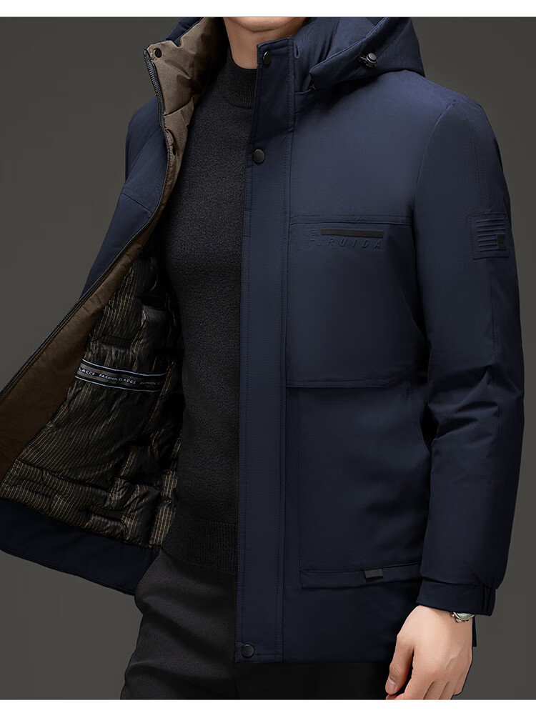 Men's warm winter cotton coat new middle-aged and elderly removable hood mid-length coat for men 2855-Navy Blue XL
