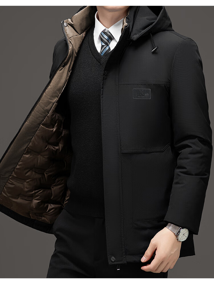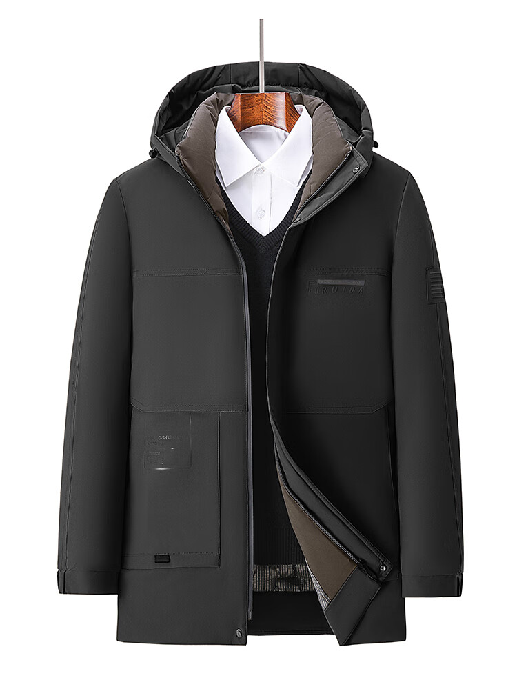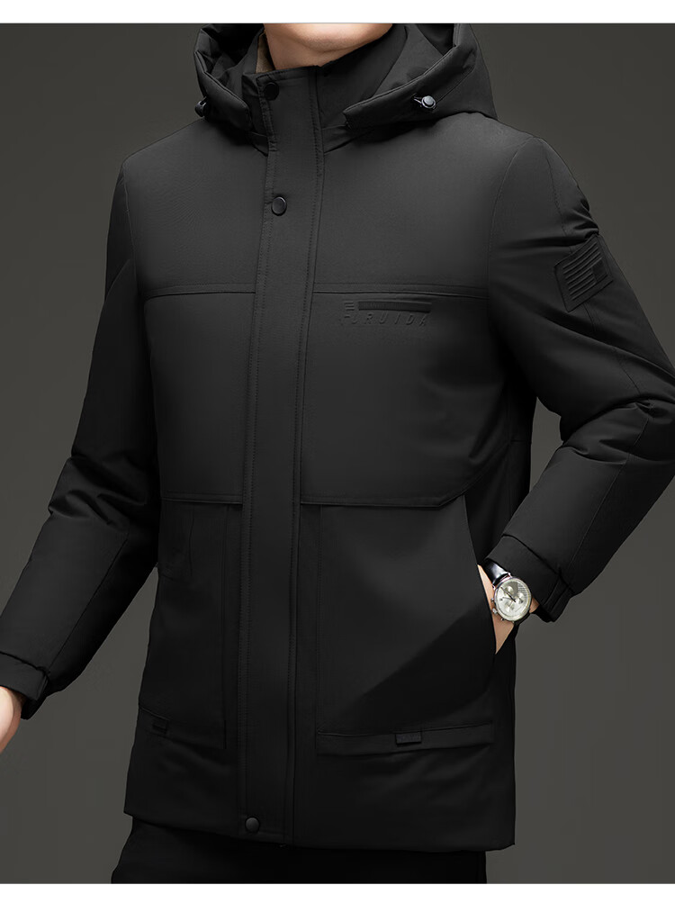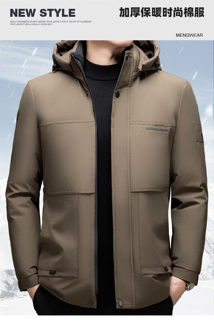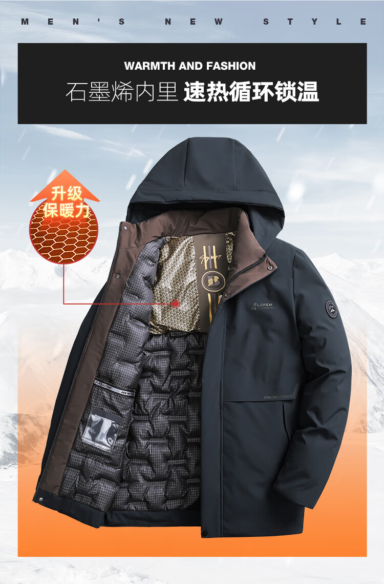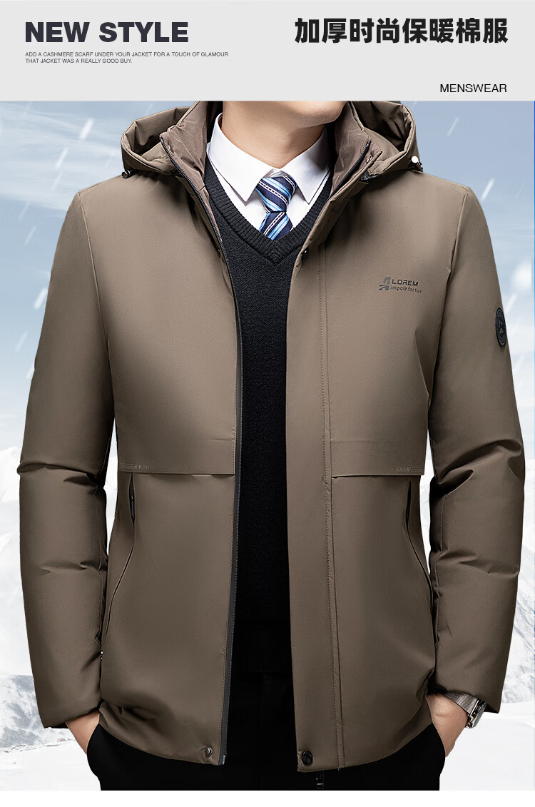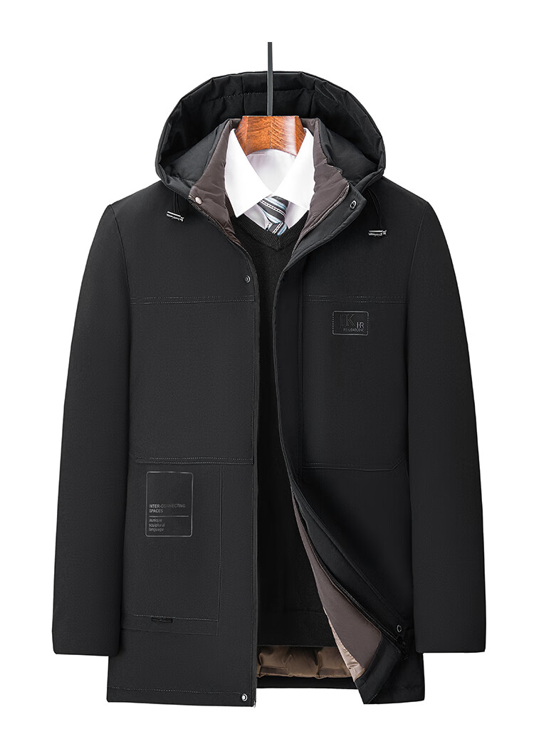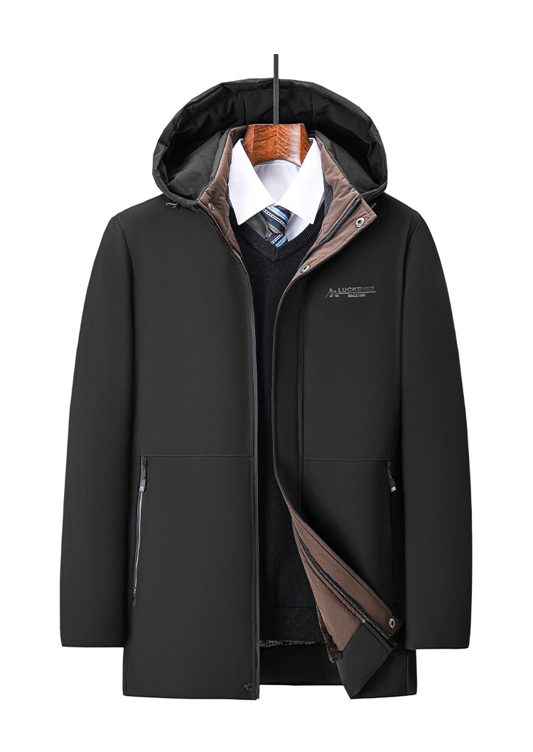 Men's warm winter cotton coat new middle-aged and elderly removable hood mid-length coat for men 2855-Navy Blue XL