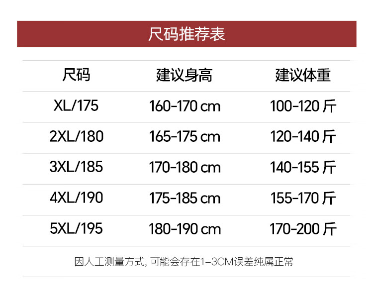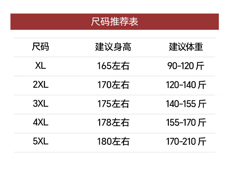 China (cm) 165 / 88-90 170 / 96-98 175 / 108-110 180 / 118-122 185 / 126-130