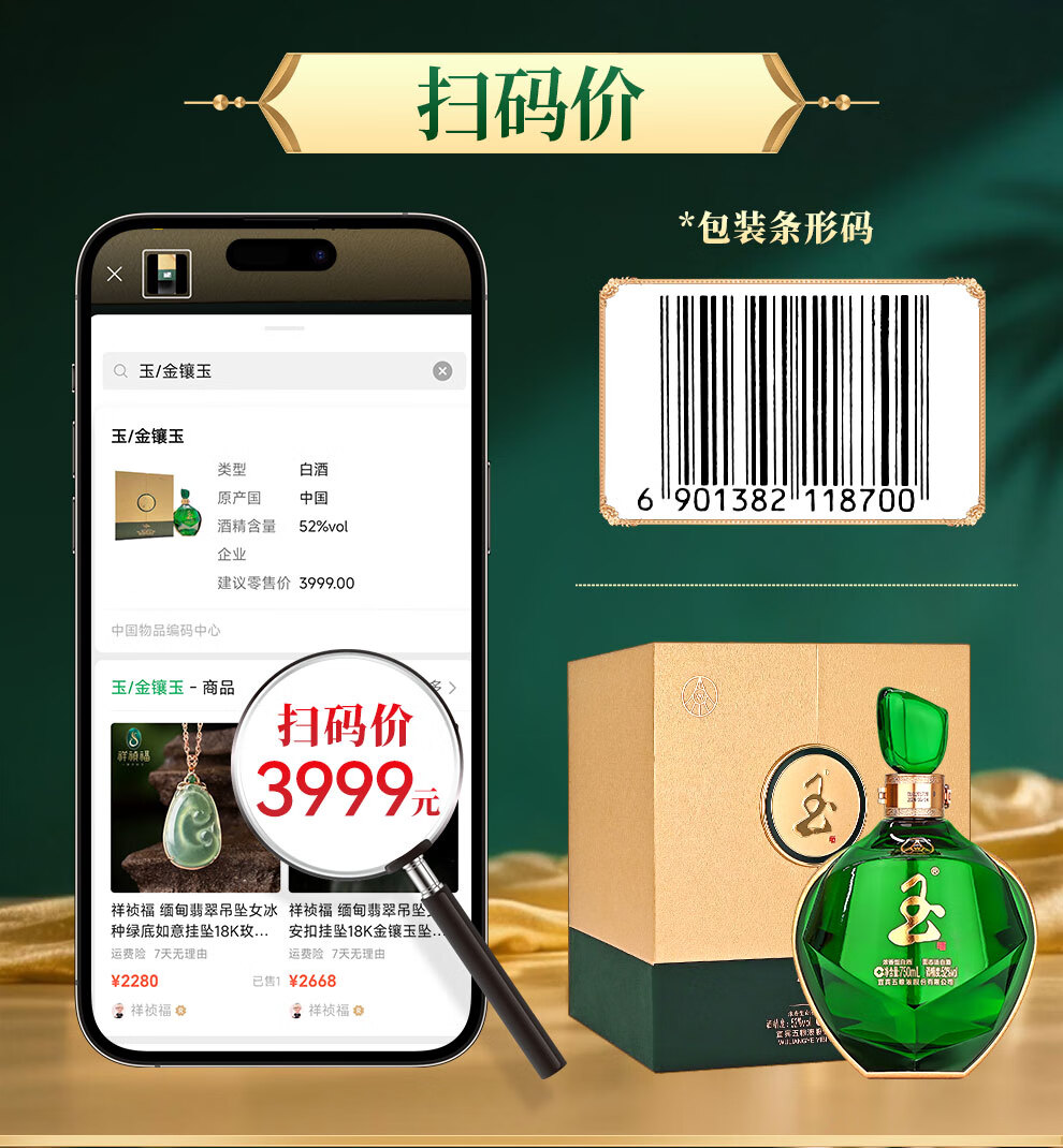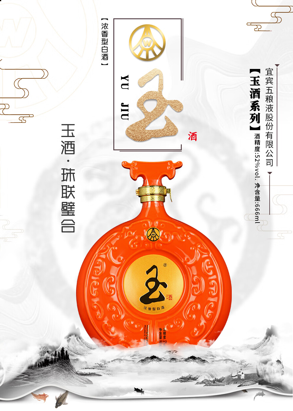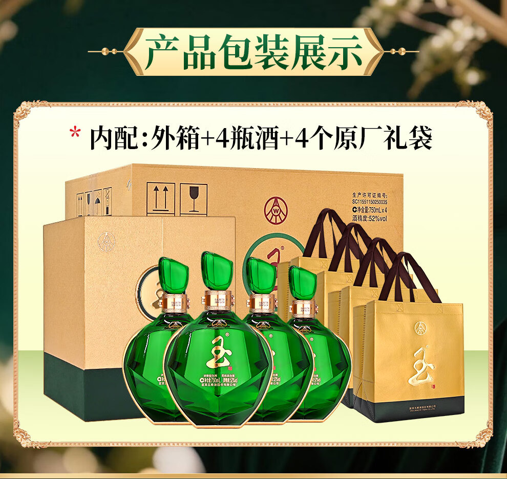 Wuliang Luzhou Wuliangye General Factory produces Jade Liquor Liquor Luxury Flavor Wedding Banquet Collection New Year Gifts 52 Degrees 666mL 1 Bottle Perfect Gift Box