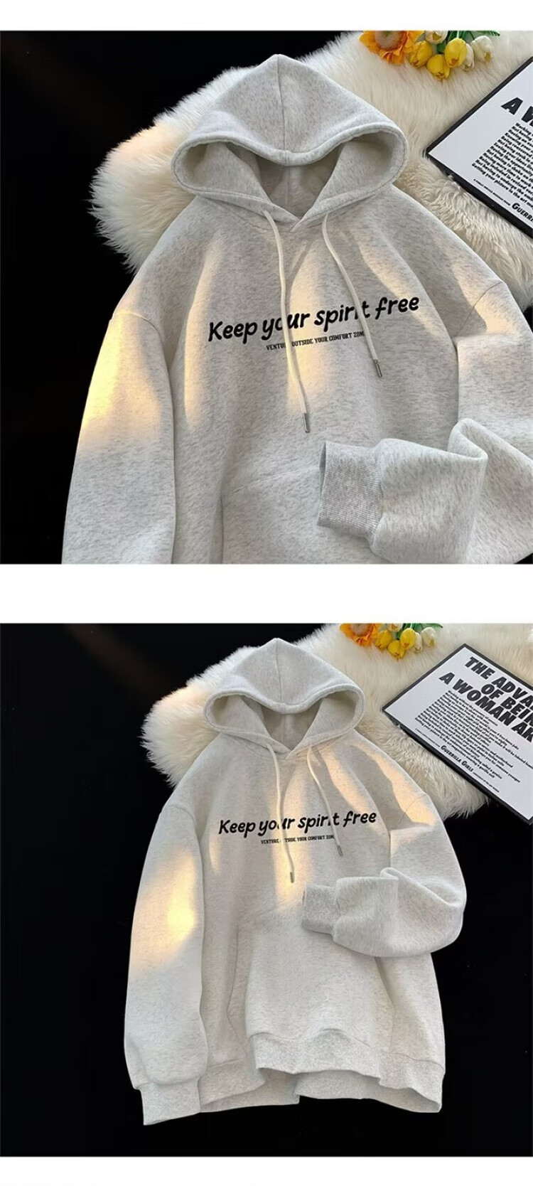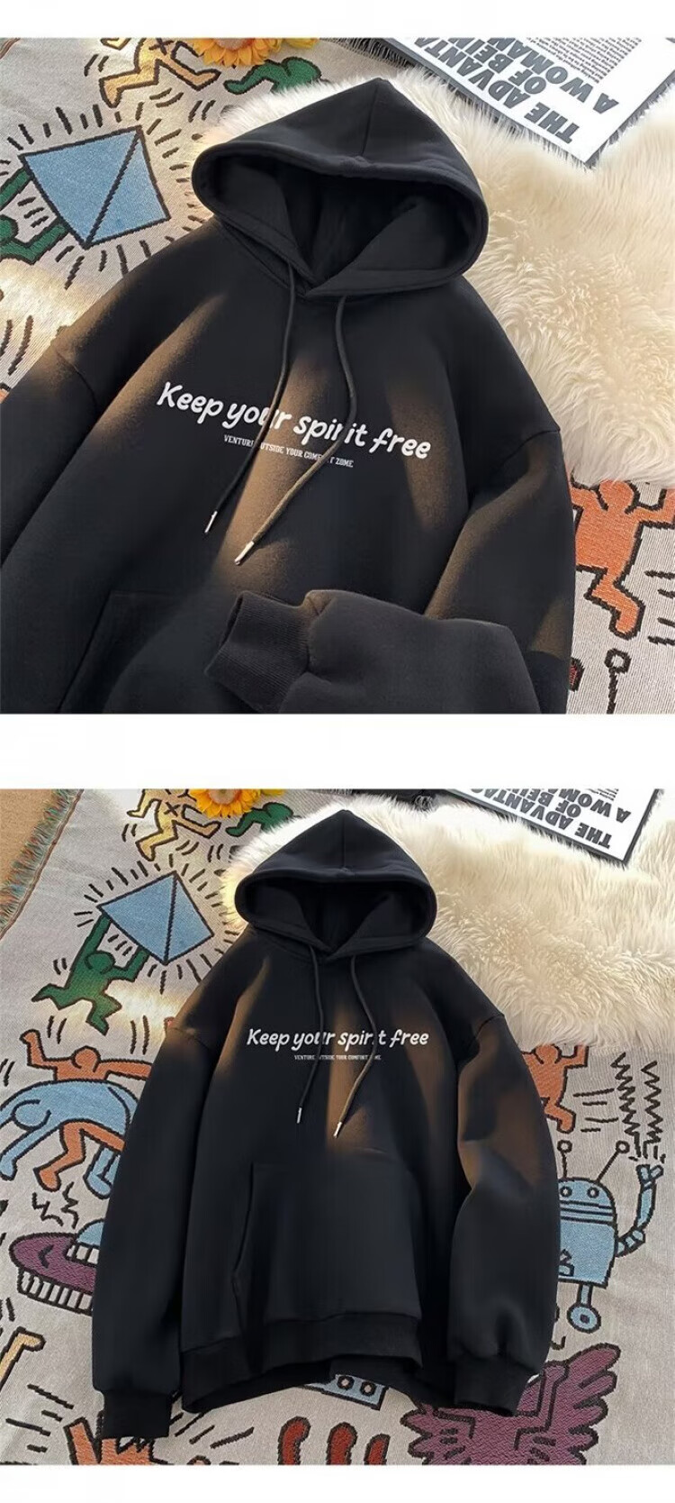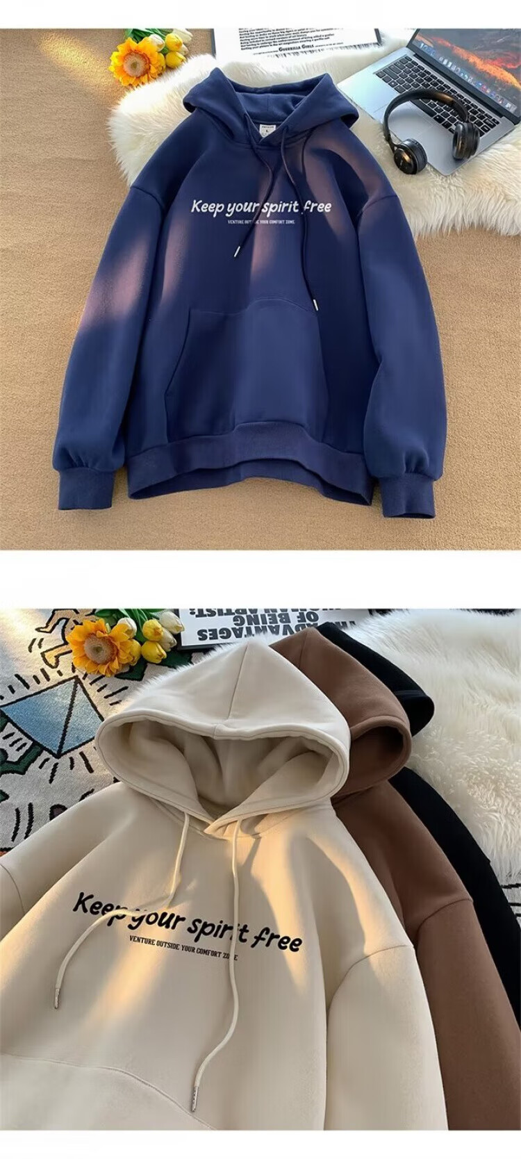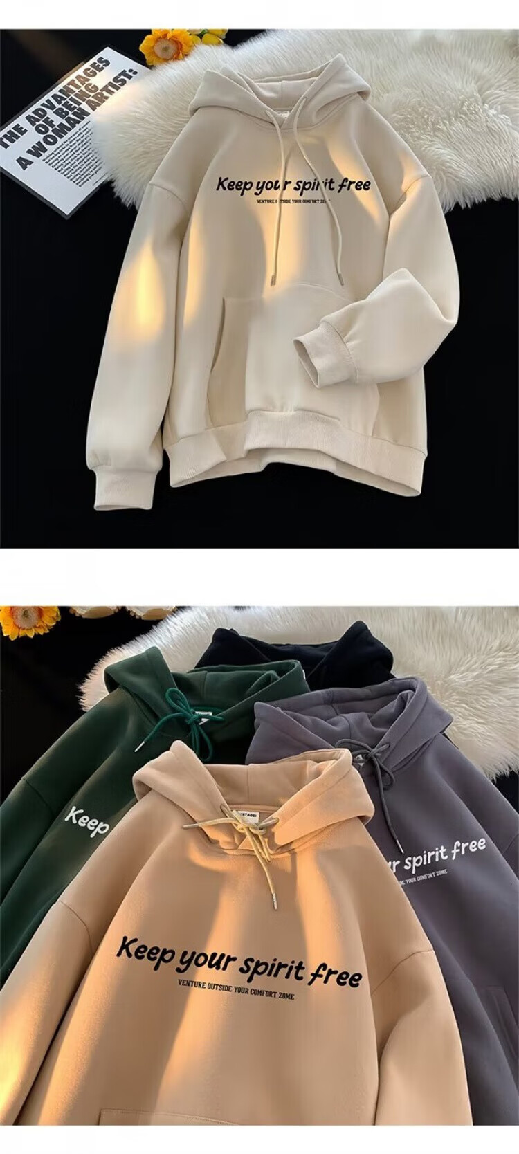 Velvet thickened American sweatshirt for men, autumn and winter trendy brand hooded jacket, youth loose high street versatile clothes, apricot plus velvet L