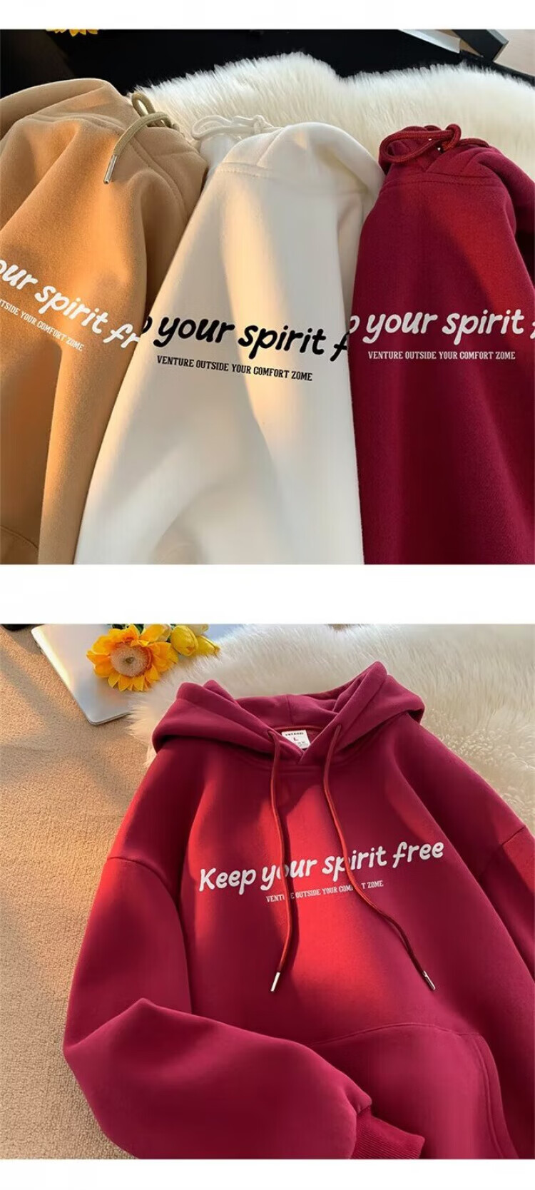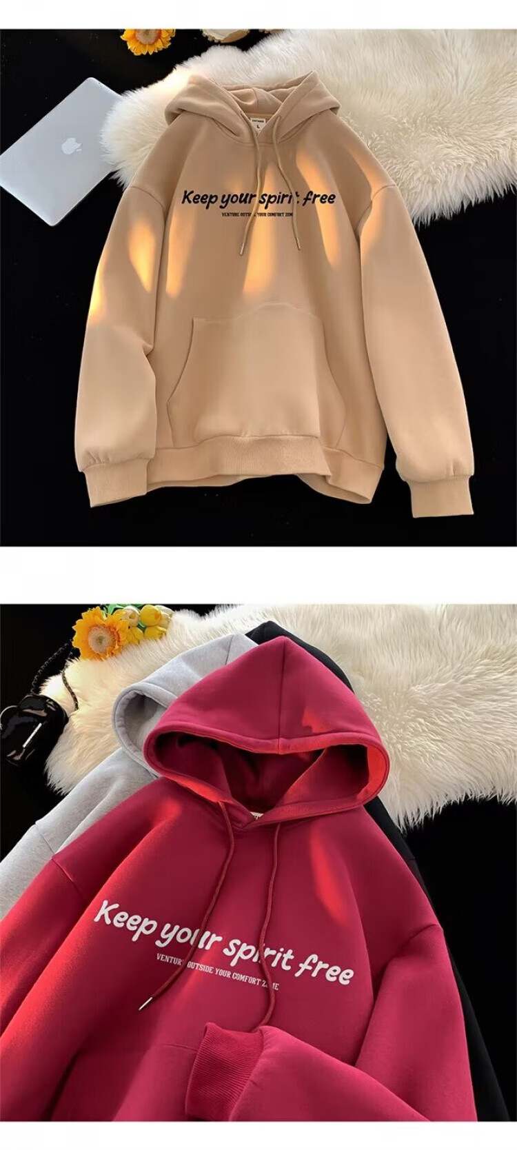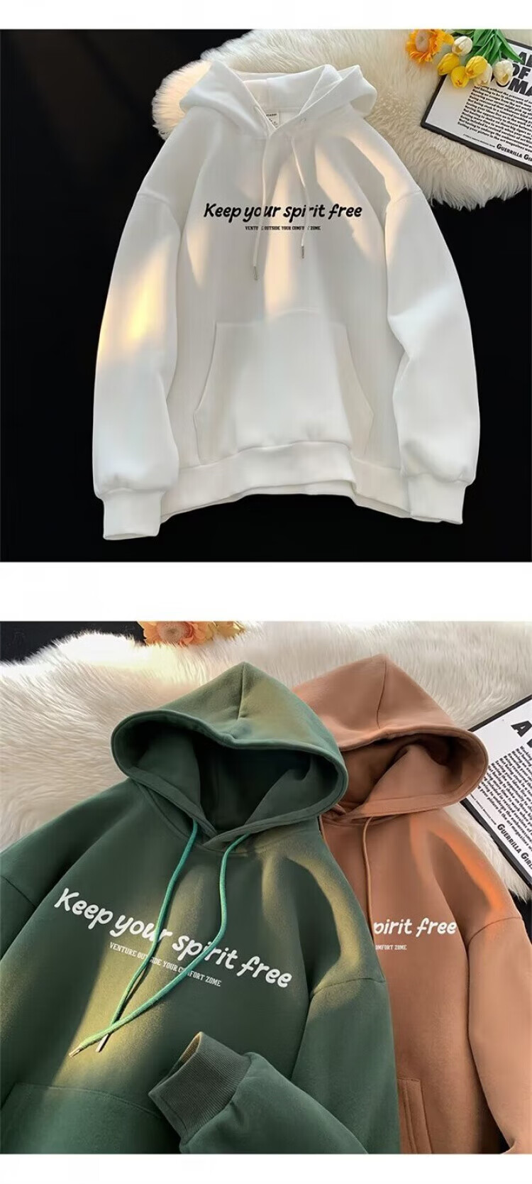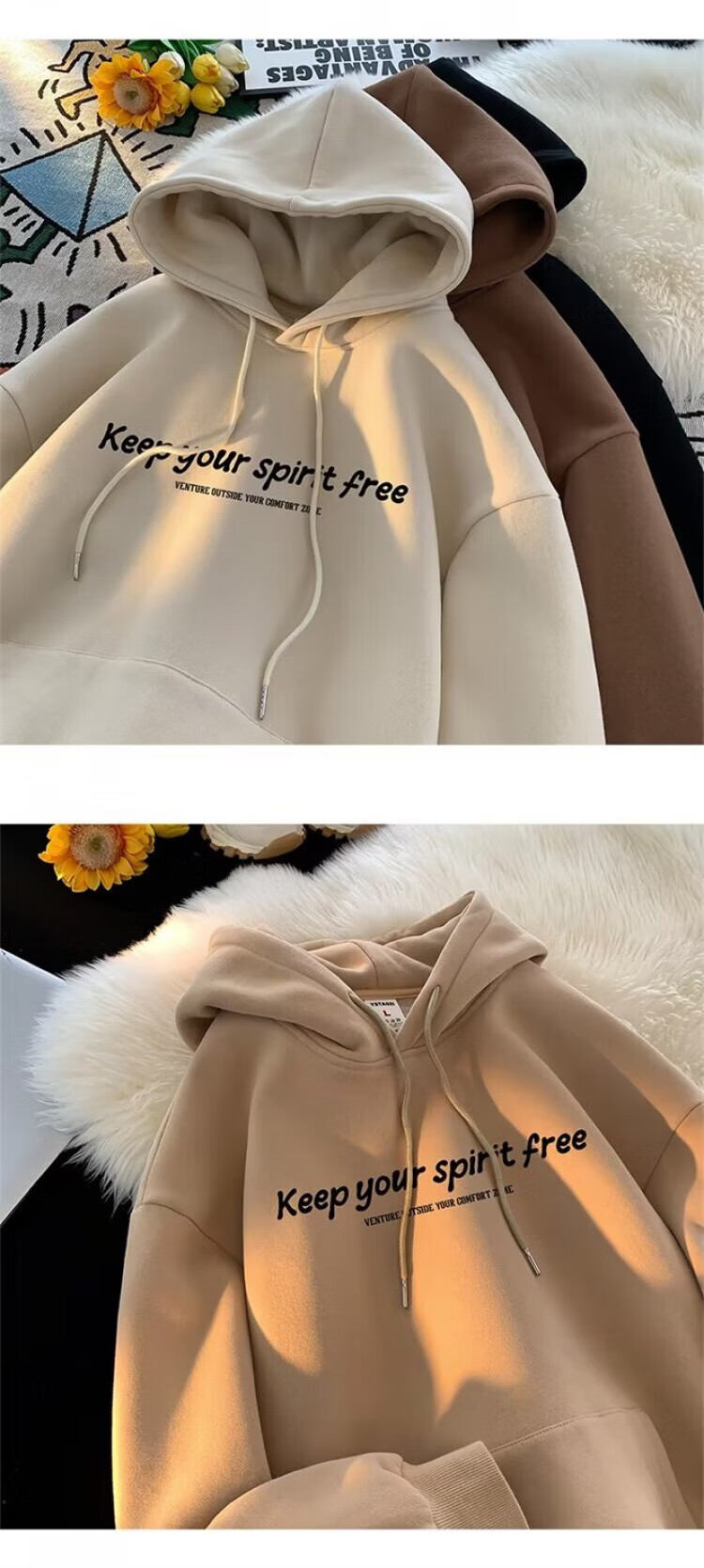 Velvet thickened American sweatshirt for men, autumn and winter trendy brand hooded jacket, youth loose high street versatile clothes, apricot plus velvet L