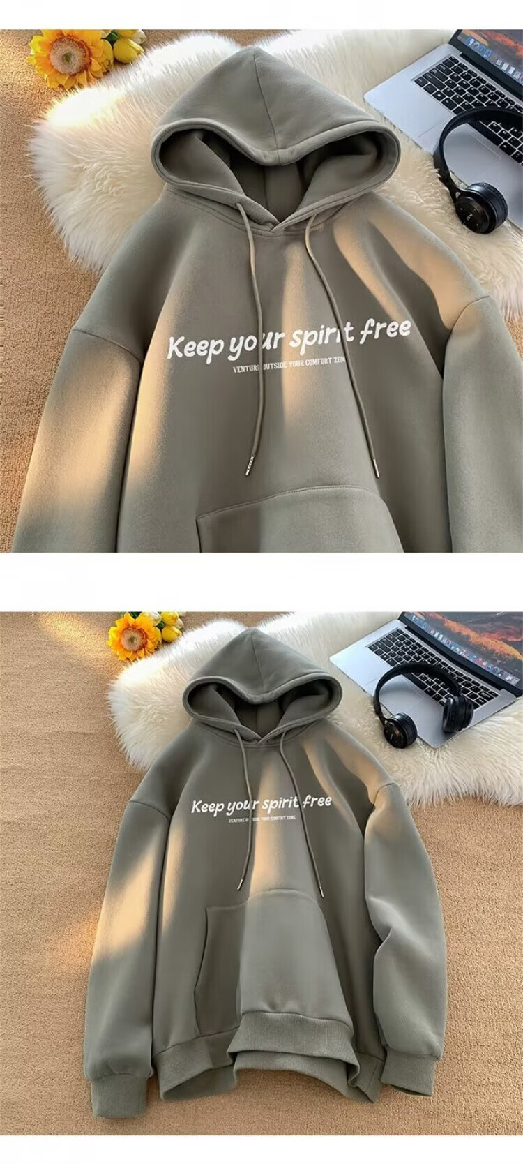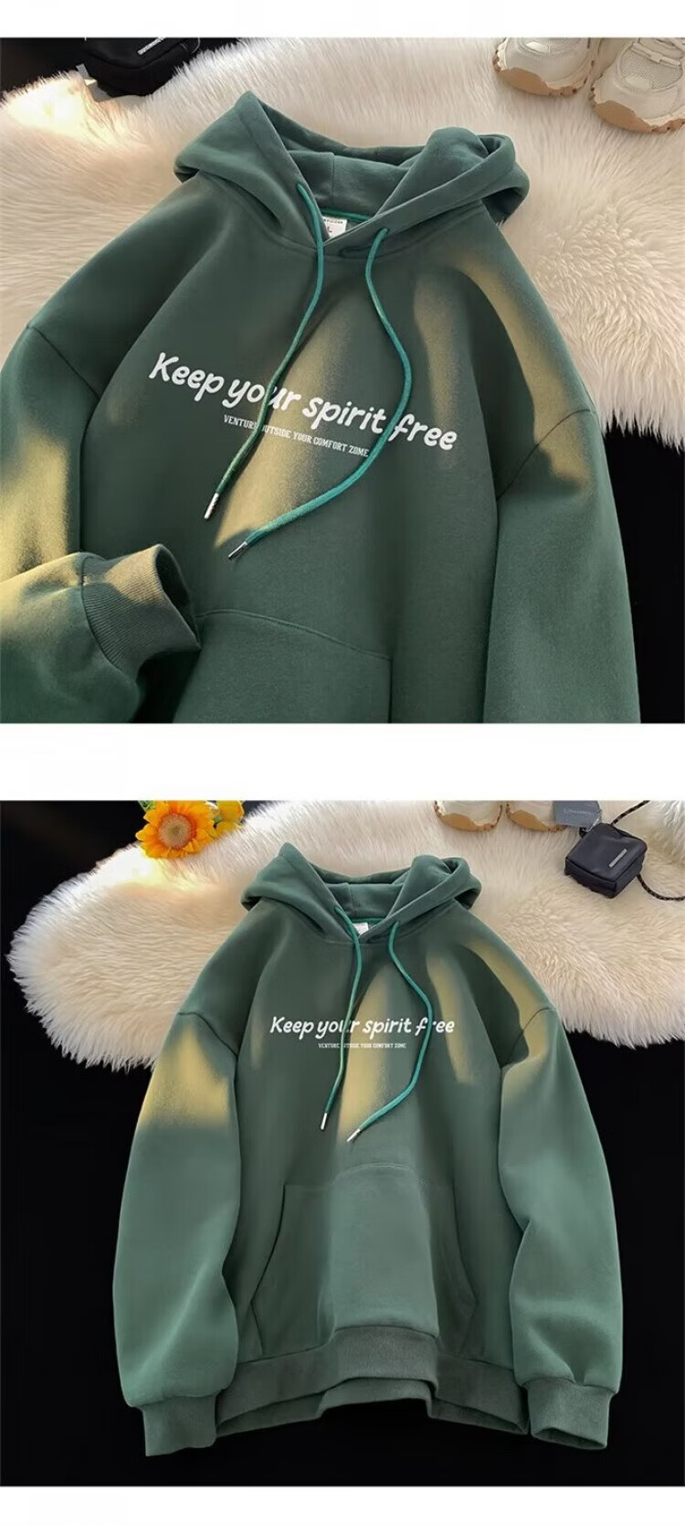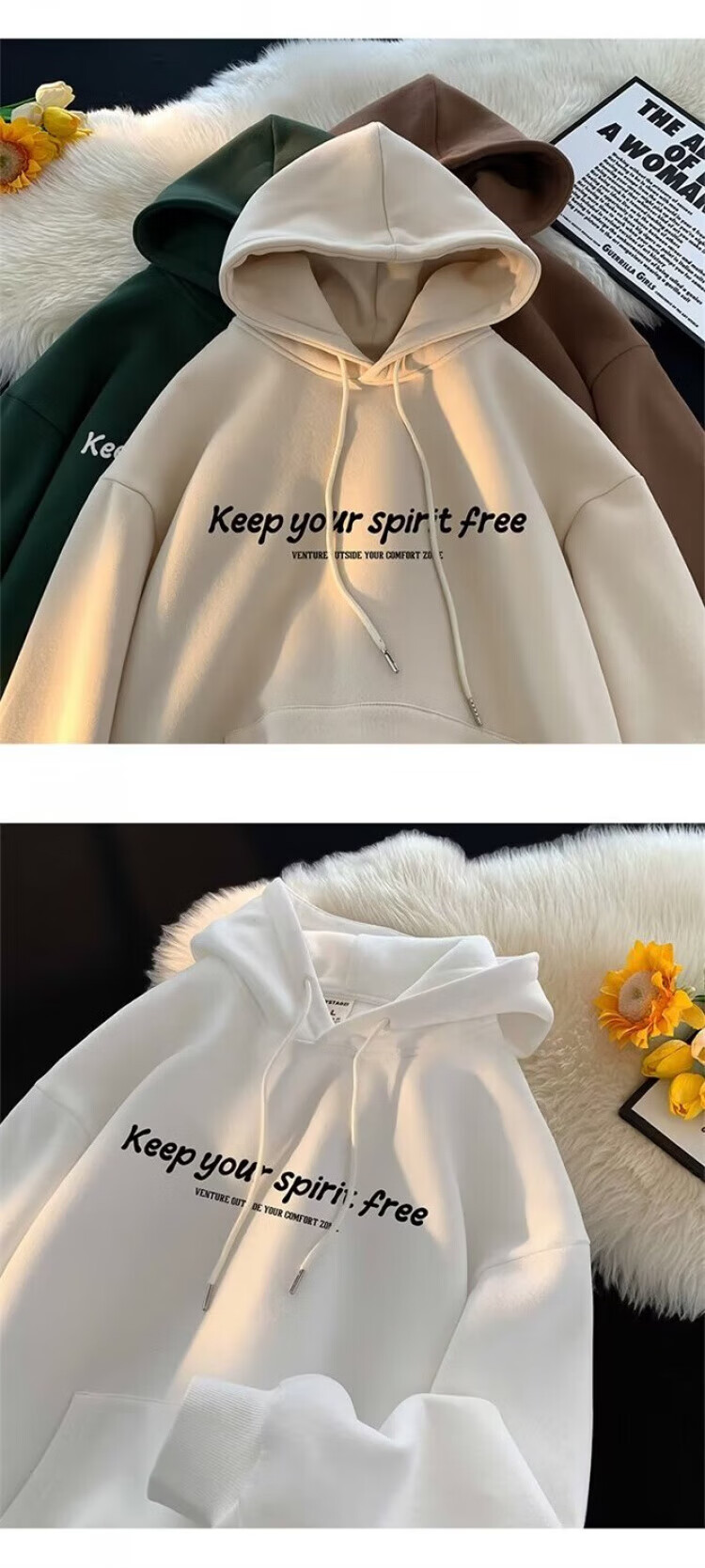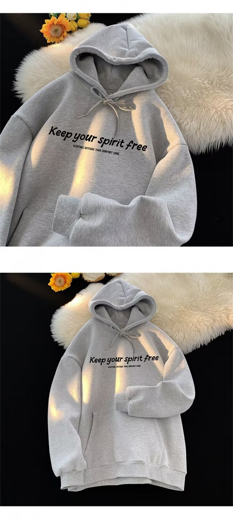 Velvet thickened American sweatshirt for men, autumn and winter trendy brand hooded jacket, youth loose high street versatile clothes, apricot plus velvet L