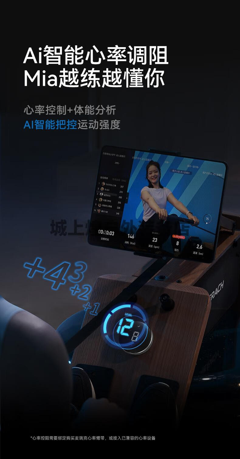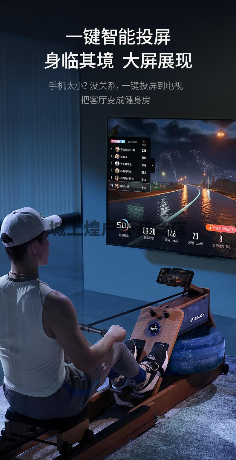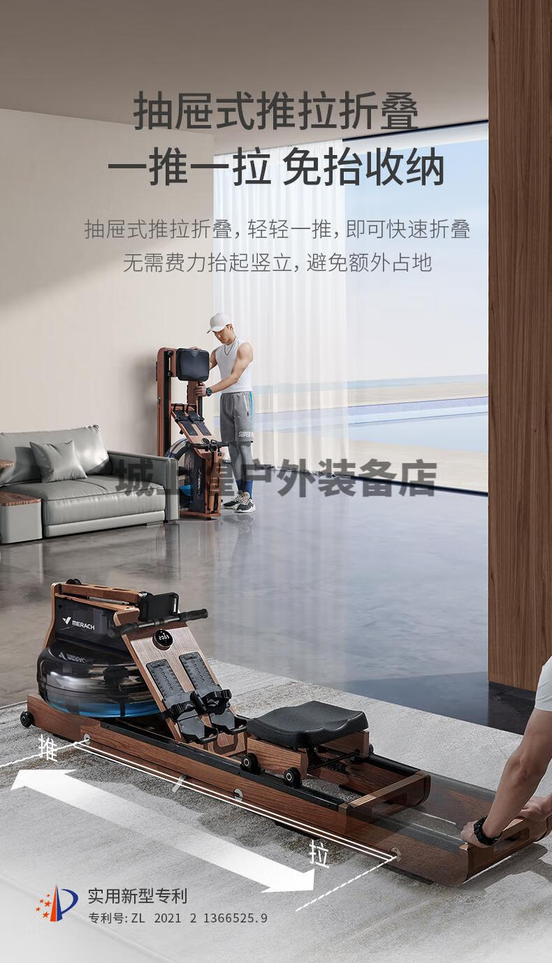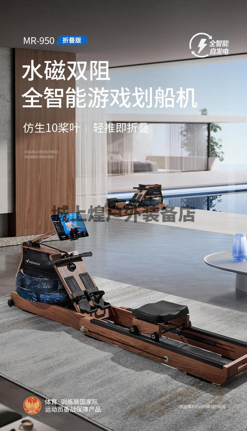 Merrick 950 rowing machine household foldable hydromagnetic dual-resistance multi-functional intelligent aerobic fitness equipment self-generating patented folding bionic whale fin propeller blade-strong magnetic resistance-AI