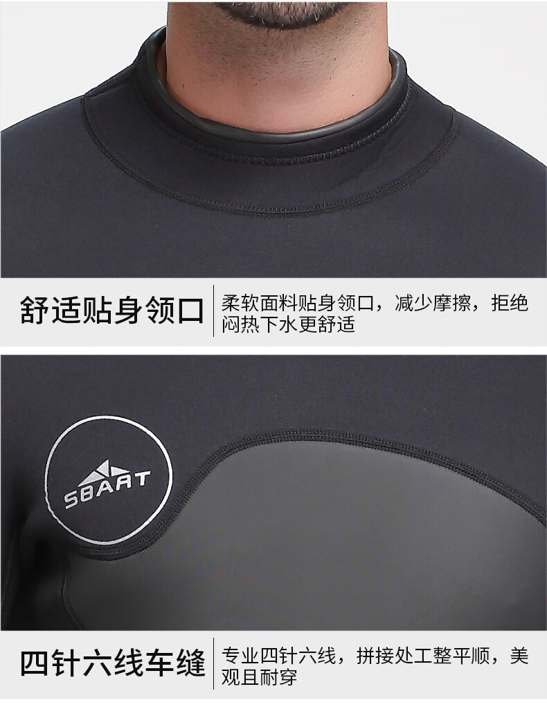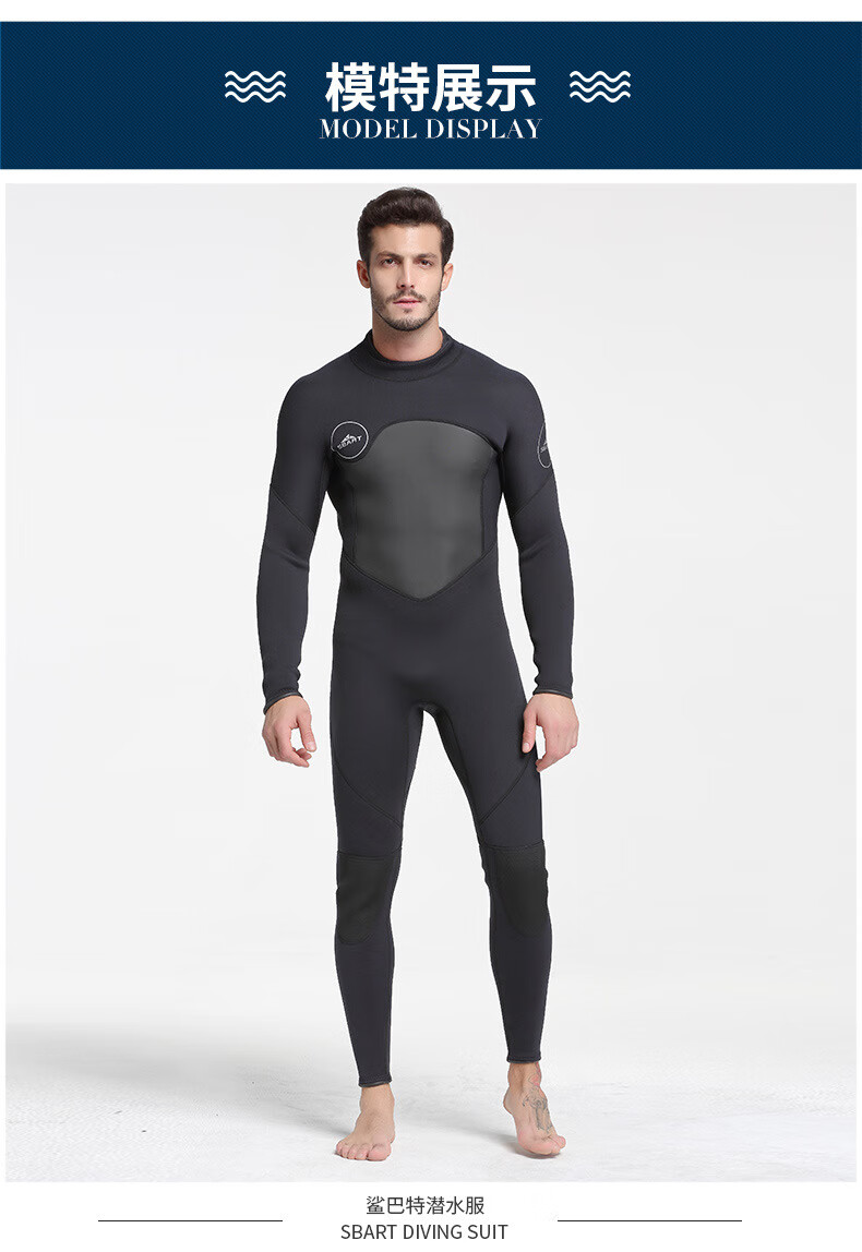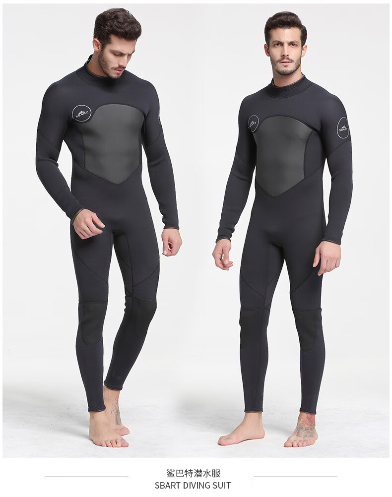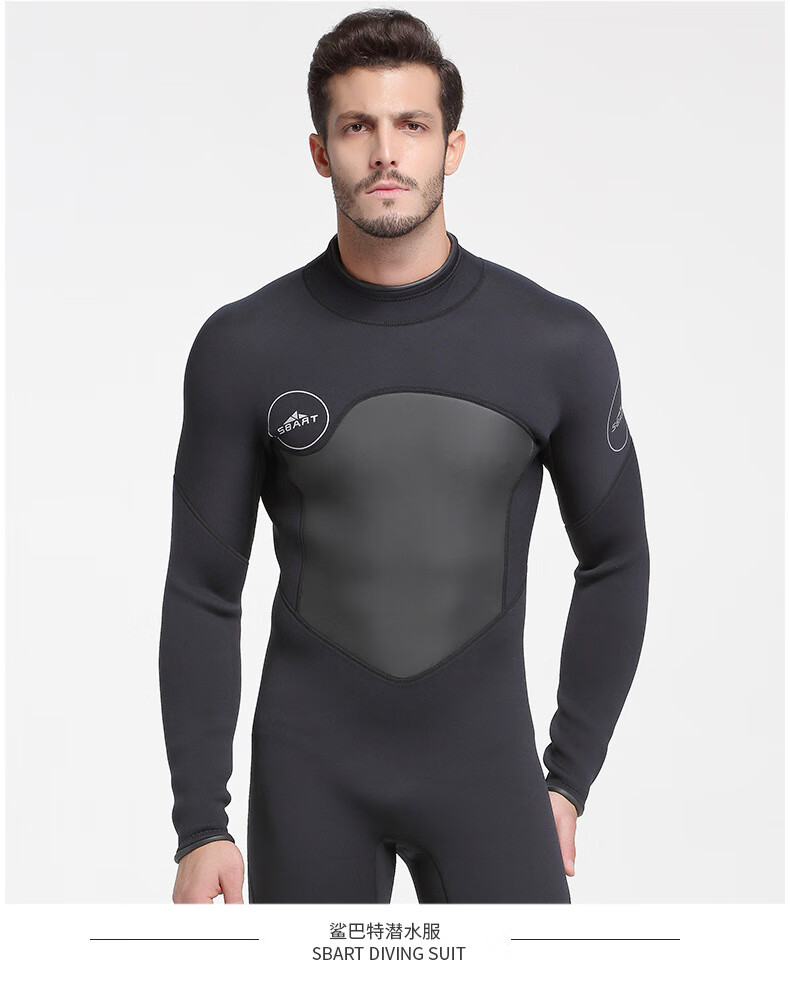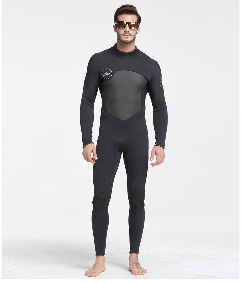 SBART new men's 5MM one-piece wetsuit for girls, cold-proof and warm wetsuit for adults, surfing swimsuit, 1164 black with fine embossing XL
