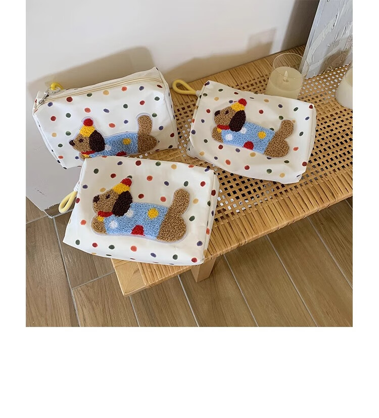 Cosmetic Bag Large Capacity Storage Cosmetic Bag Women's Portable New Skin Care Product Storage Travel Toiletries Bag Storage Bag Spotted Dog Storage Bag + Yellow Rope Pendant No Specifications