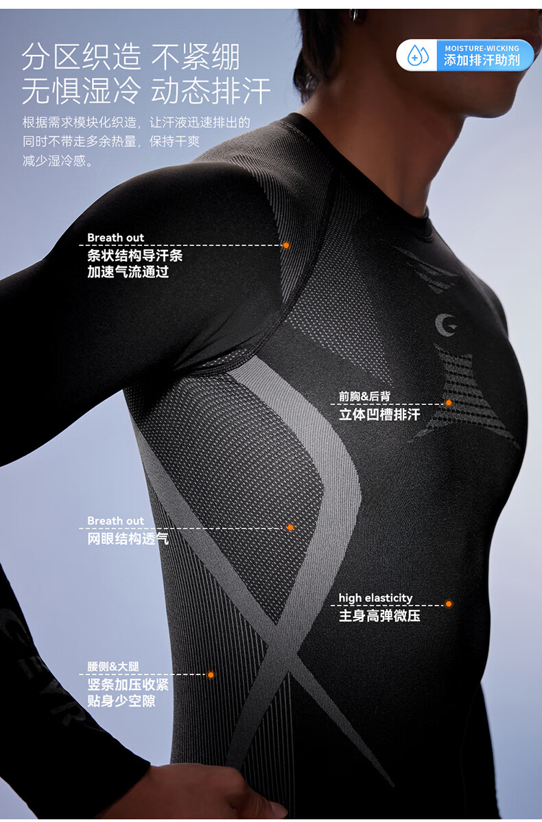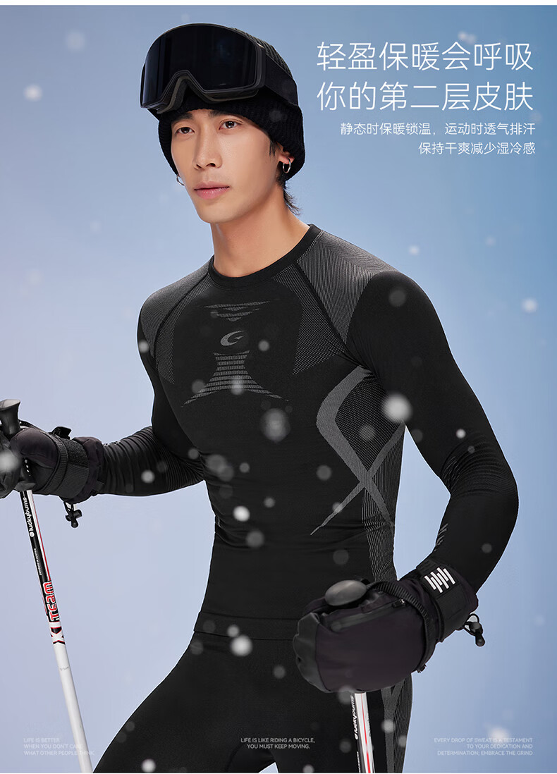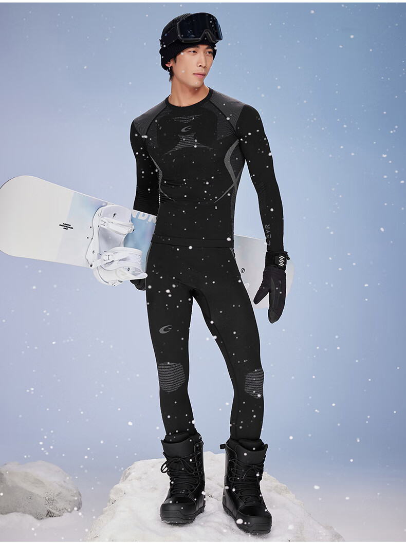 EVR cycling sweatshirt winter men's style with high elastic antibacterial quick-drying knitted ski sports compression clothing outdoor running men's black top one size 2XL/3XL