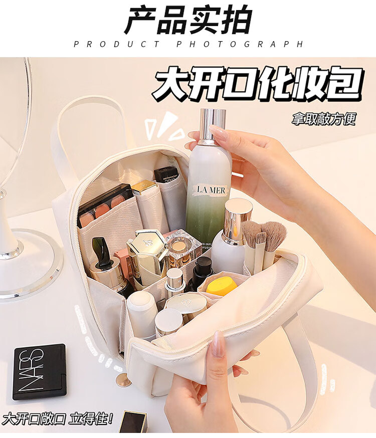Cosmetic bag for women portable large capacity waterproof 2025 new ins style travel toiletry bag cosmetics storage bag small pink handheld model without Specifications