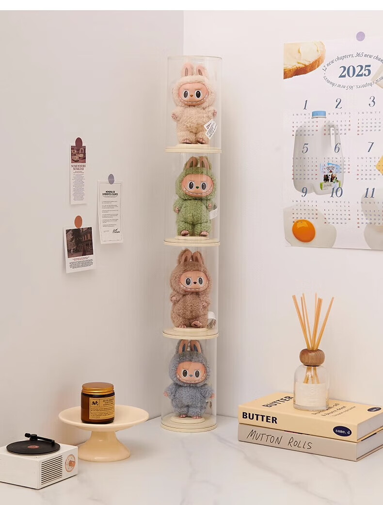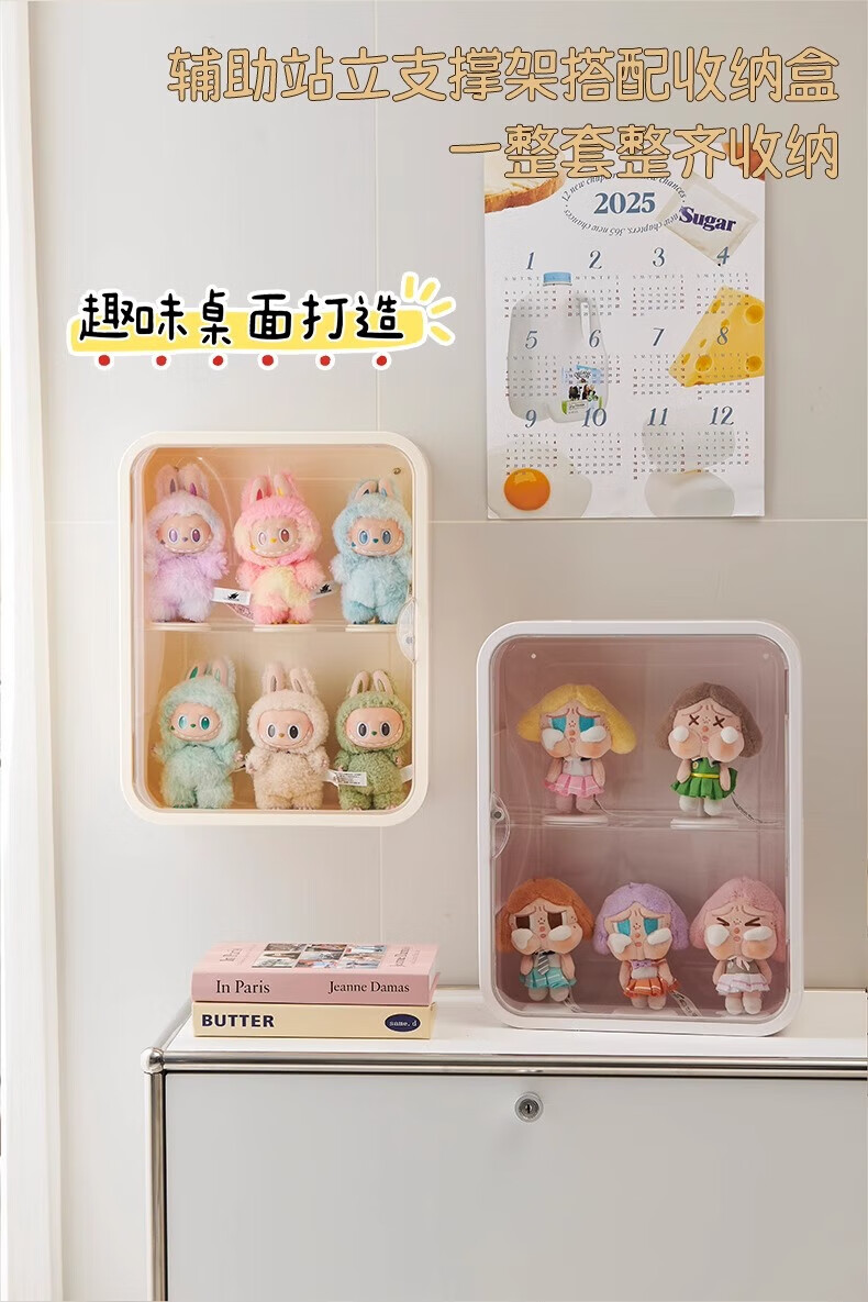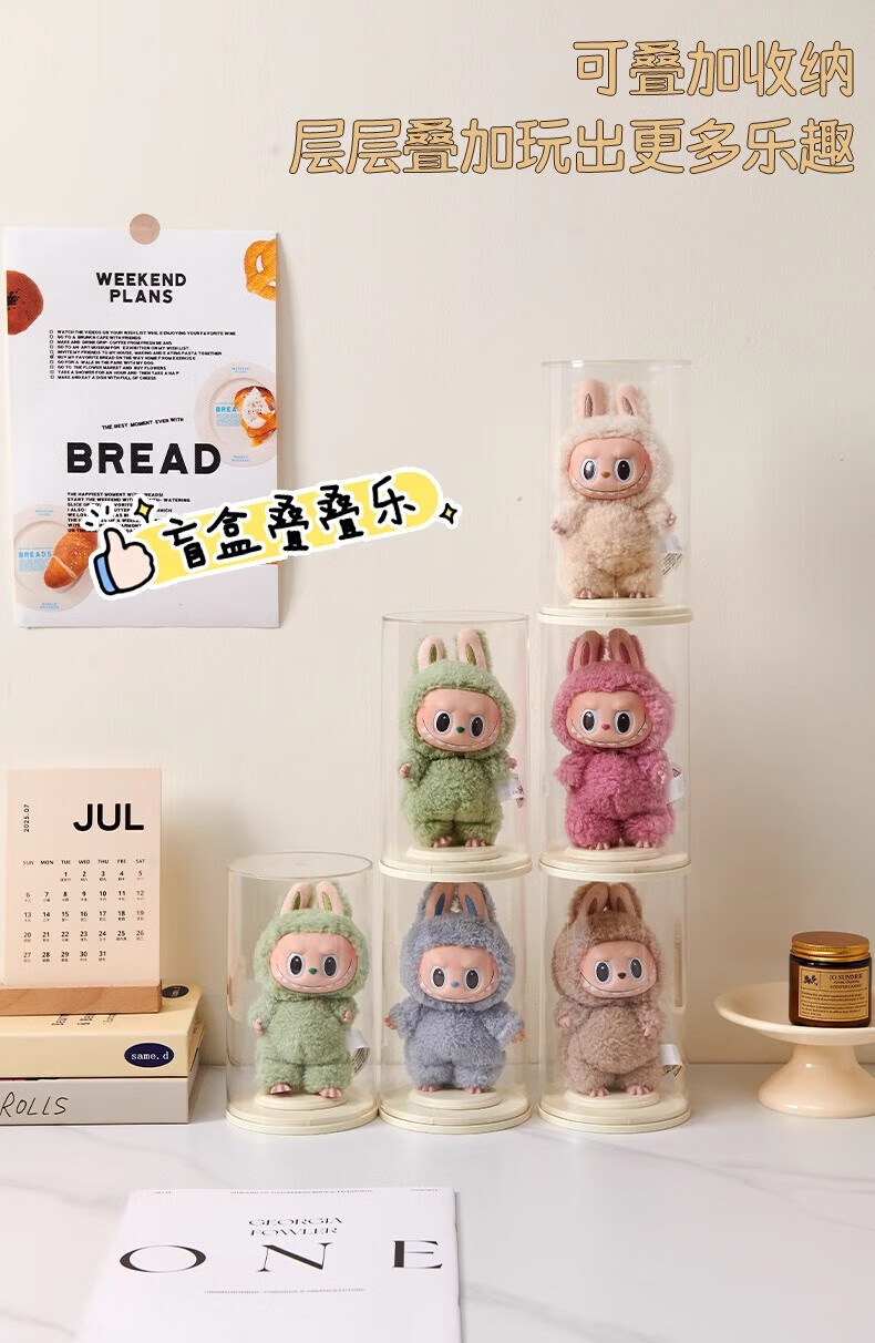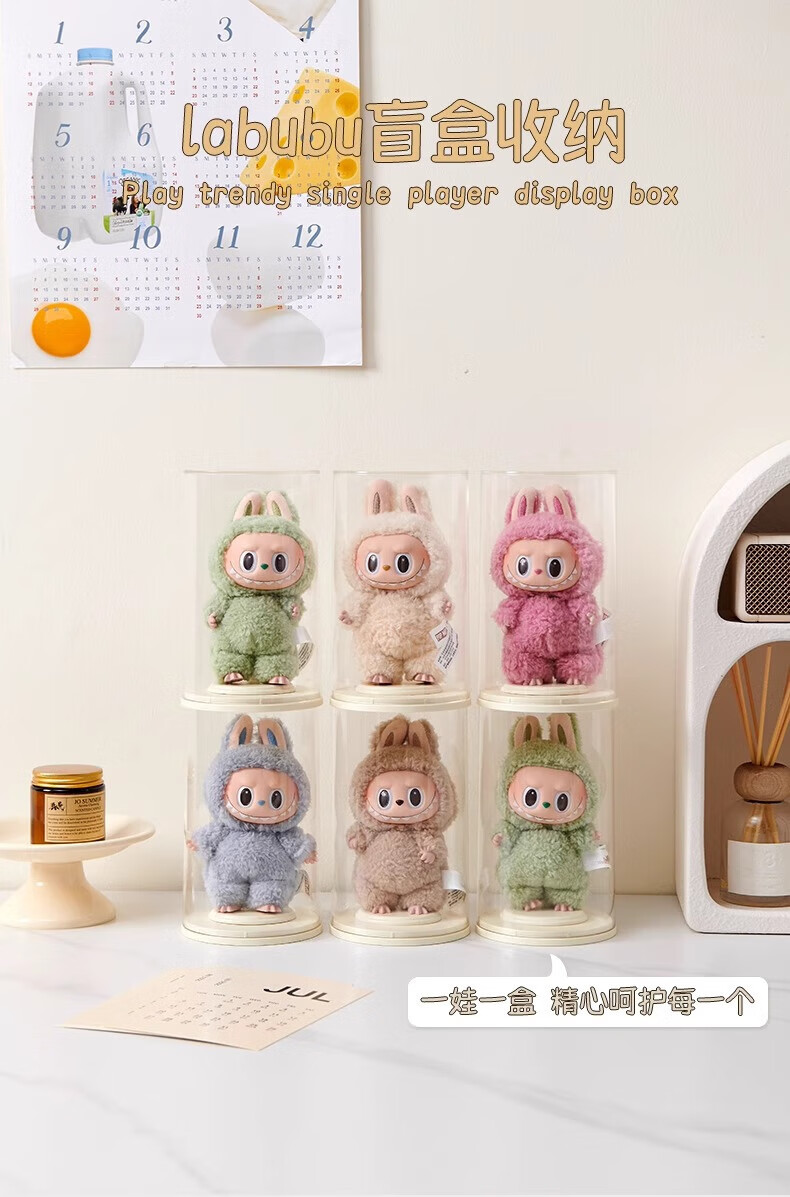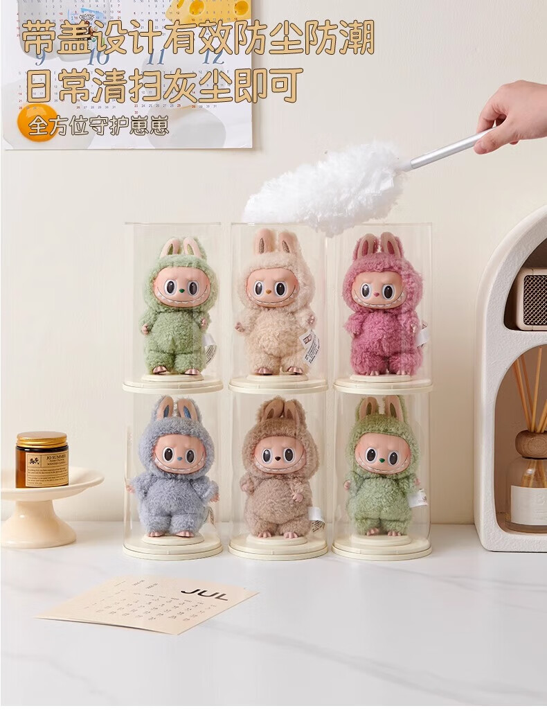 Suitable for labubu luxury single room display box enamel doll lab cloth dust cover blind box storage display rack cheese white-single package upgraded with bracket