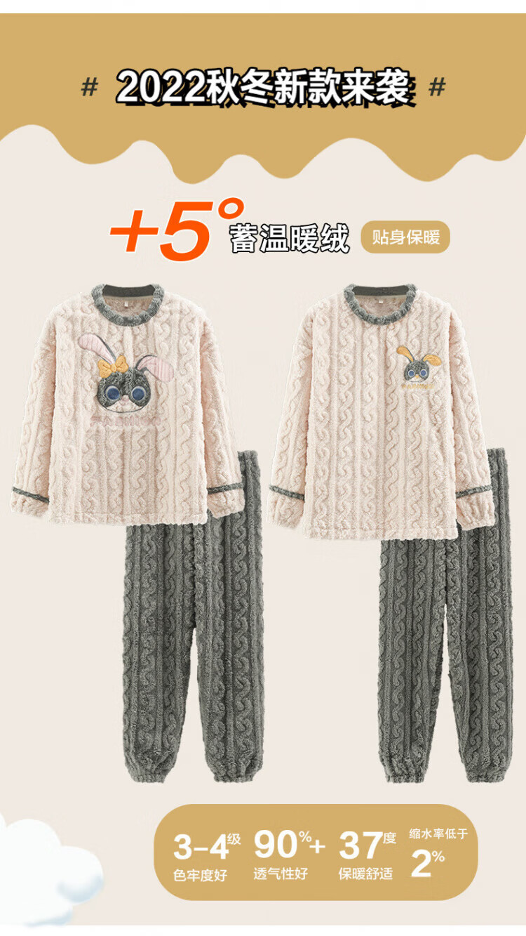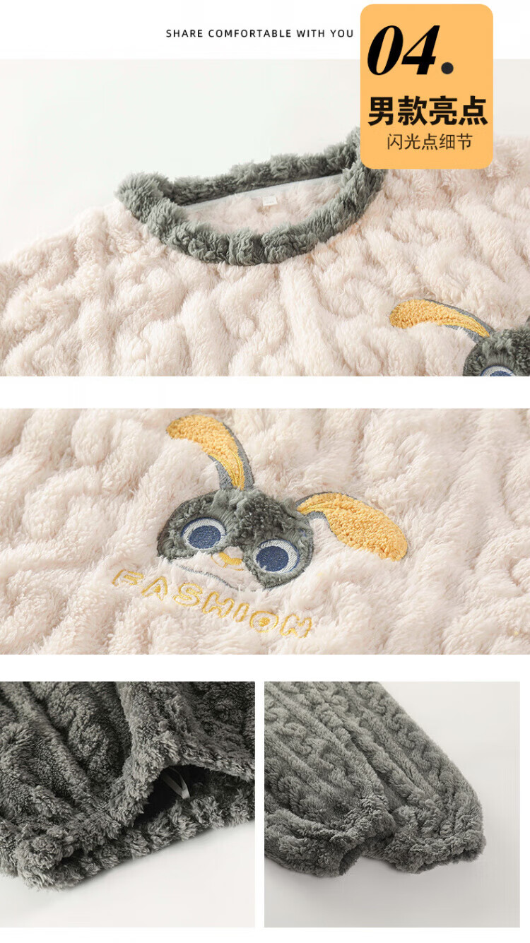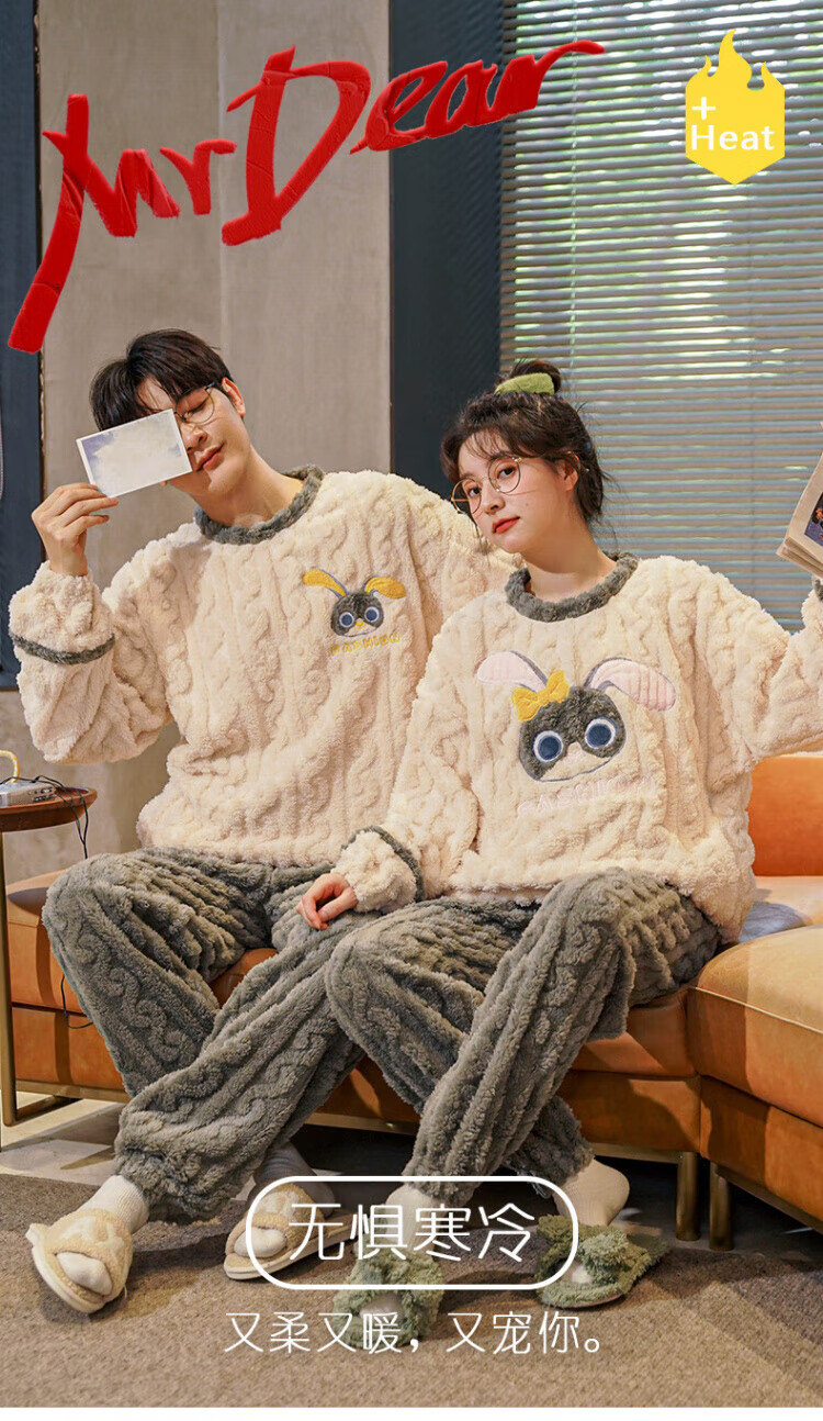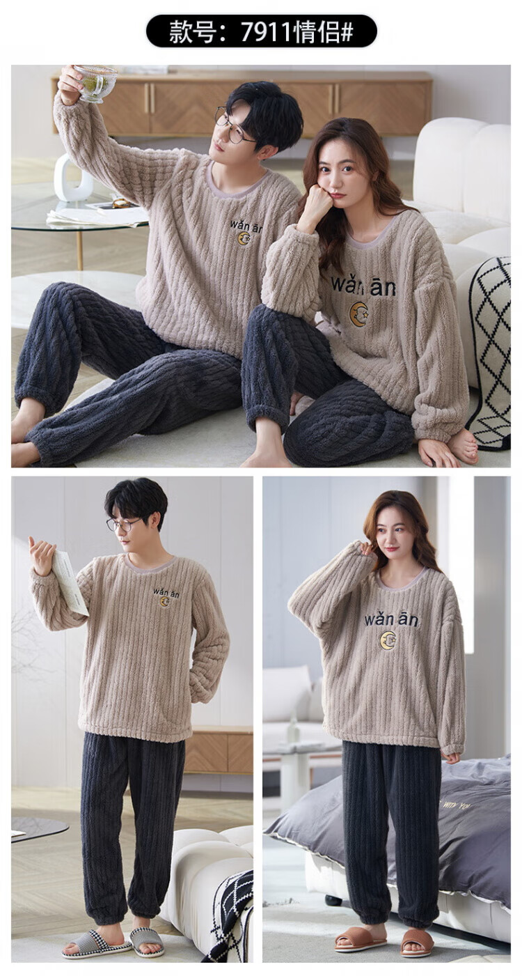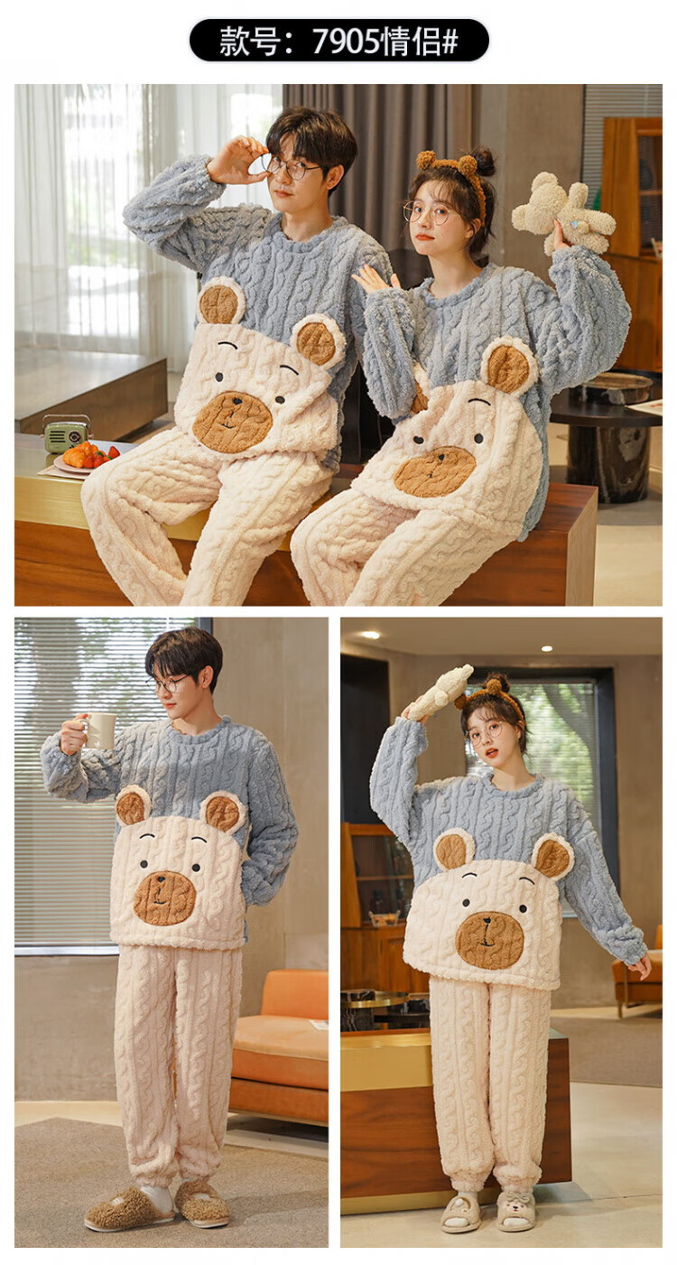 MiiOW coral velvet couple pajamas for women winter thickened velvet warm flannel large size can be worn outside home clothes suit men HMF7786 M women