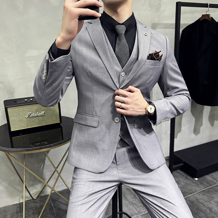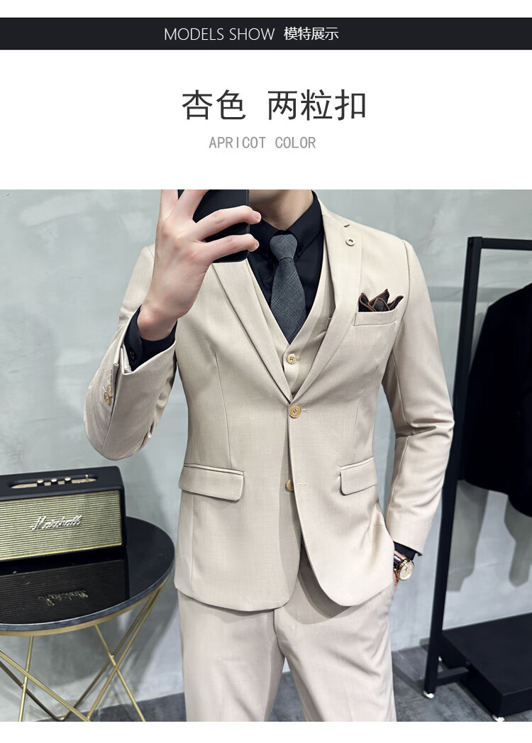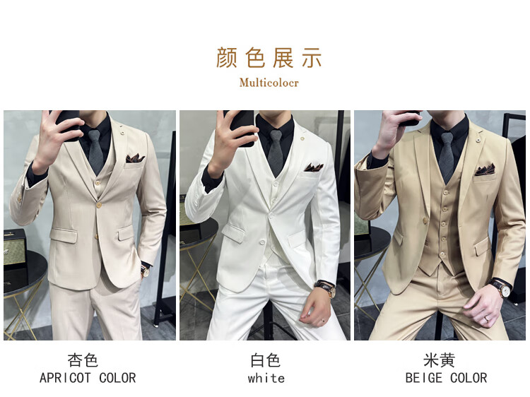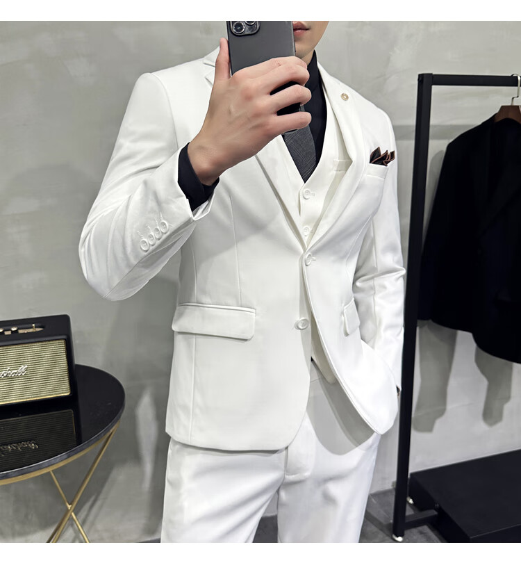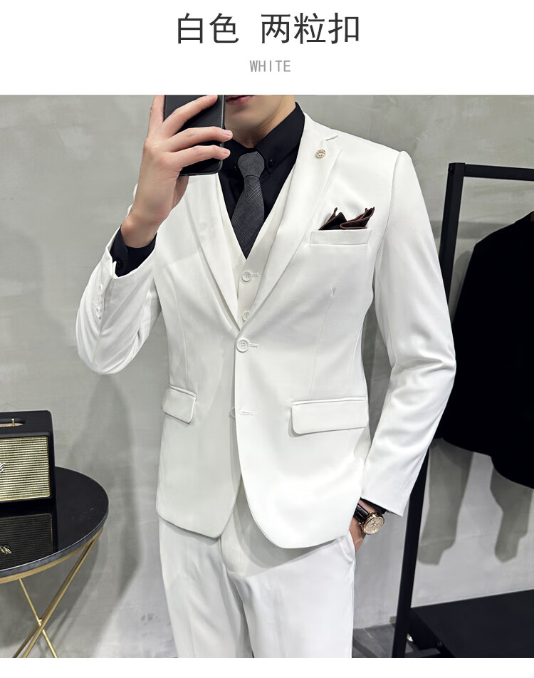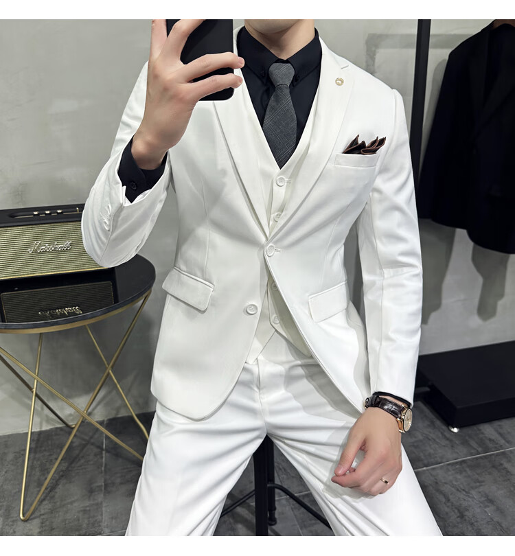ROMON men's business casual suit formal fit groom wedding dress white three-piece suit for men one button white suit jacket with tie XS 160 weight 90-Jin Jin equals 0.5 kg