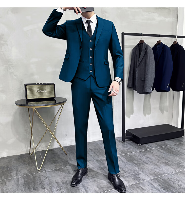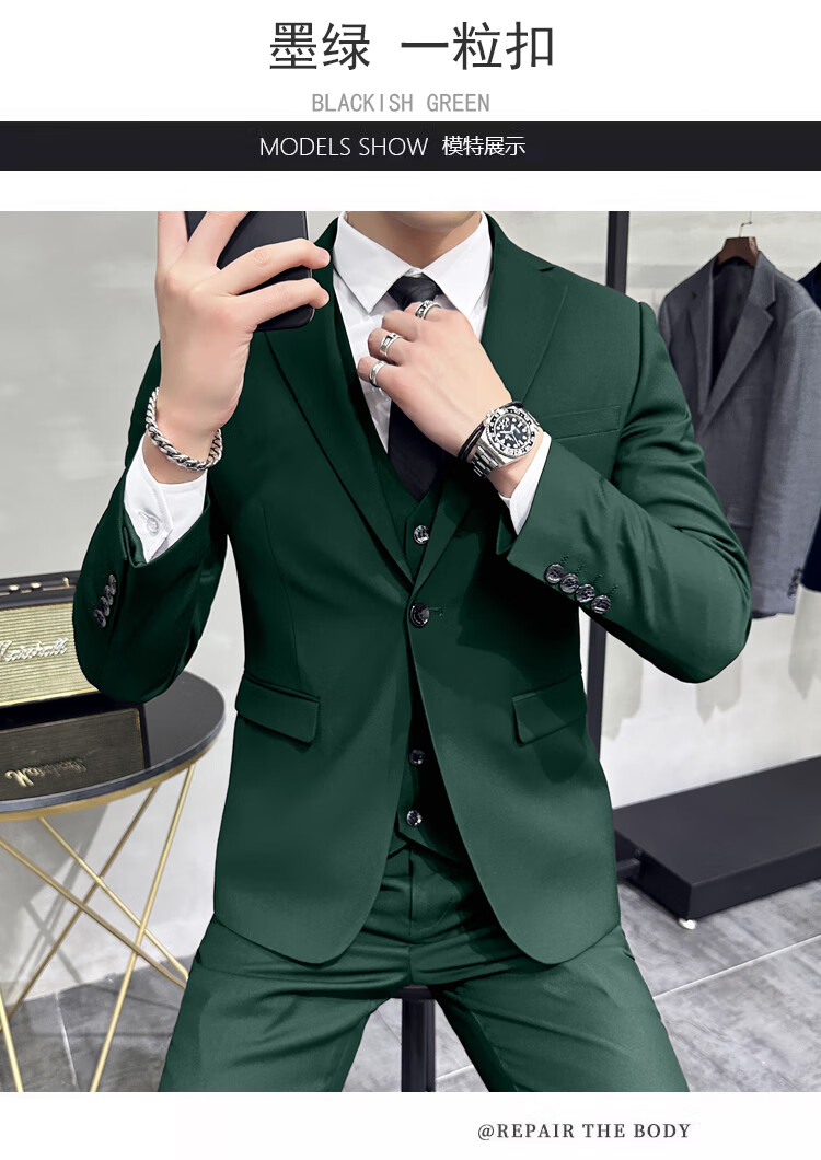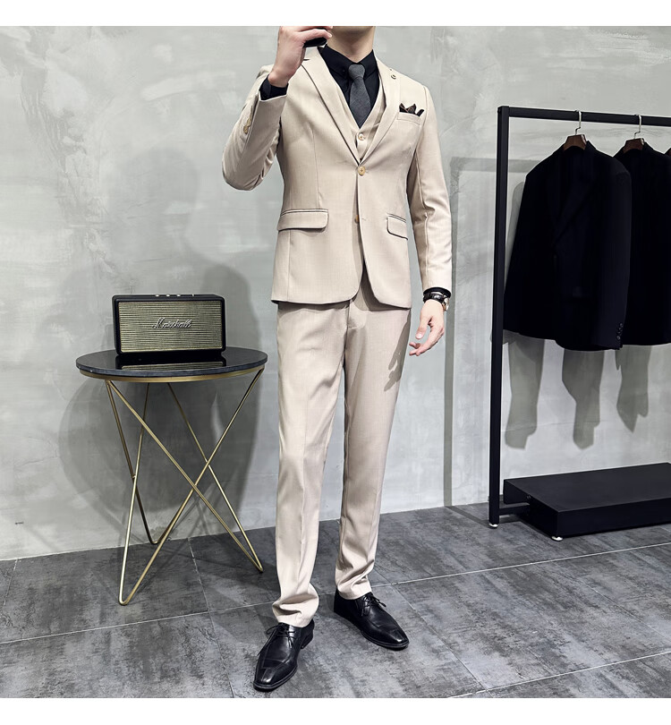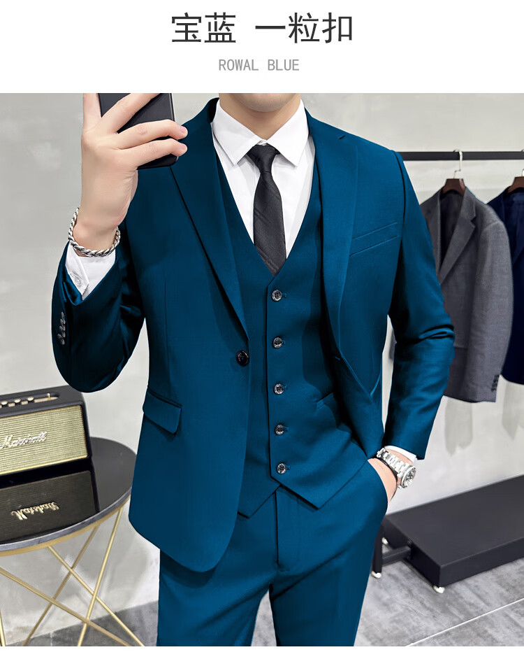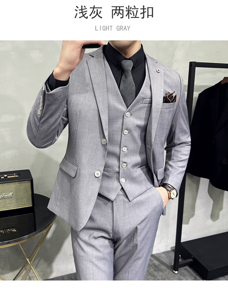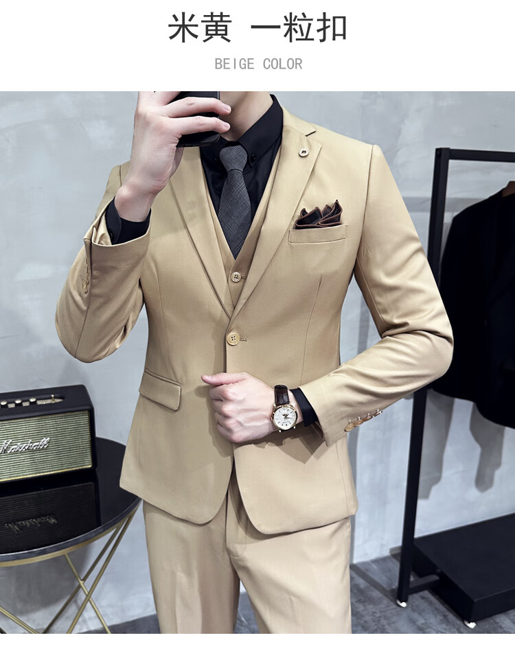 ROMON men's business casual suit formal fit groom wedding dress white three-piece suit for men one button white suit jacket with tie XS 160 weight 90-Jin Jin equals 0.5 kg