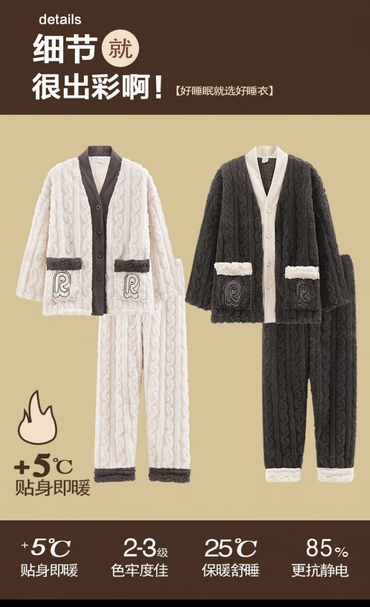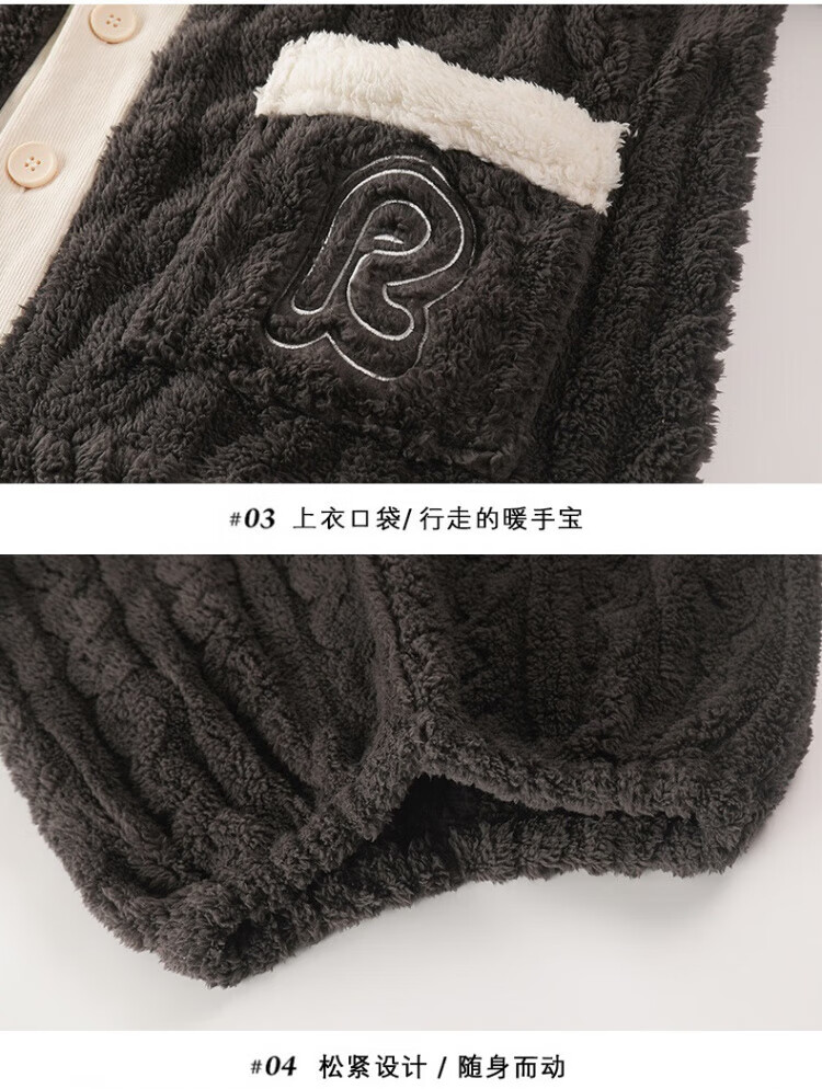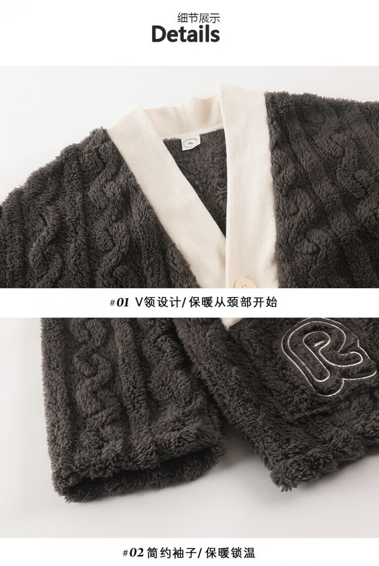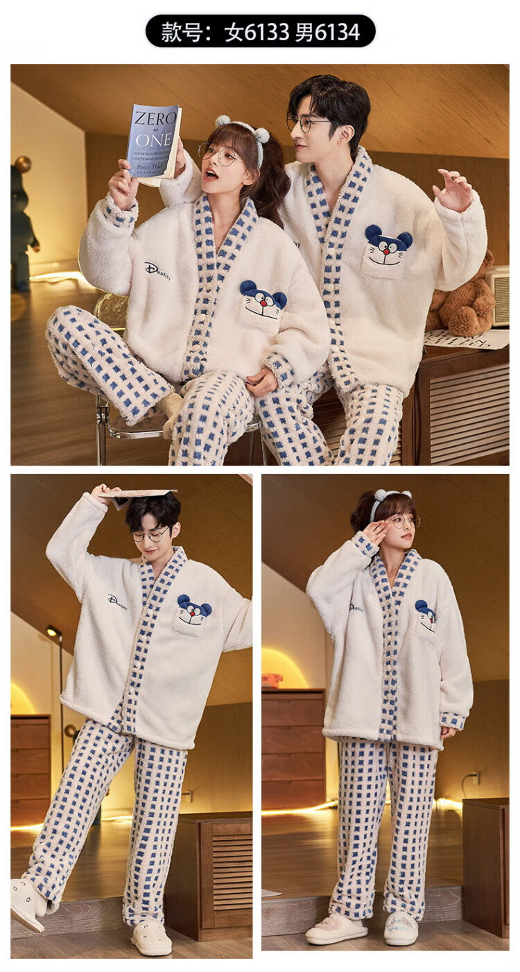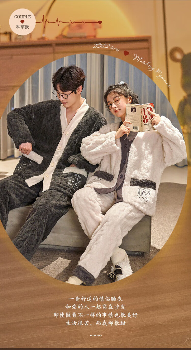 MiiOW couple pajamas autumn and winter style coral velvet V-neck cardigan for men and women thickened velvet flannel home wear set female B6119 male B6120 M female