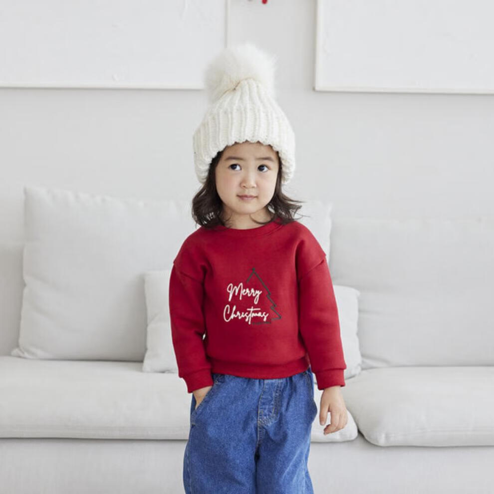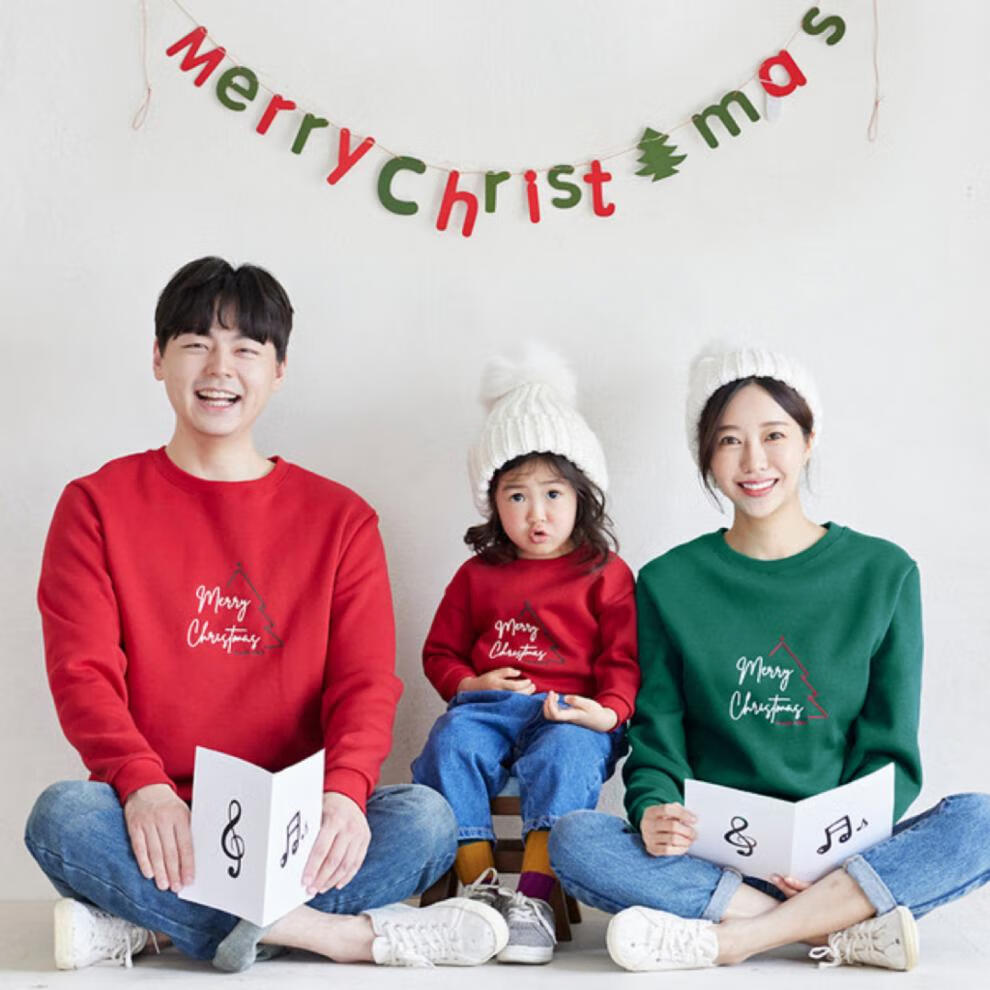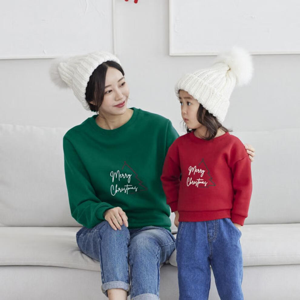 G.duck Christmas parent-child wear 2025 autumn and winter new long-sleeved round neck sweatshirt versatile children's clothing tops family wear burgundy autumn style 165 adults S