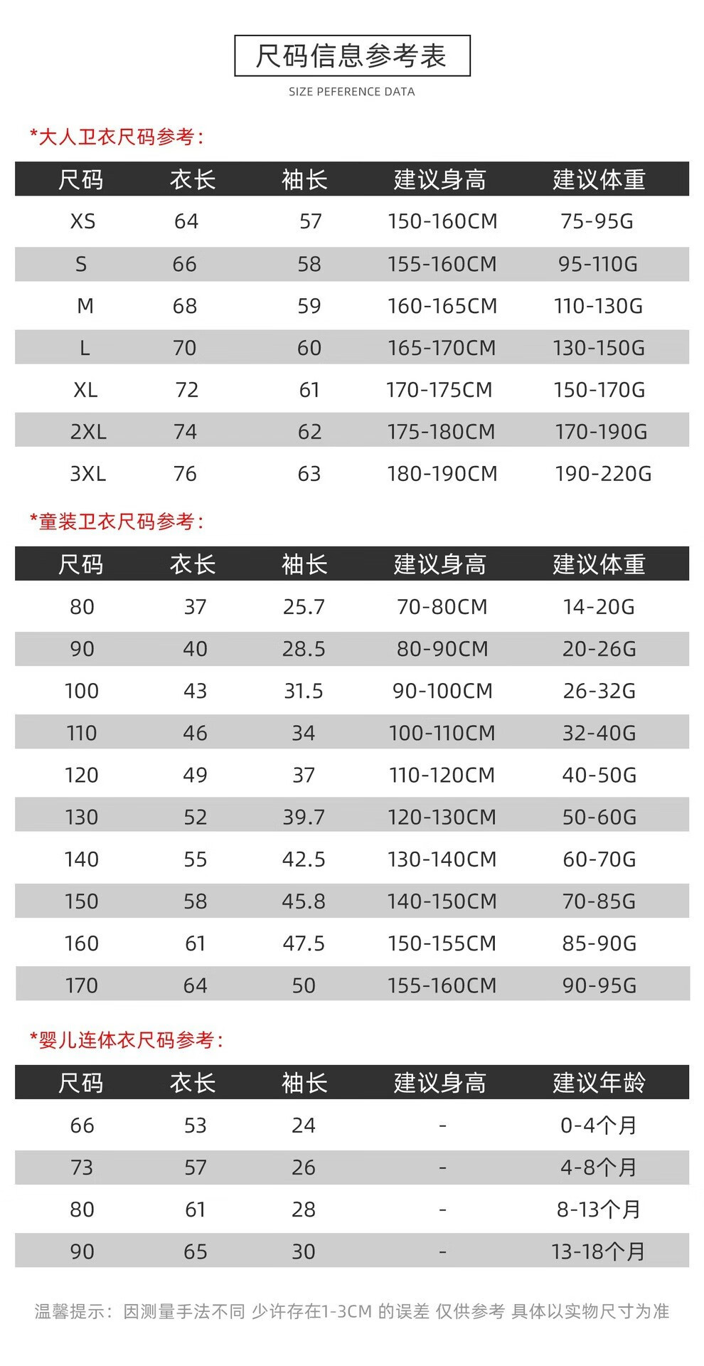 China (cm) 160-165/84-86 165-170 / 88-90 167-172 / 92-96 168-173 / 98-102 170-176 / 106-110