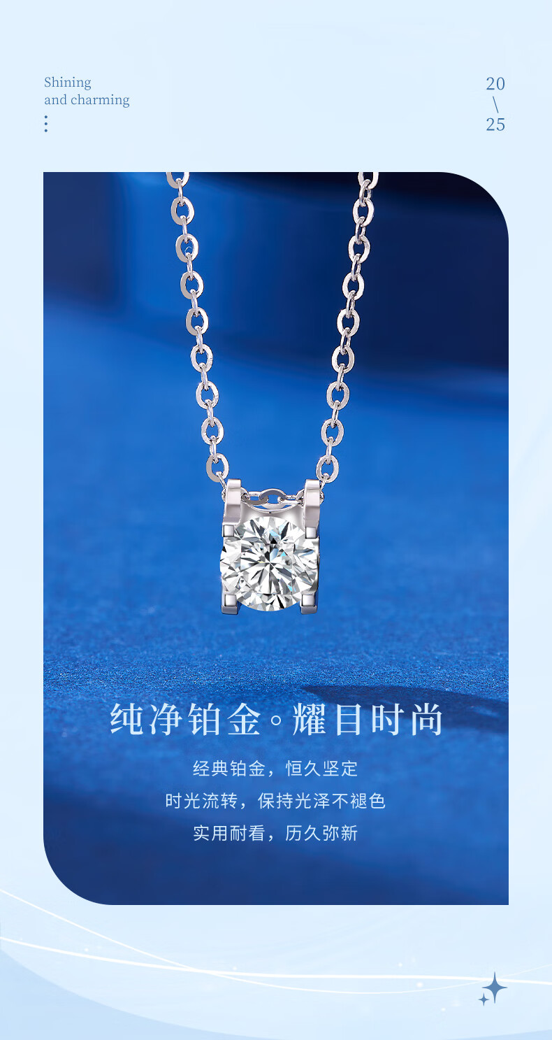 CHINA GOLD PT950 Platinum Brilliant Pendant for Women Platinum Exquisite Sparkling Necklace Valentine's Day Birthday Gift for Girlfriend and Wife Platinum Brilliant Pendant About 1g Free Silver Chain