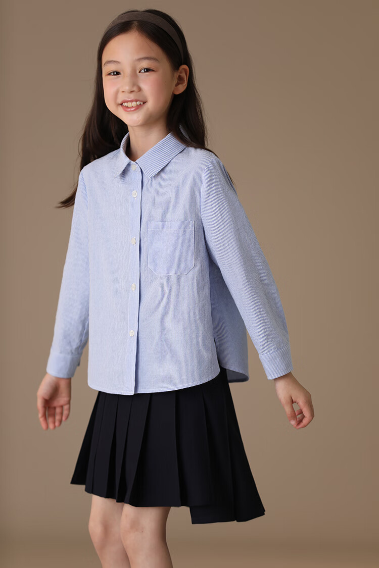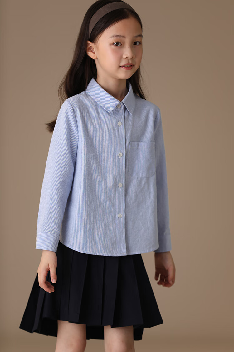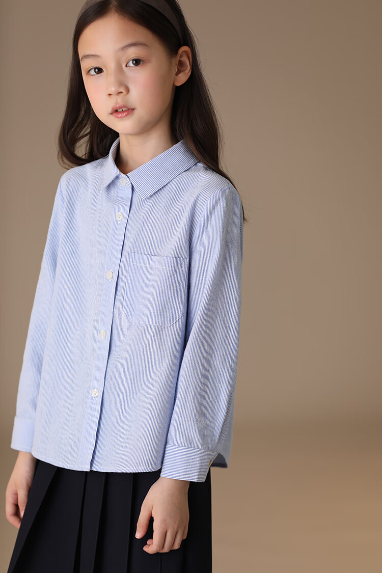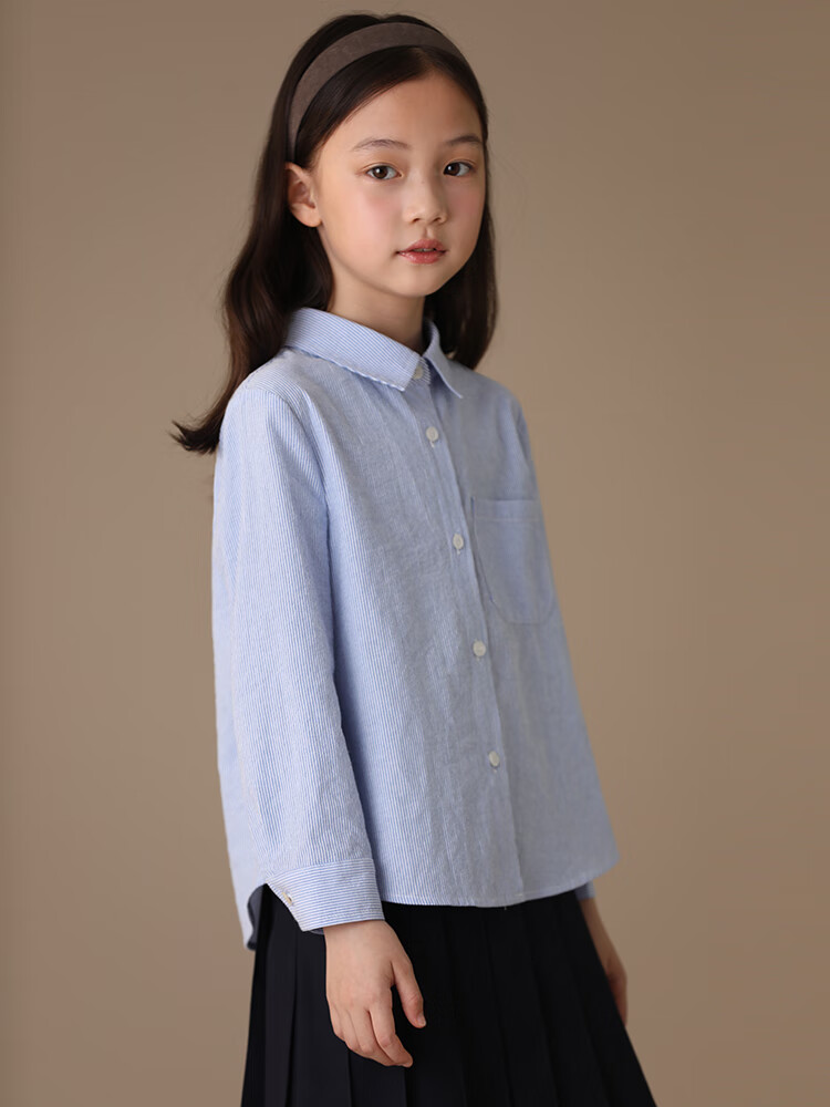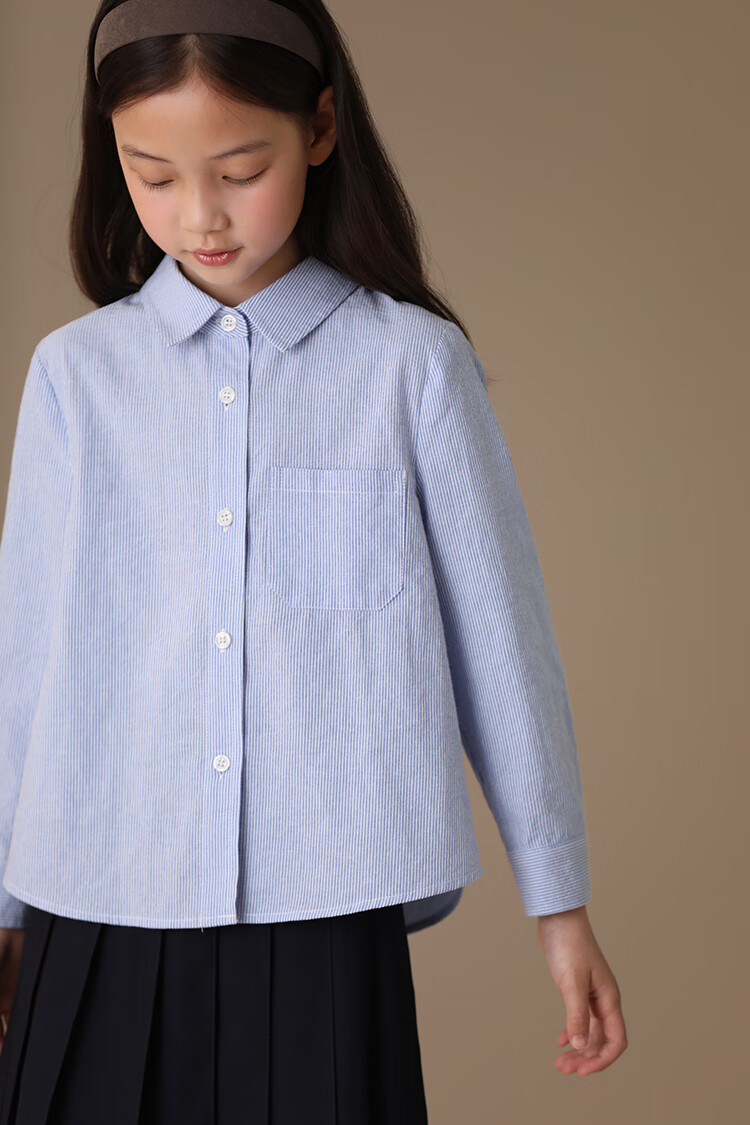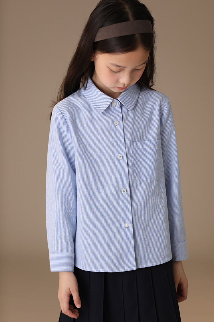 Haqi children's clothing spring and autumn children's blue shirt boys and girls striped tops college style long-sleeved shirt for middle and large children light blue 130