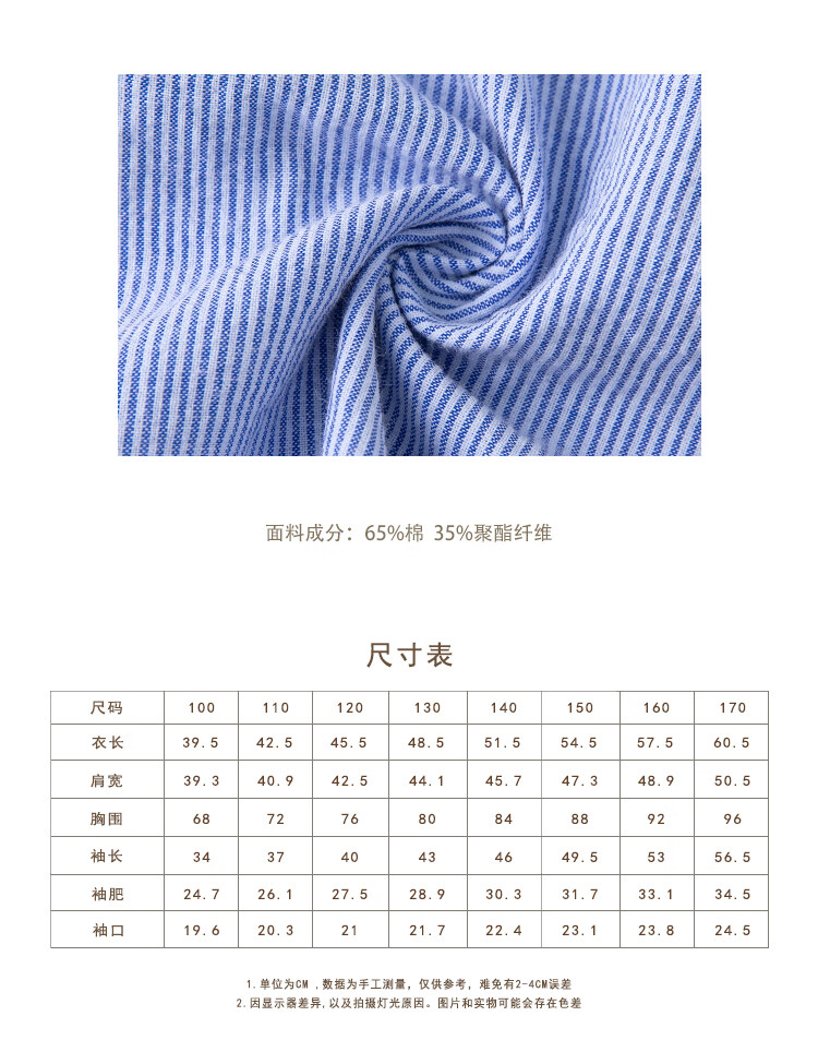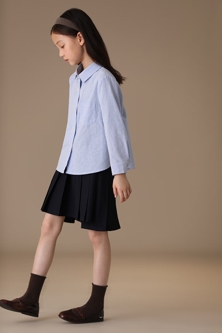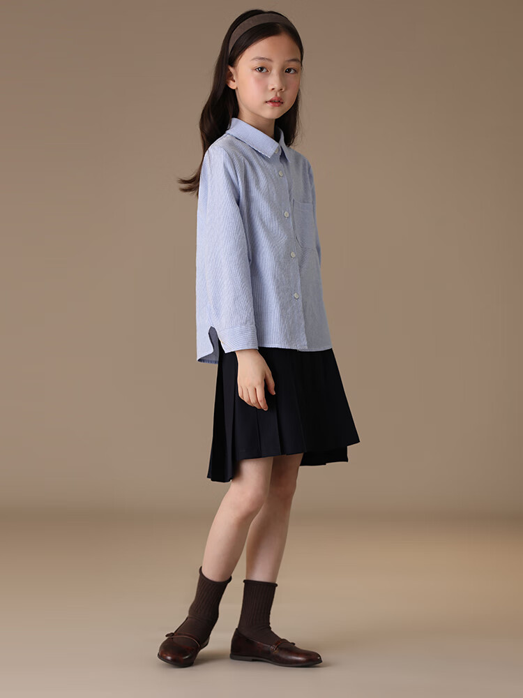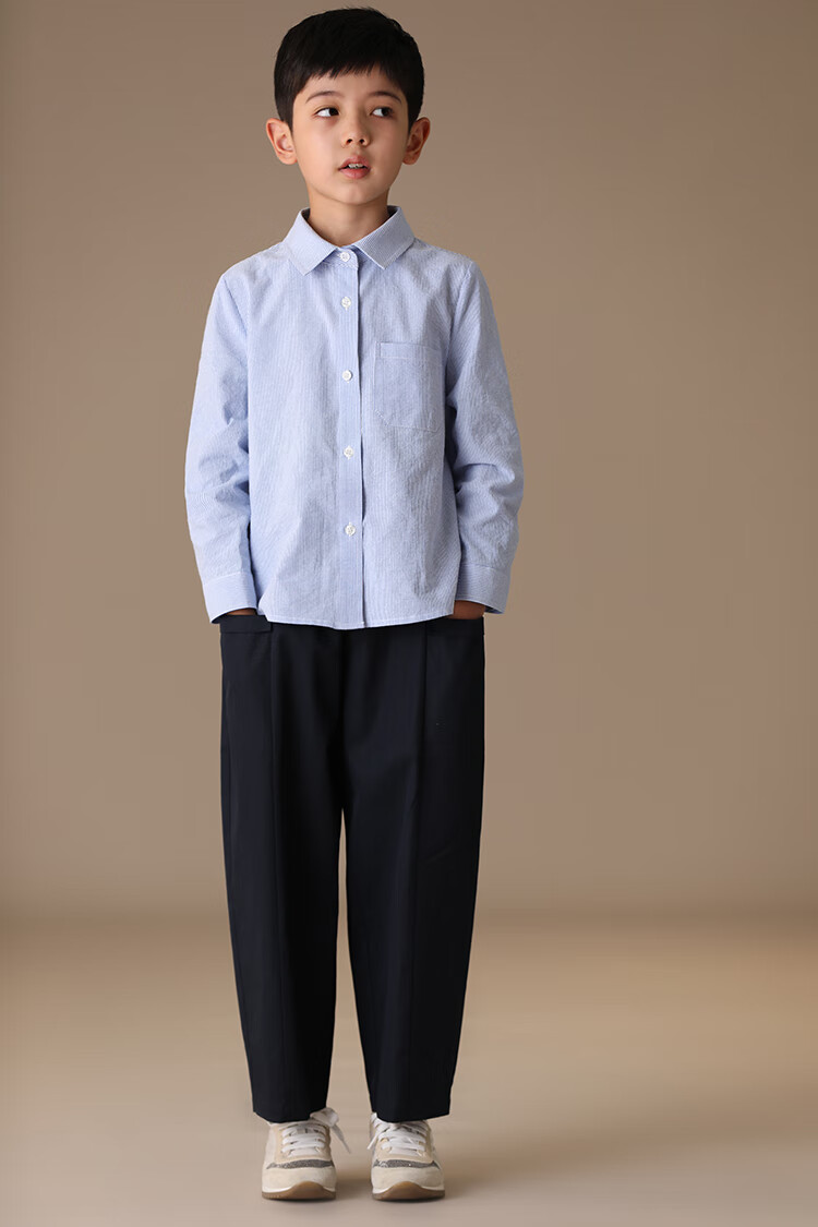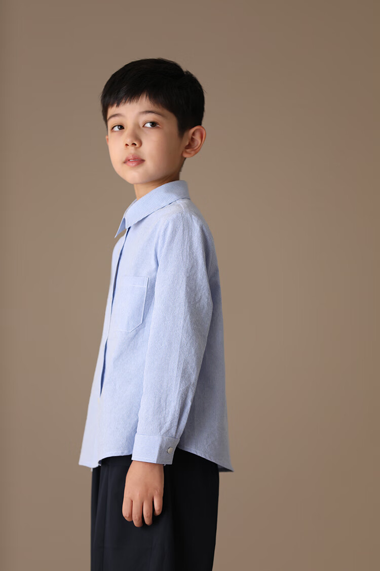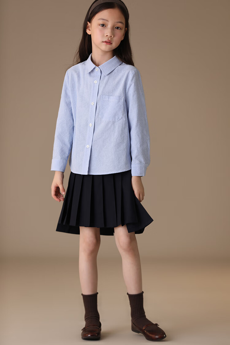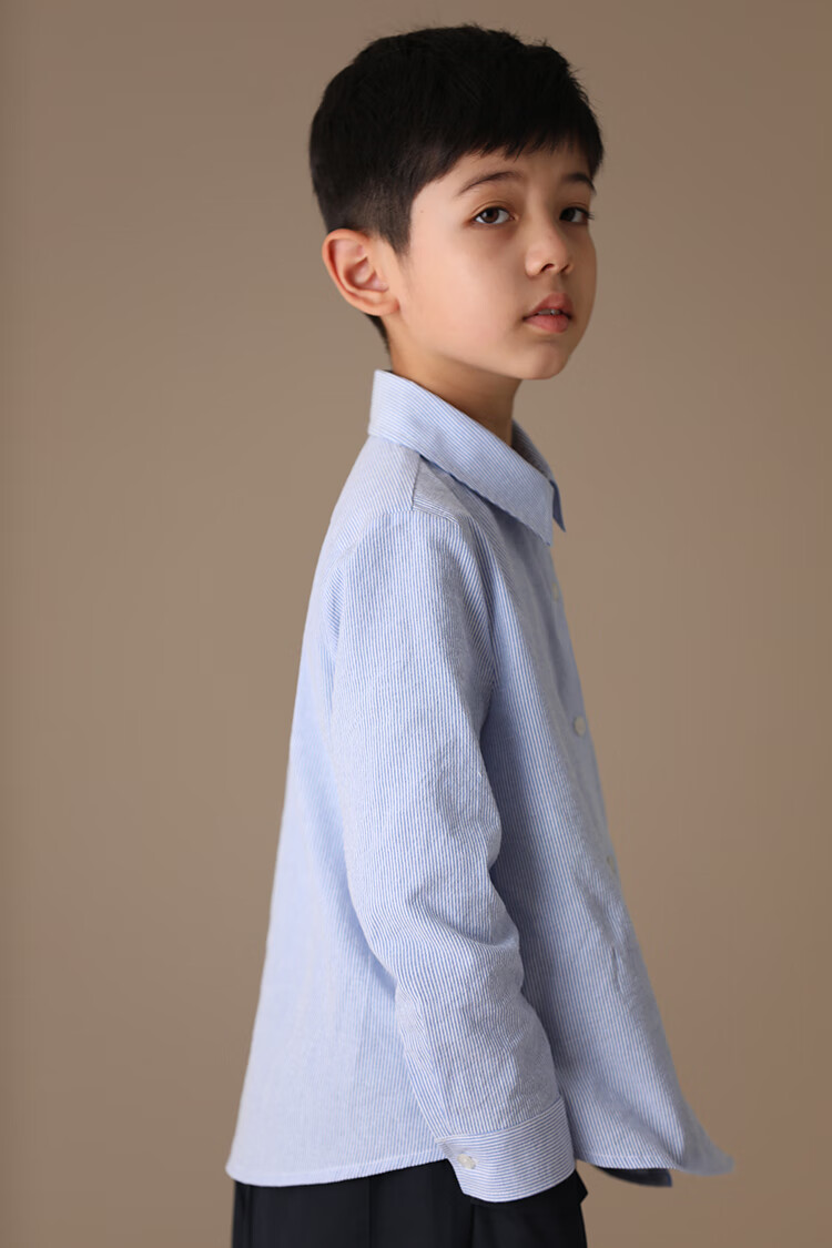 Haqi children's clothing spring and autumn children's blue shirt boys and girls striped tops college style long-sleeved shirt for middle and large children light blue 130