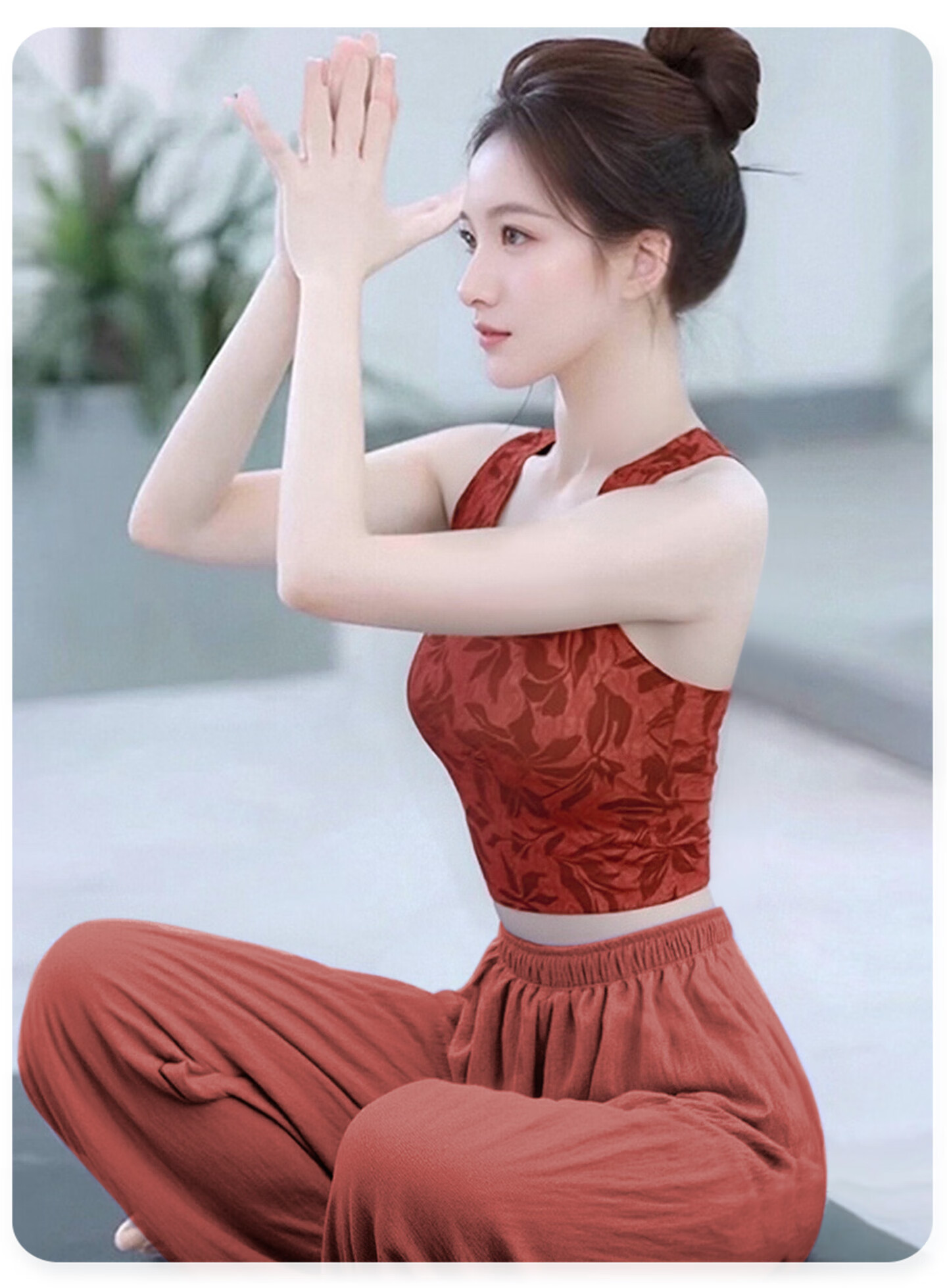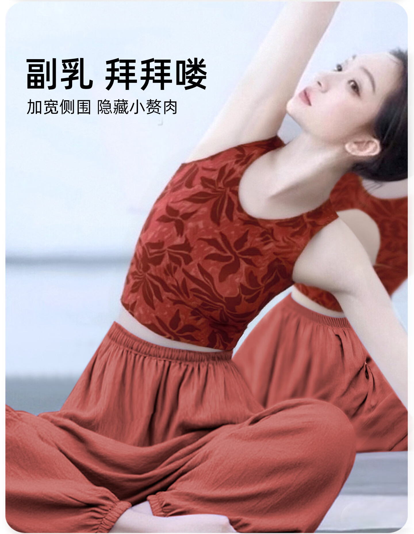 Shuangxiu Chinese Style Yoga Wear for Women 2025 New Dopamine Sports Top Vest Beautiful Pilates Training Fitness Set Red Mantingfang Bra + Red Pants Pants One Size M 90-116