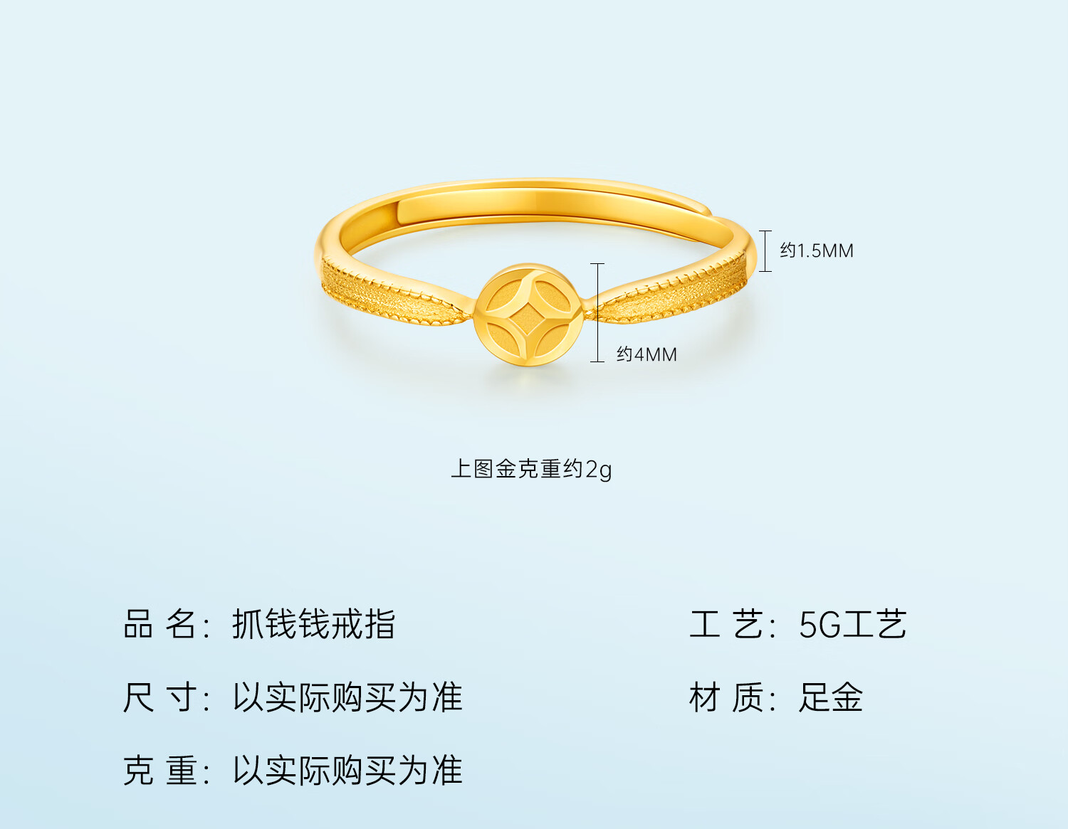 Zhongxin Jewelry Gold Ring 5G Craft Coin Pure Gold 999 Ring for Girlfriend Gift Gold Jewelry 2g