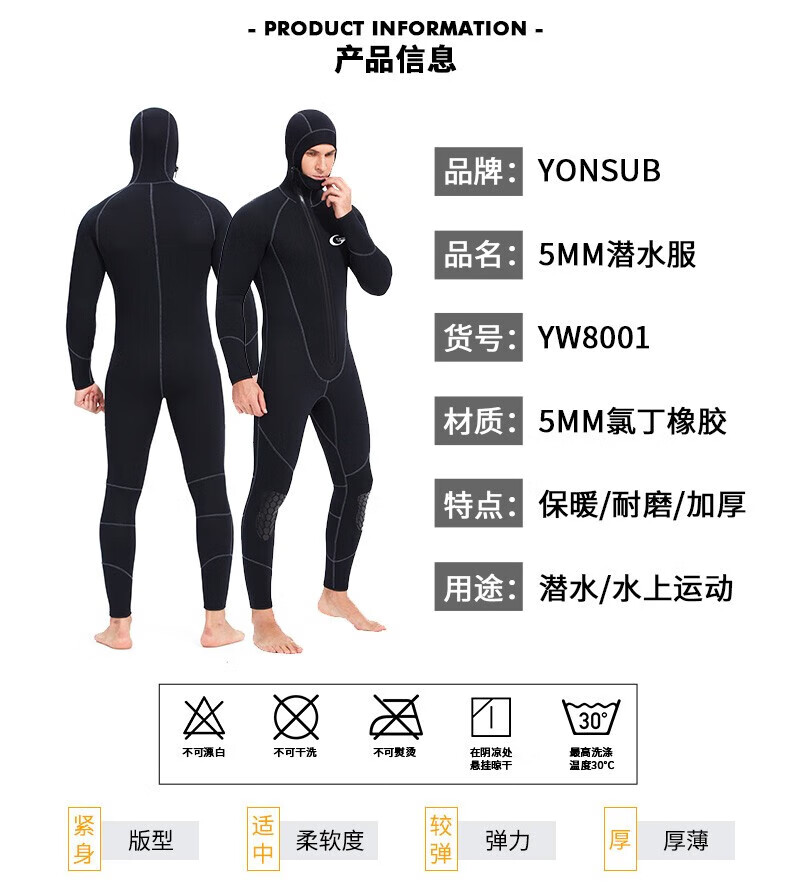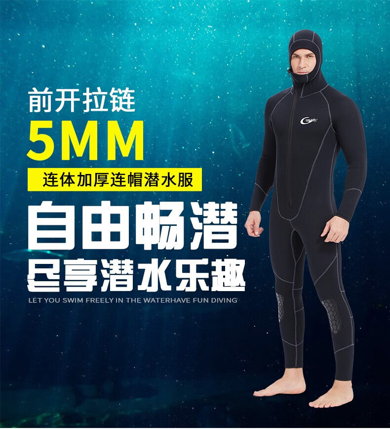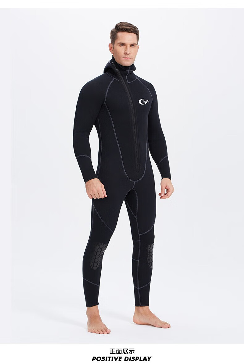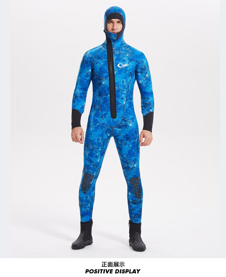 He Jiagong wetsuit one-piece thickened hooded wetsuit snorkeling suit 5mm winter swimming protection 5MM blue camouflage plus velvet style S