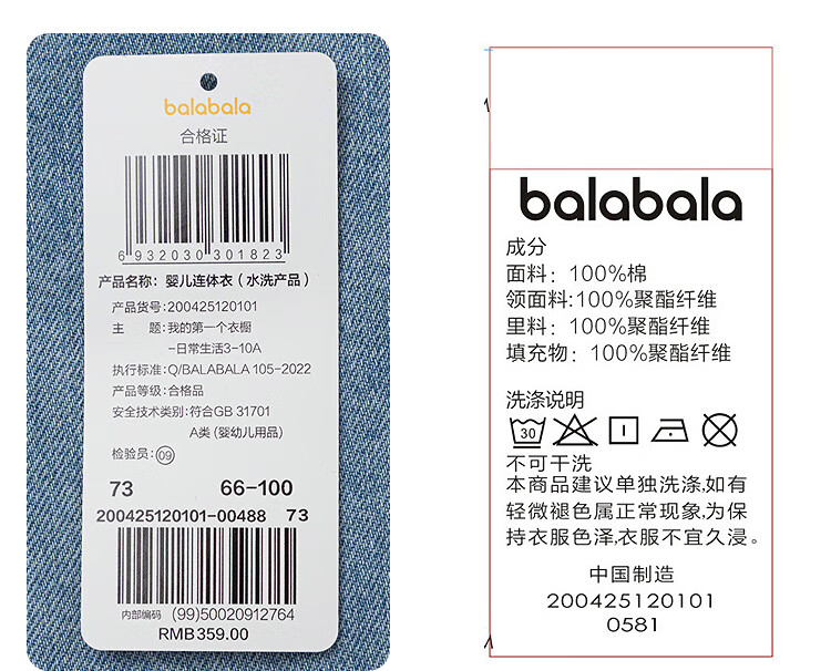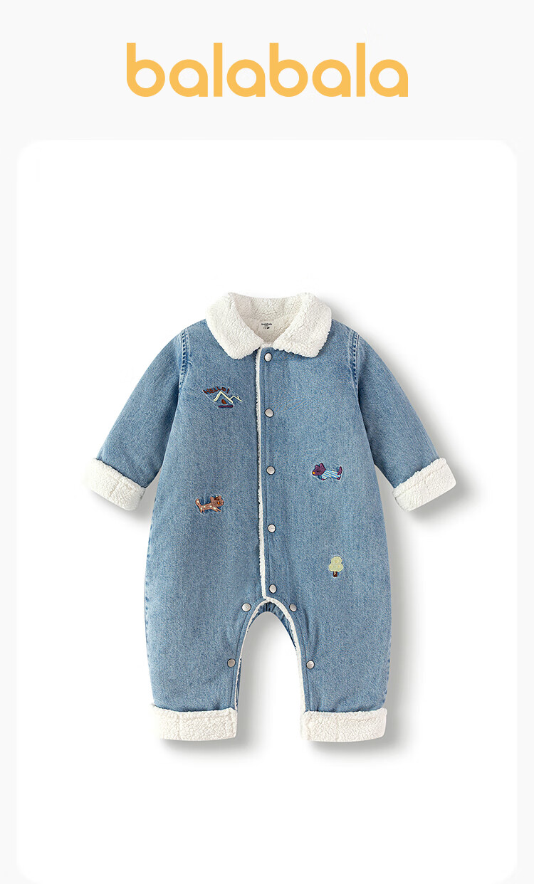 Balabala shopping mall same style baby outing jumpsuit boy's imitation lamb wool blue tone 00488 80cm