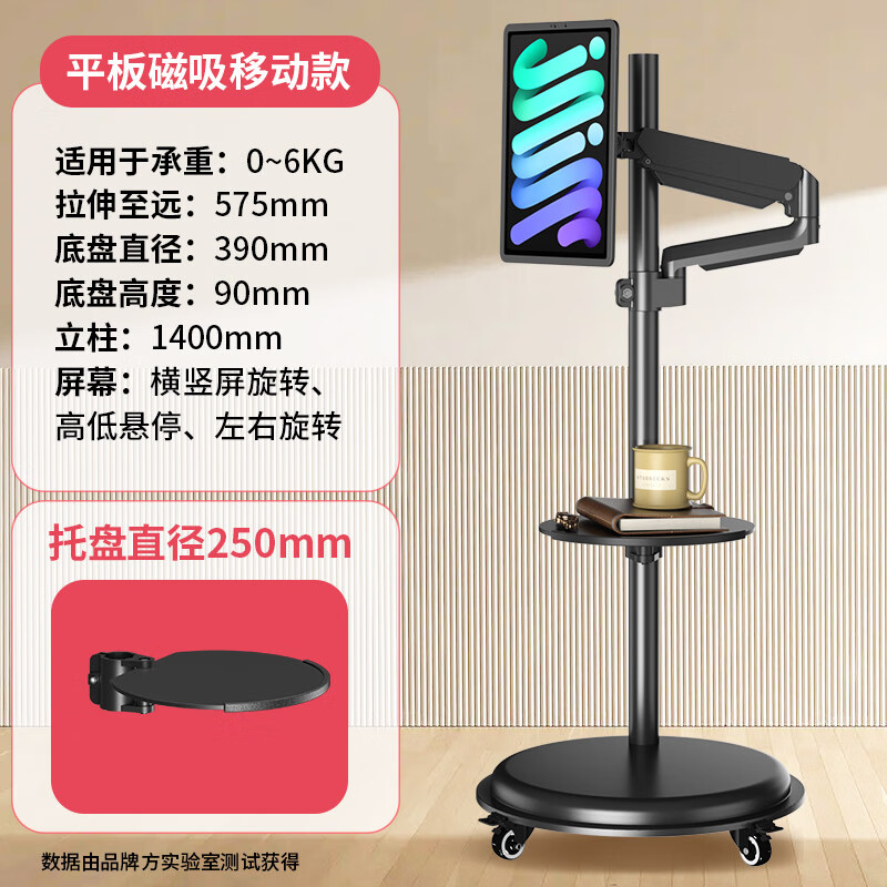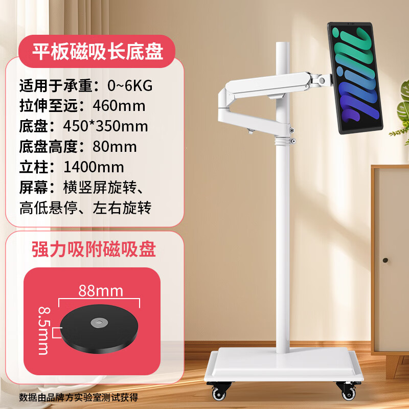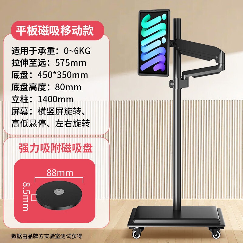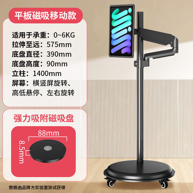 Sance (HILLPORT) strong magnetic tablet ipad stand bedside round tube floor-standing convenient screen no-clamp gap lazy stand floor-standing movable wheeled air pressure arm up and down rotation square bottom huge stable 88MM large magnetic suction head tablet/mobile phone cantilever holder