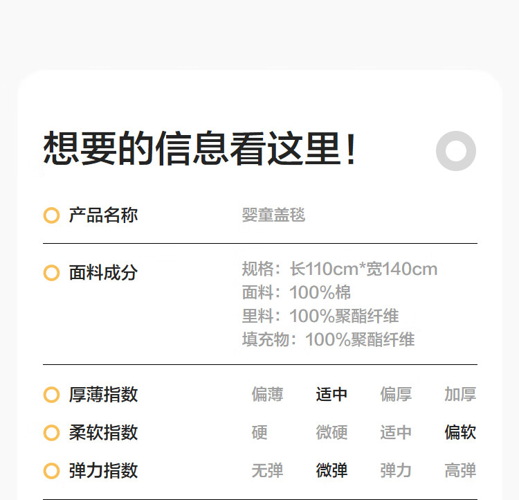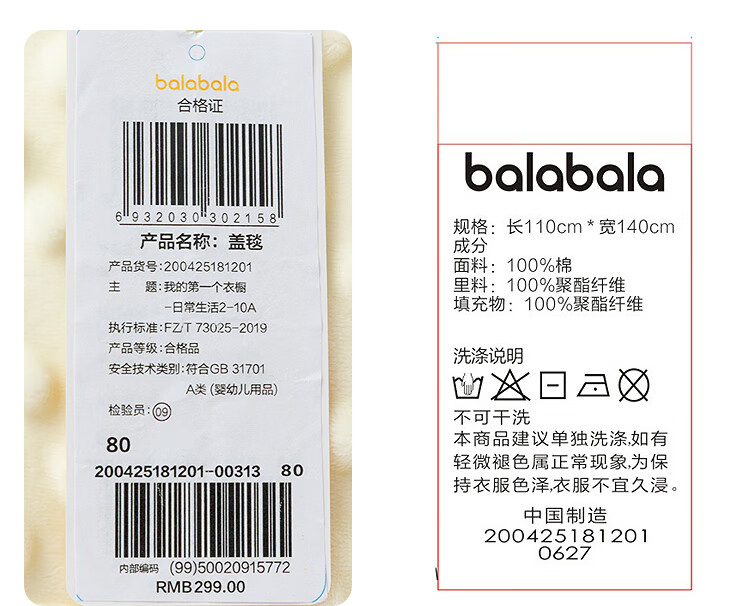BALABALA shopping mall same style baby blanket newborn quilt beanie blanket 2025 new soft white and yellow tone 00313 80cm