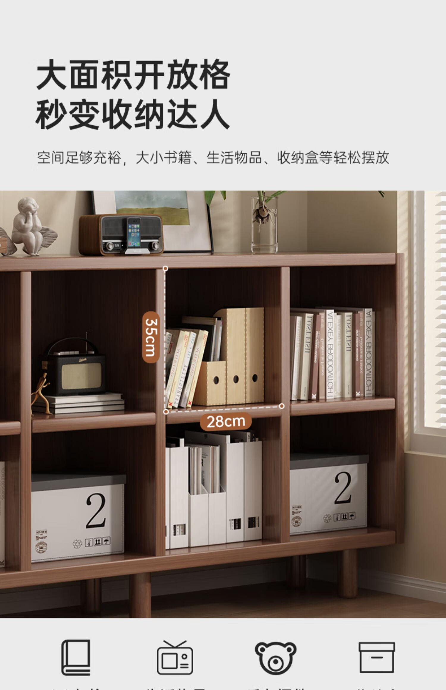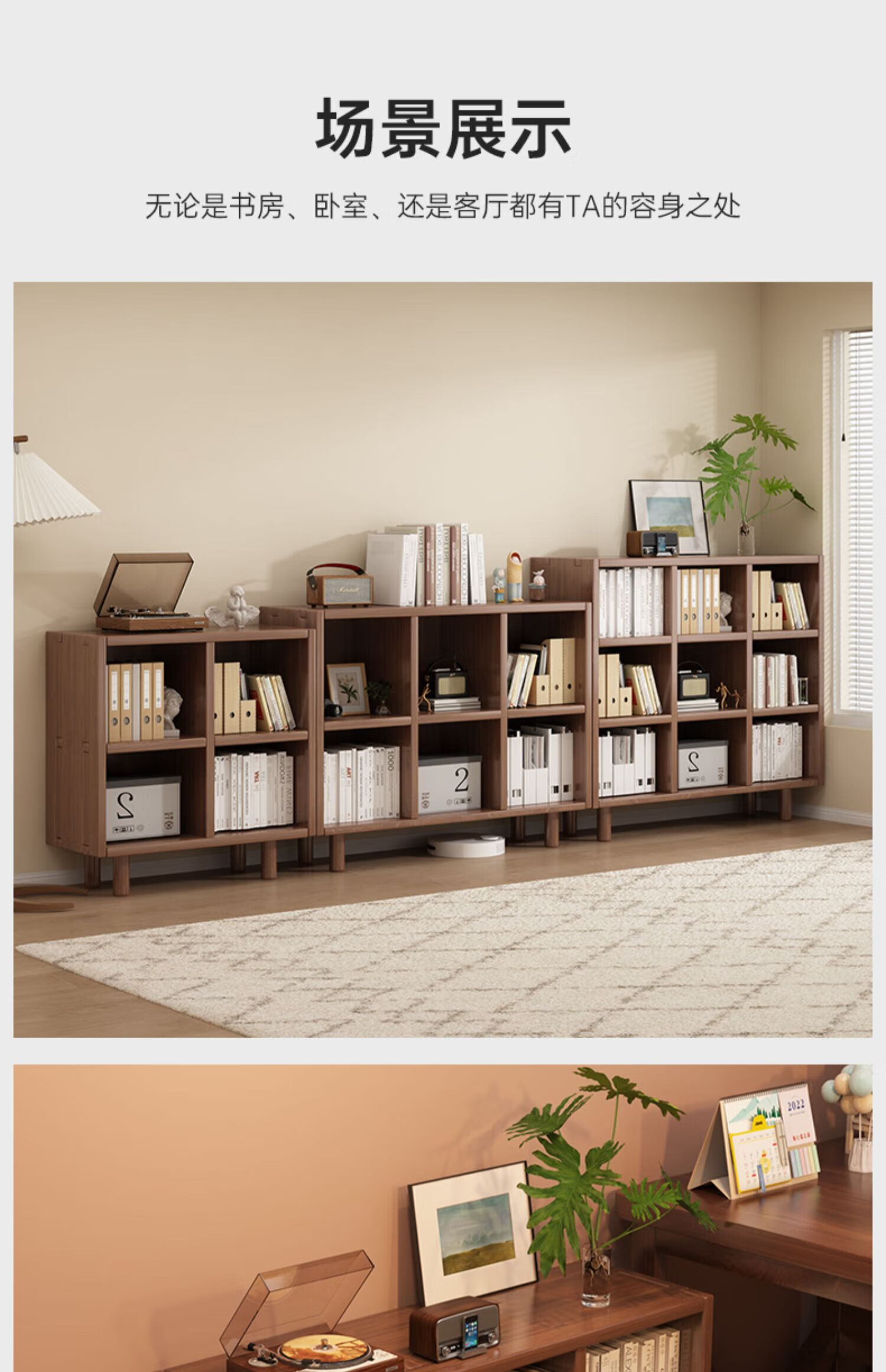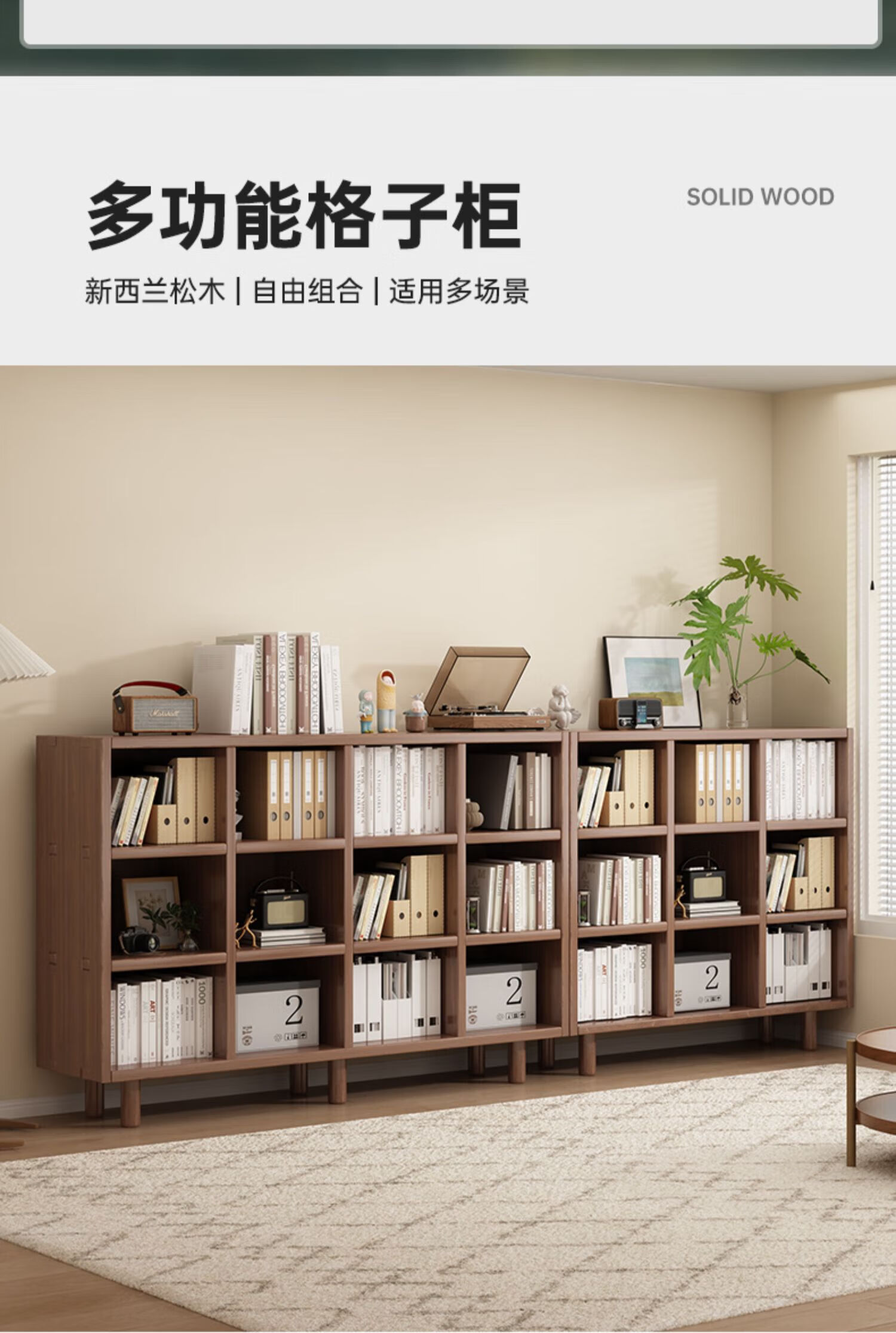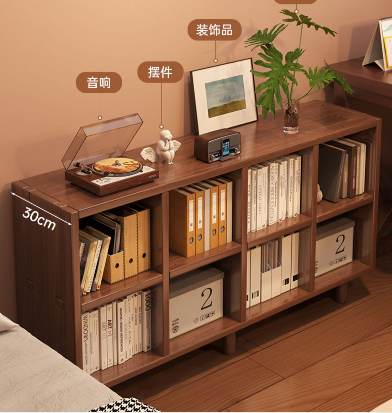 Solid wood bookshelf household low cabinet floor-standing storage rack combination simple bookcase storage grid cabinet storage cabinet eight grid heightening 120 all solid wood mortise and tenon splicing