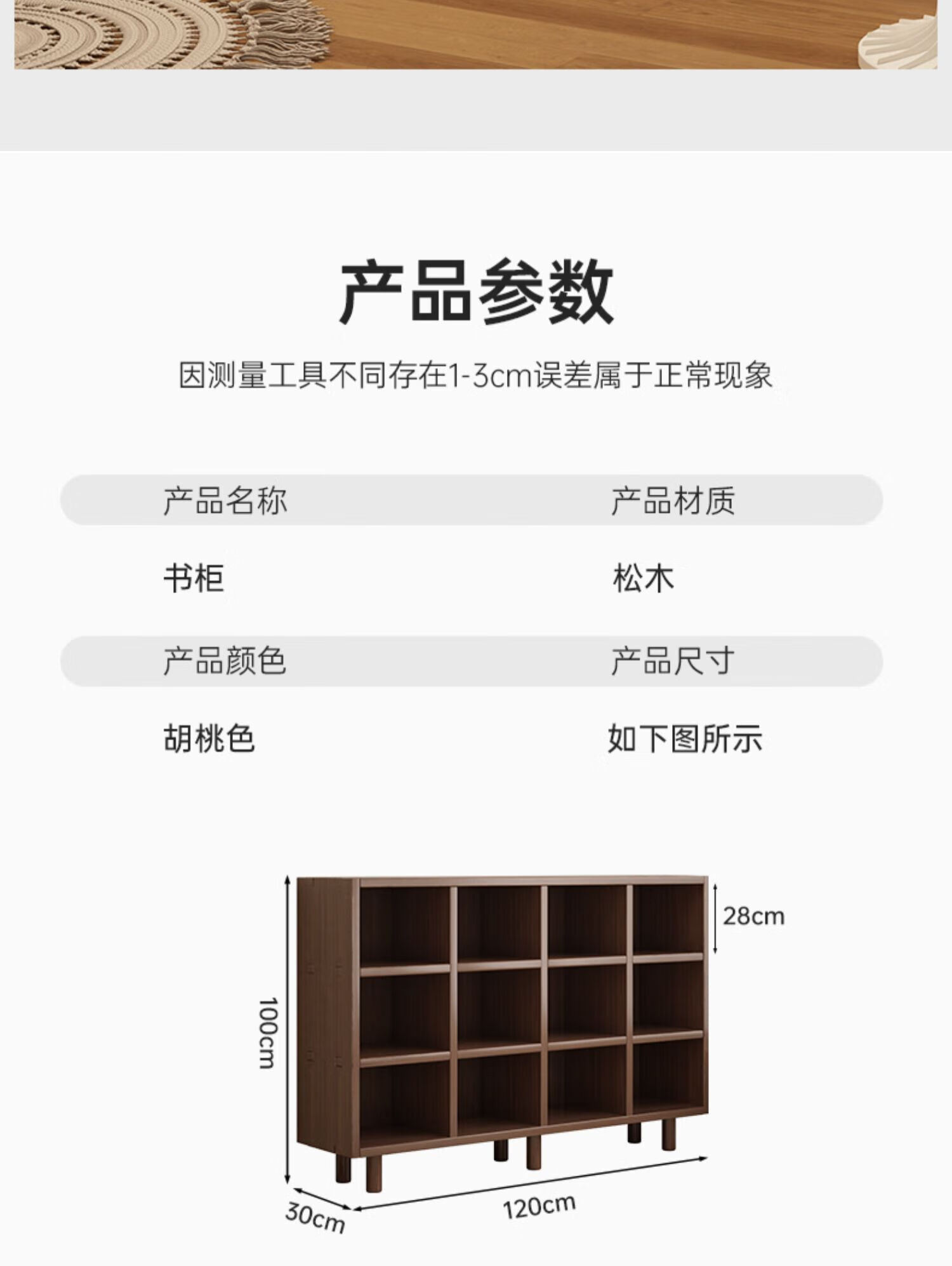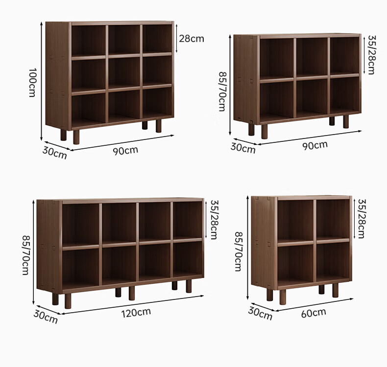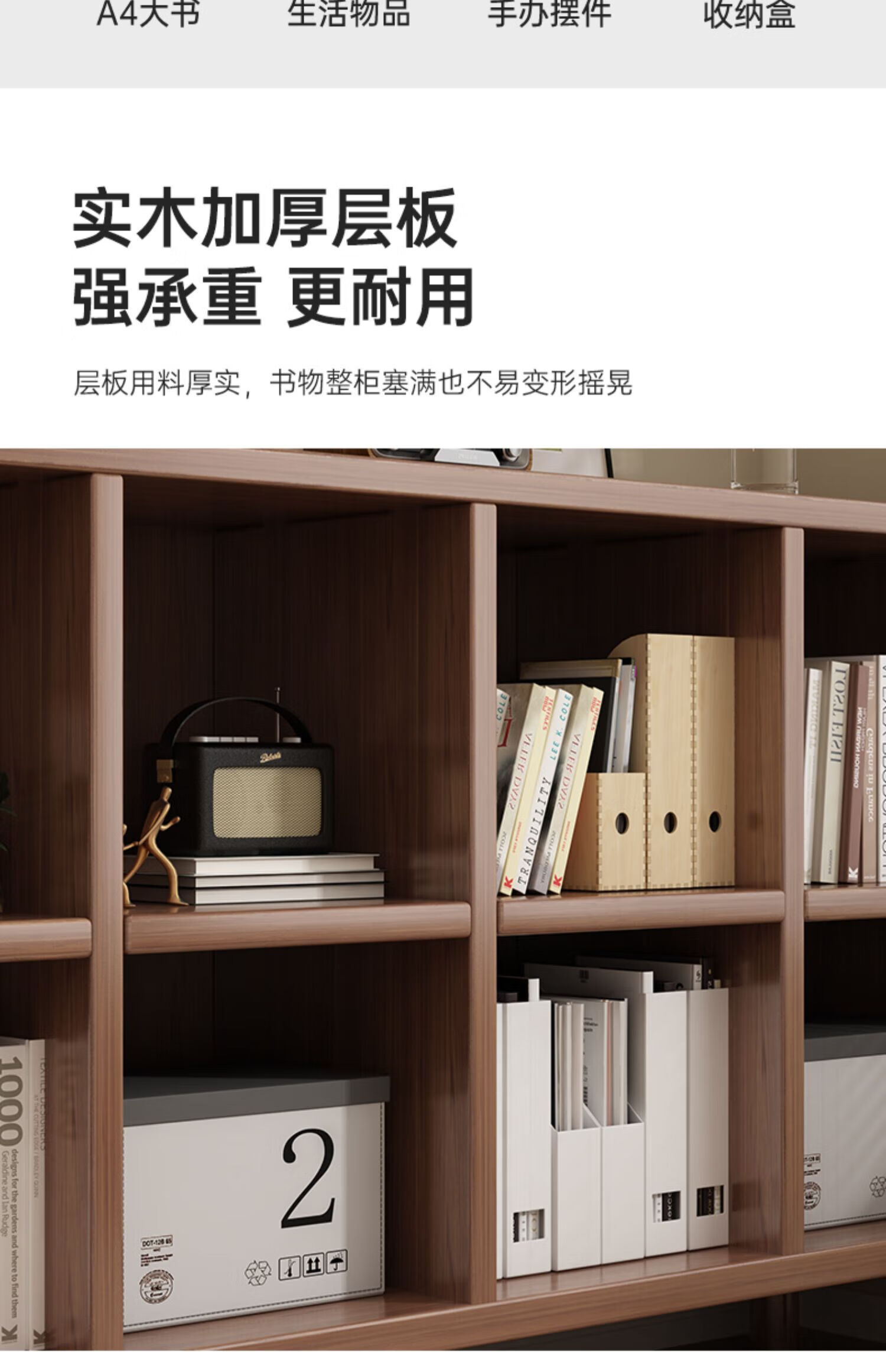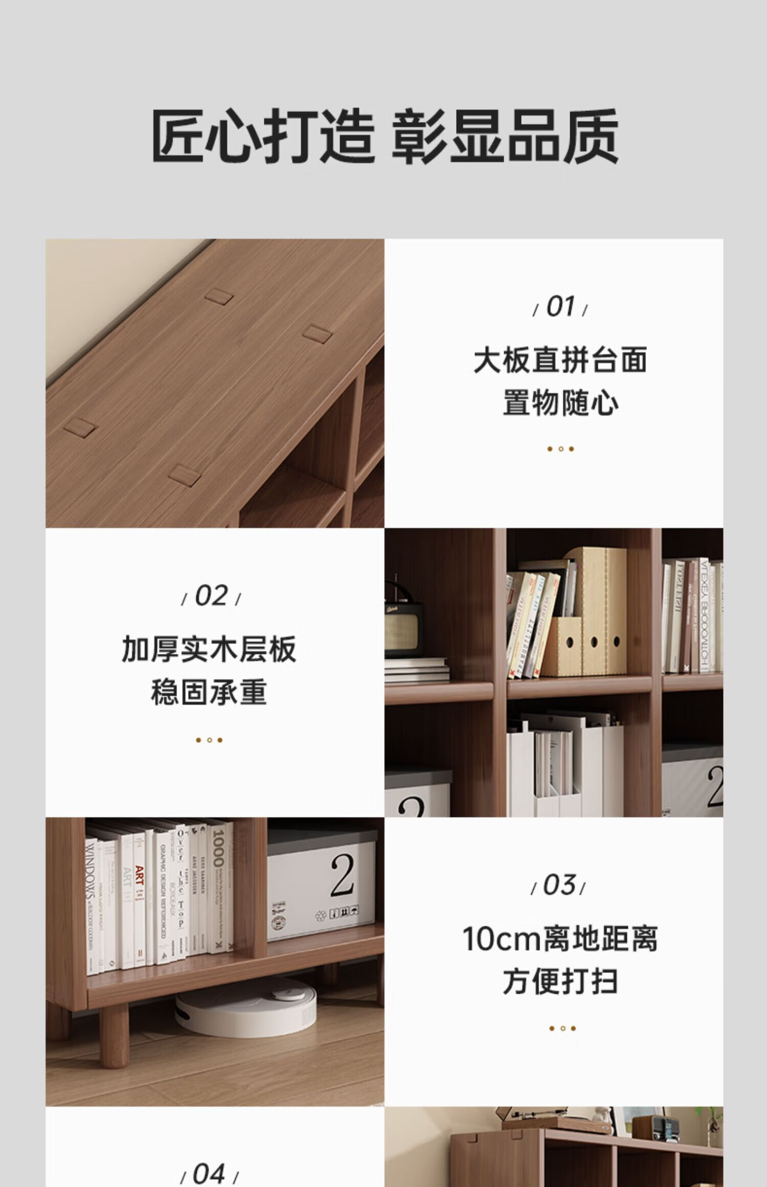Solid wood bookshelf household low cabinet floor-standing storage rack combination simple bookcase storage grid cabinet storage cabinet eight grid heightening 120 all solid wood mortise and tenon splicing