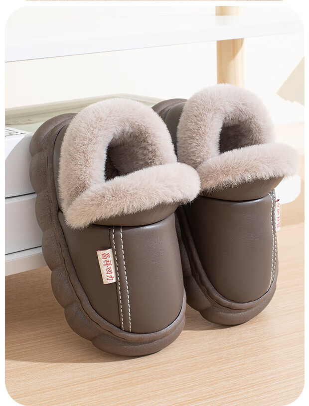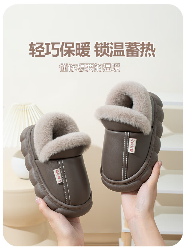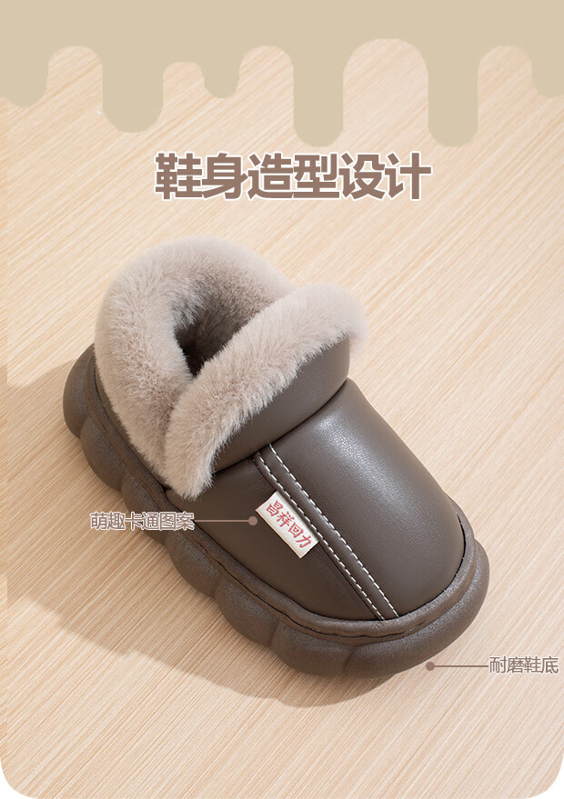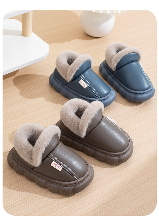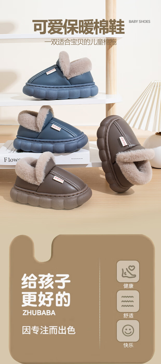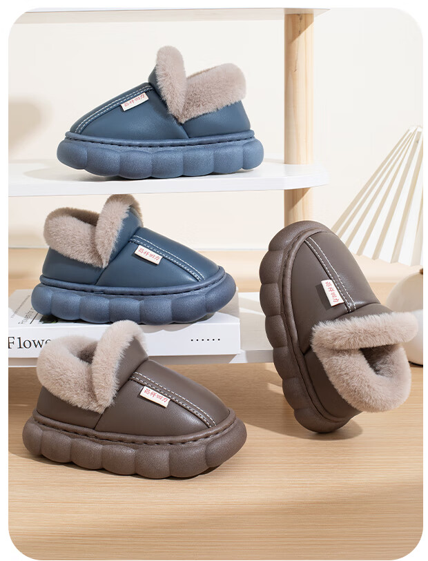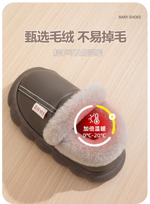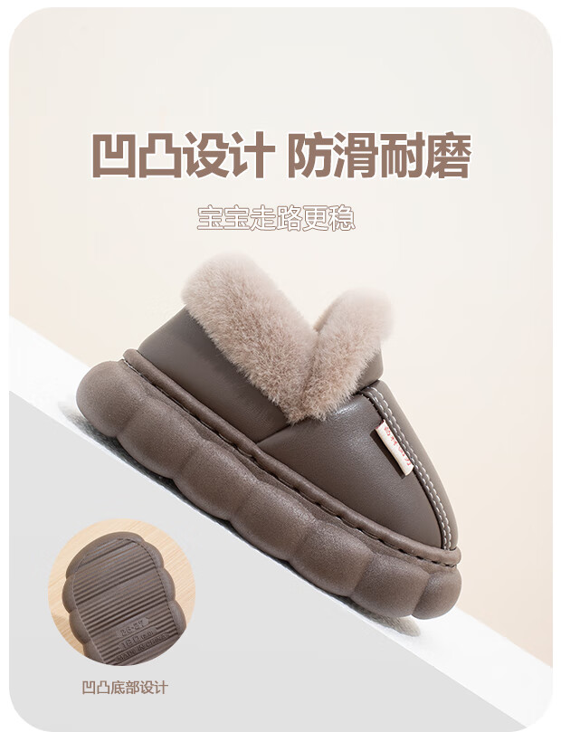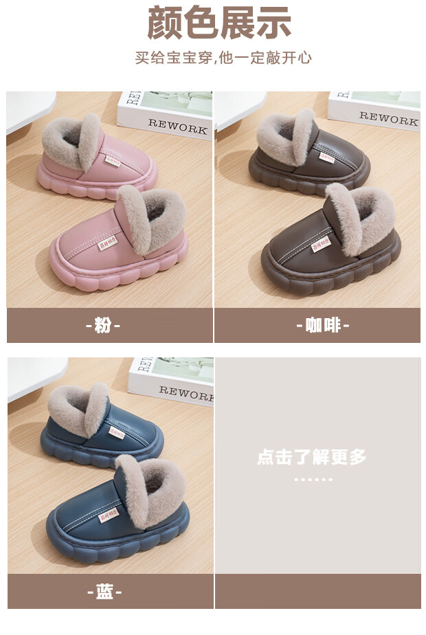 New autumn and winter cotton slippers for boys and girls, thick-soled, non-slip, indoor home, winter plus velvet, warm cotton slippers, triangle T-pink upgraded version 12 34/35, inner length 21CM