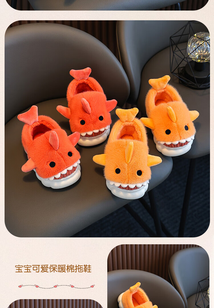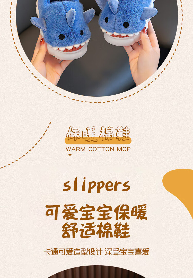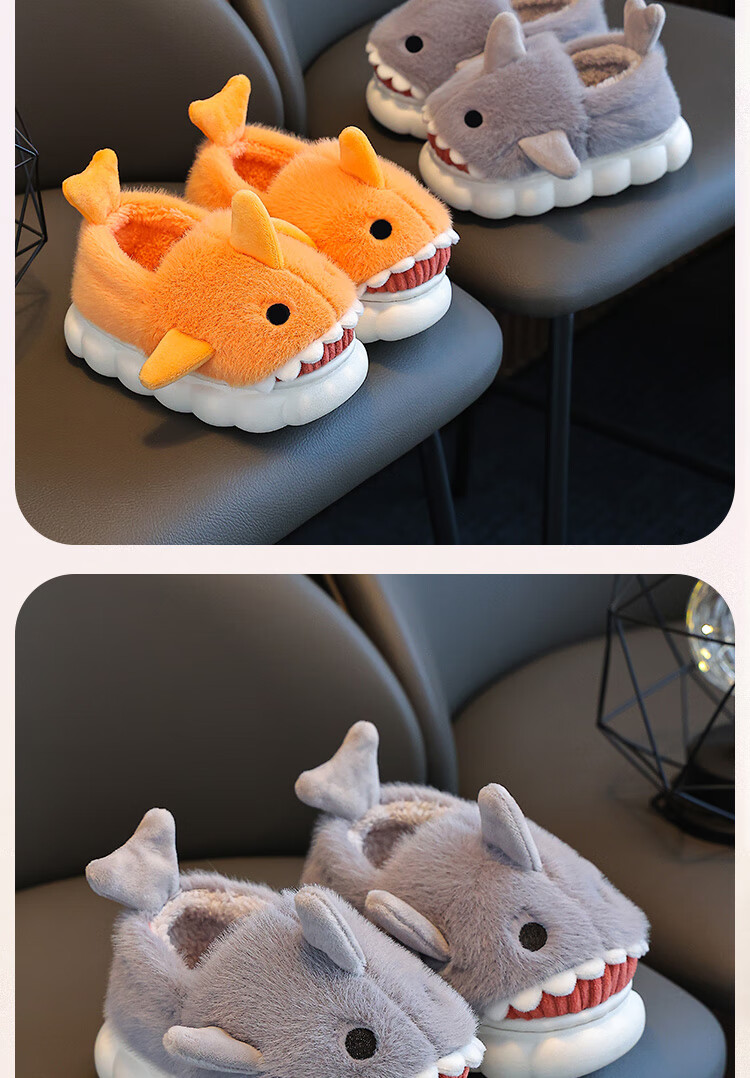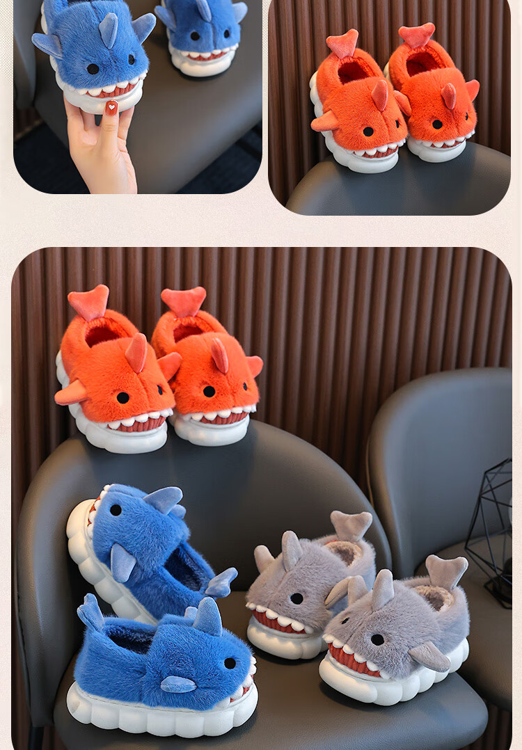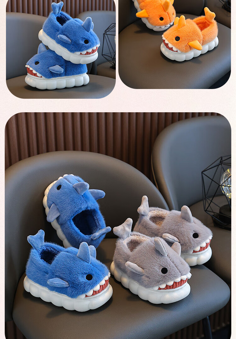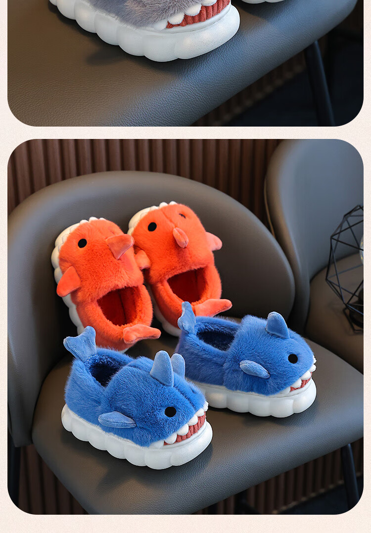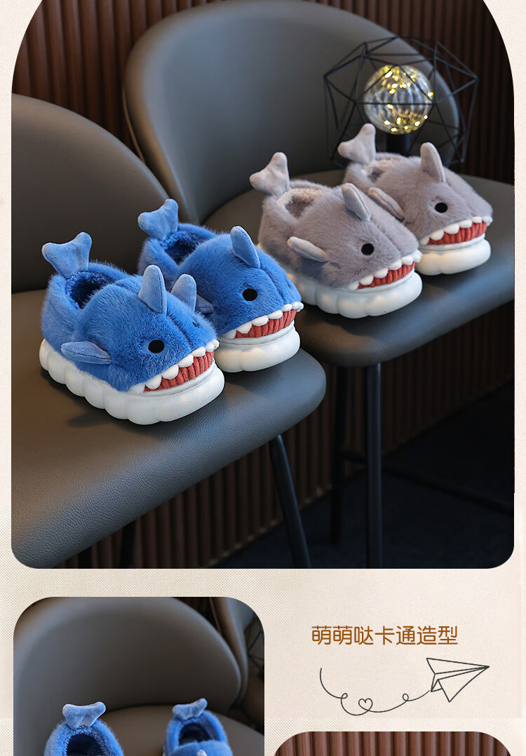 Children's cotton slippers autumn and winter waterproof home indoor non-slip boys cute shark pattern baby kids cotton slippers dark blue 12 36/37 size inner length 22.5CM