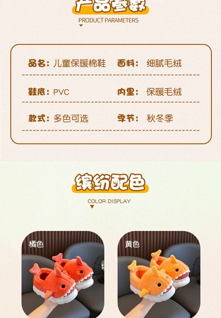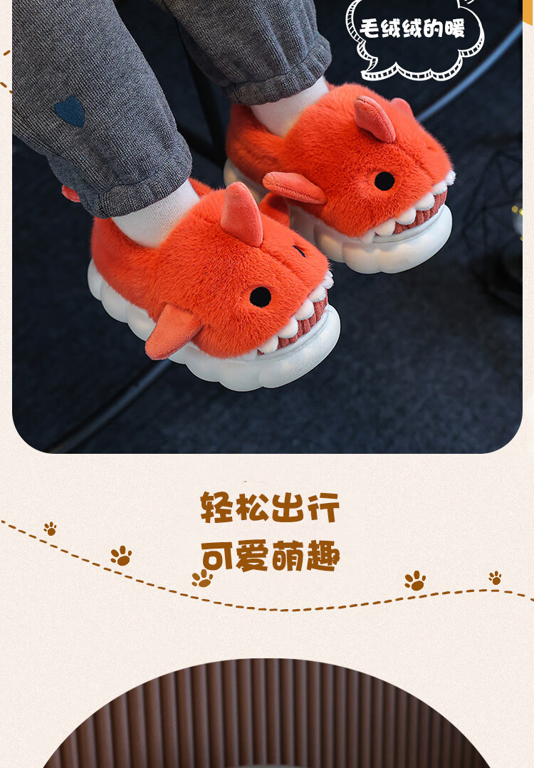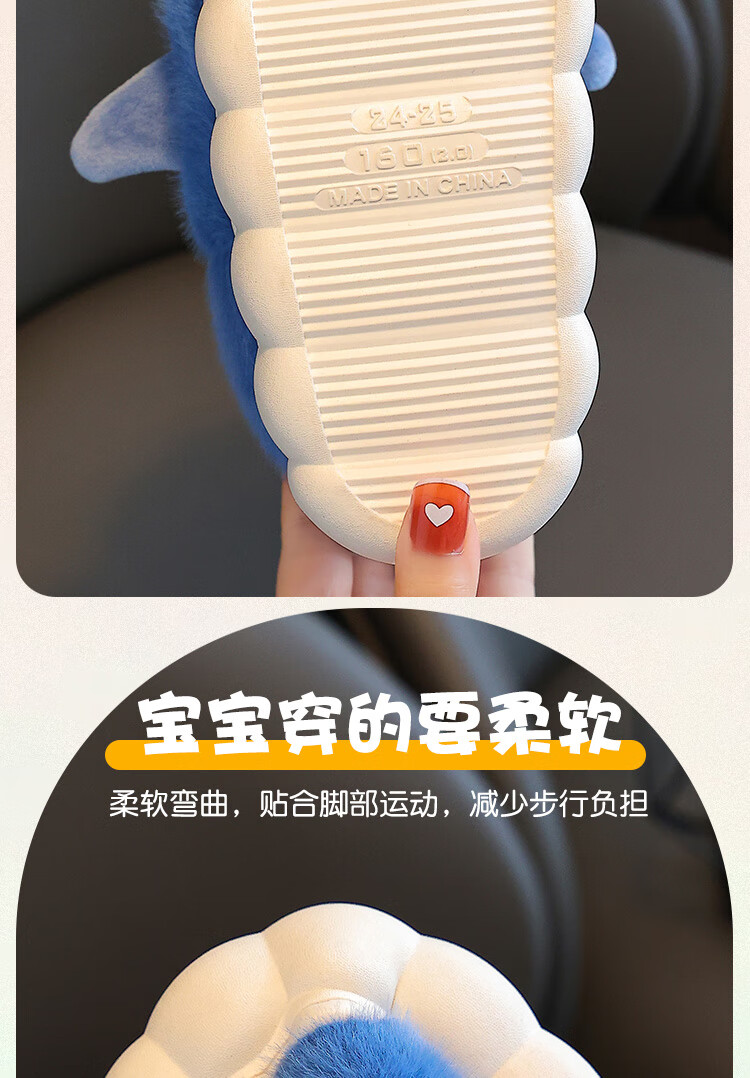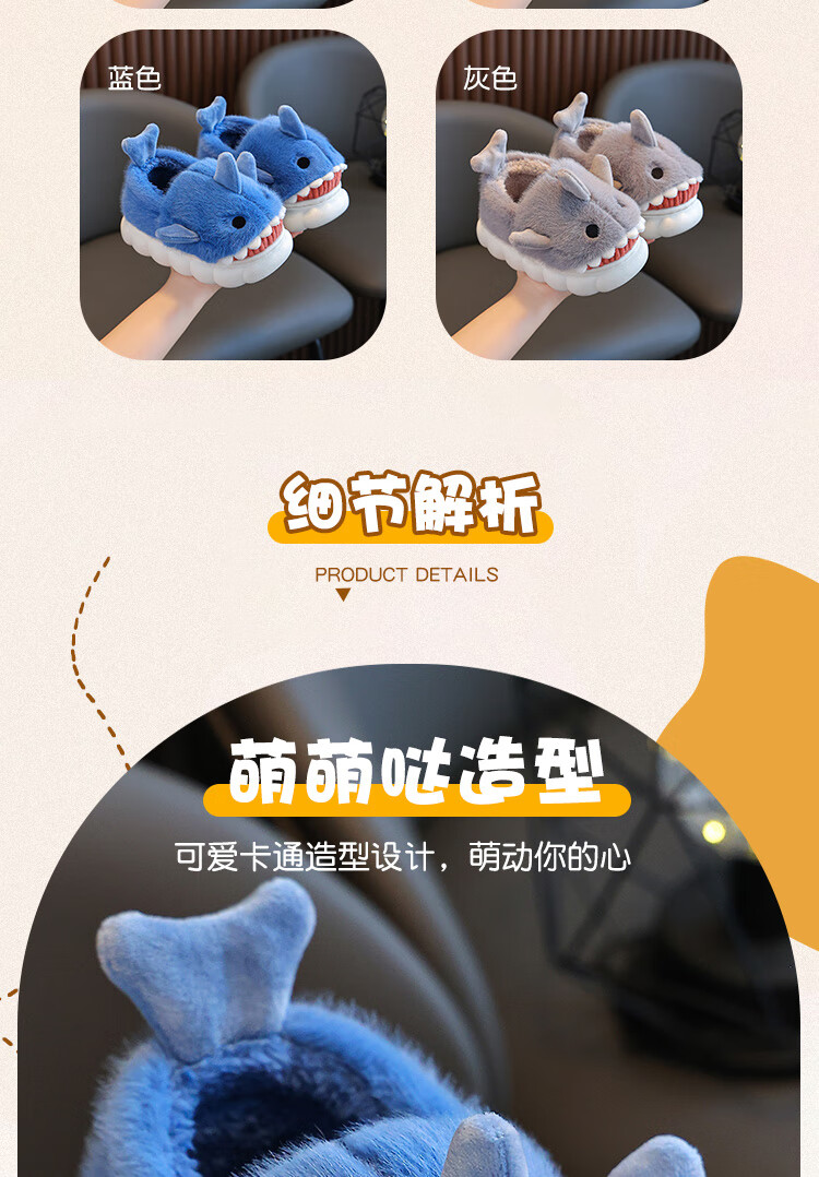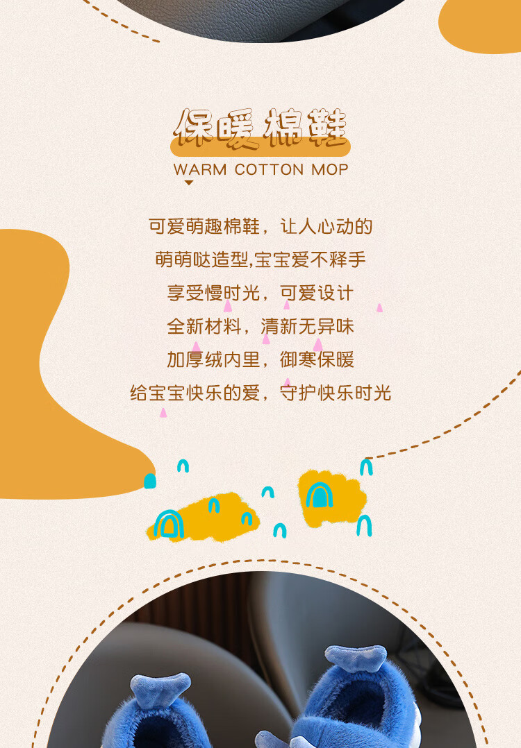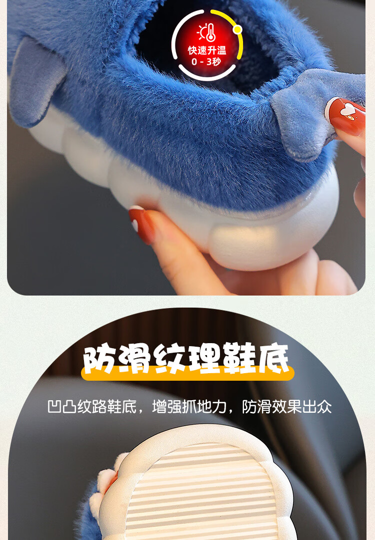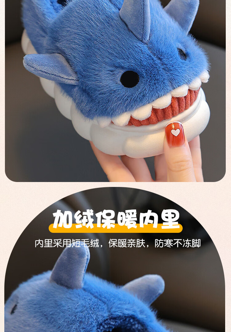 Children's cotton slippers autumn and winter waterproof home indoor non-slip boys cute shark pattern baby kids cotton slippers dark blue 12 36/37 size inner length 22.5CM