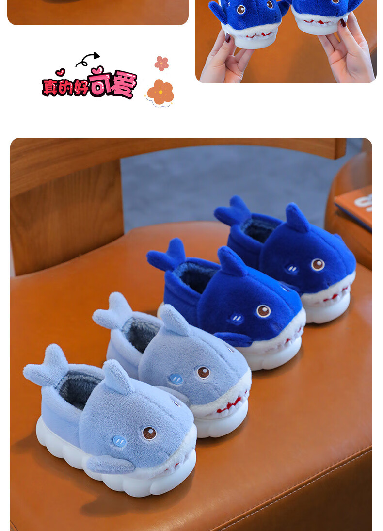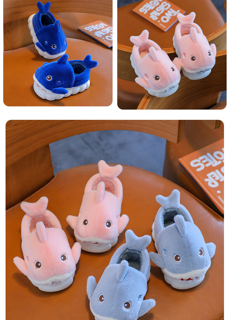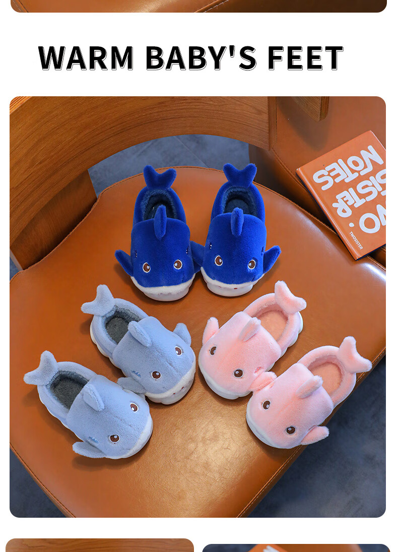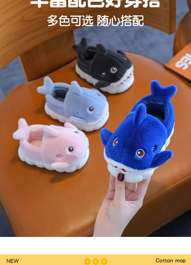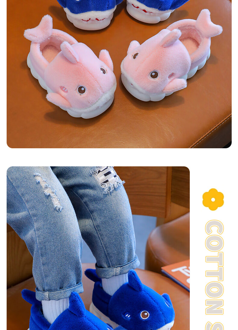 New Autumn and Winter Children's Cotton Slippers for Boys and Girls Indoor Cartoon Shark Slippers for Girls Baby Bag Heels Cotton Shoes Upgraded Version - Pink - Cotton 12 26/27 Size Inner Length 16CM