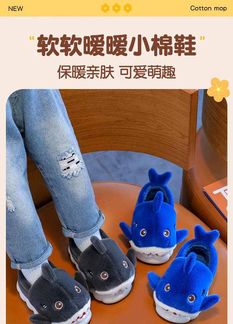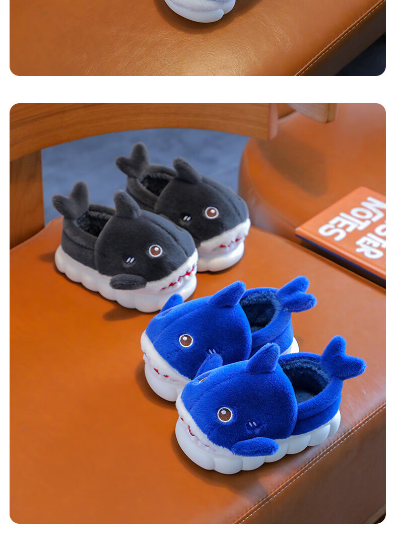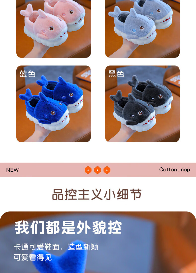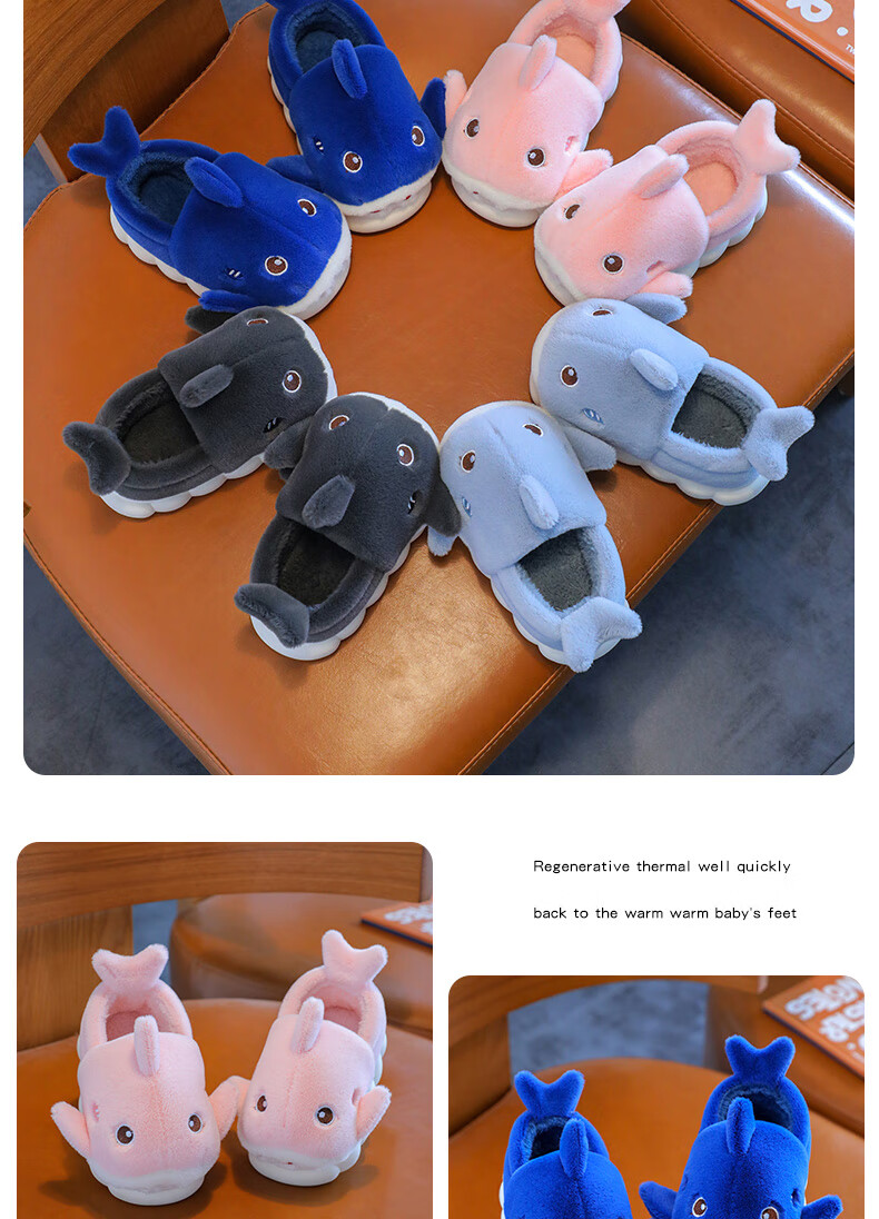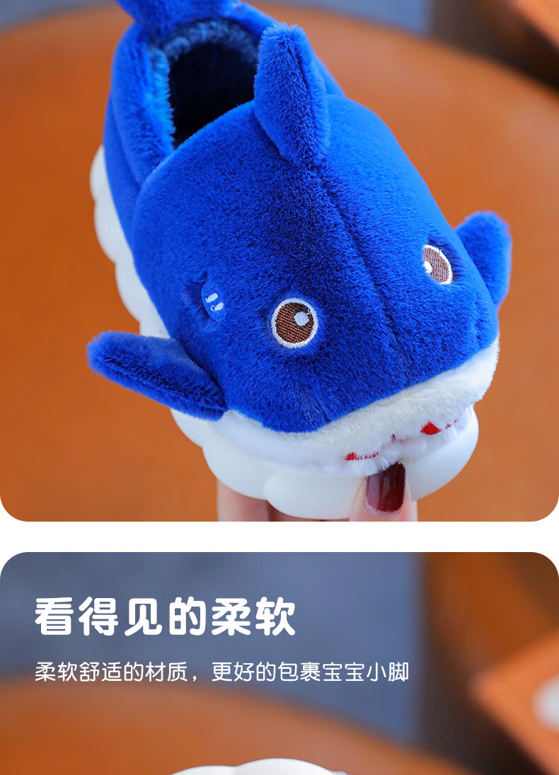 New Autumn and Winter Children's Cotton Slippers for Boys and Girls Indoor Cartoon Shark Slippers for Girls Baby Bag Heels Cotton Shoes Upgraded Version - Pink - Cotton 12 26/27 Size Inner Length 16CM