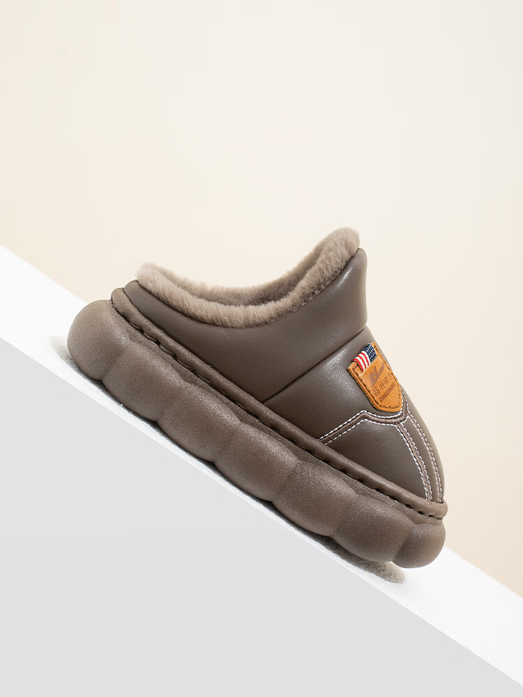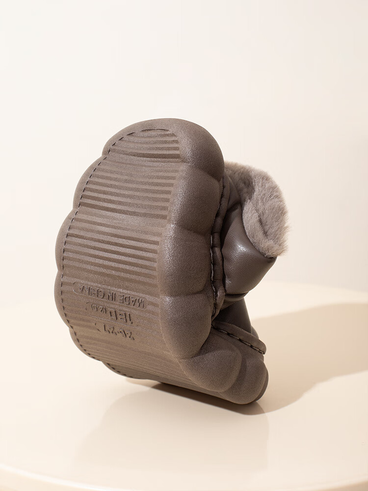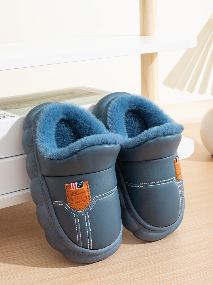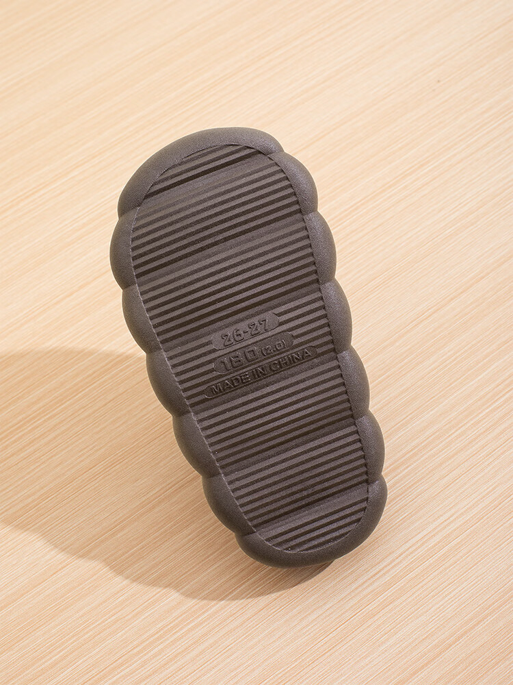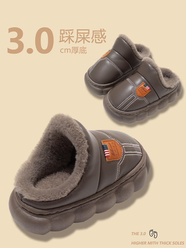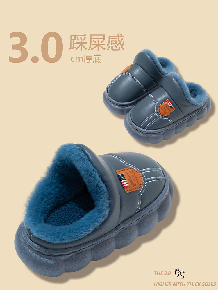 Autumn and winter cotton slippers for boys and girls, thick-soled non-slip cotton slippers for indoor and outdoor use, plus velvet and warm cotton slippers for boys and girls, leather label T-grey 12 38/39 adult one size smaller