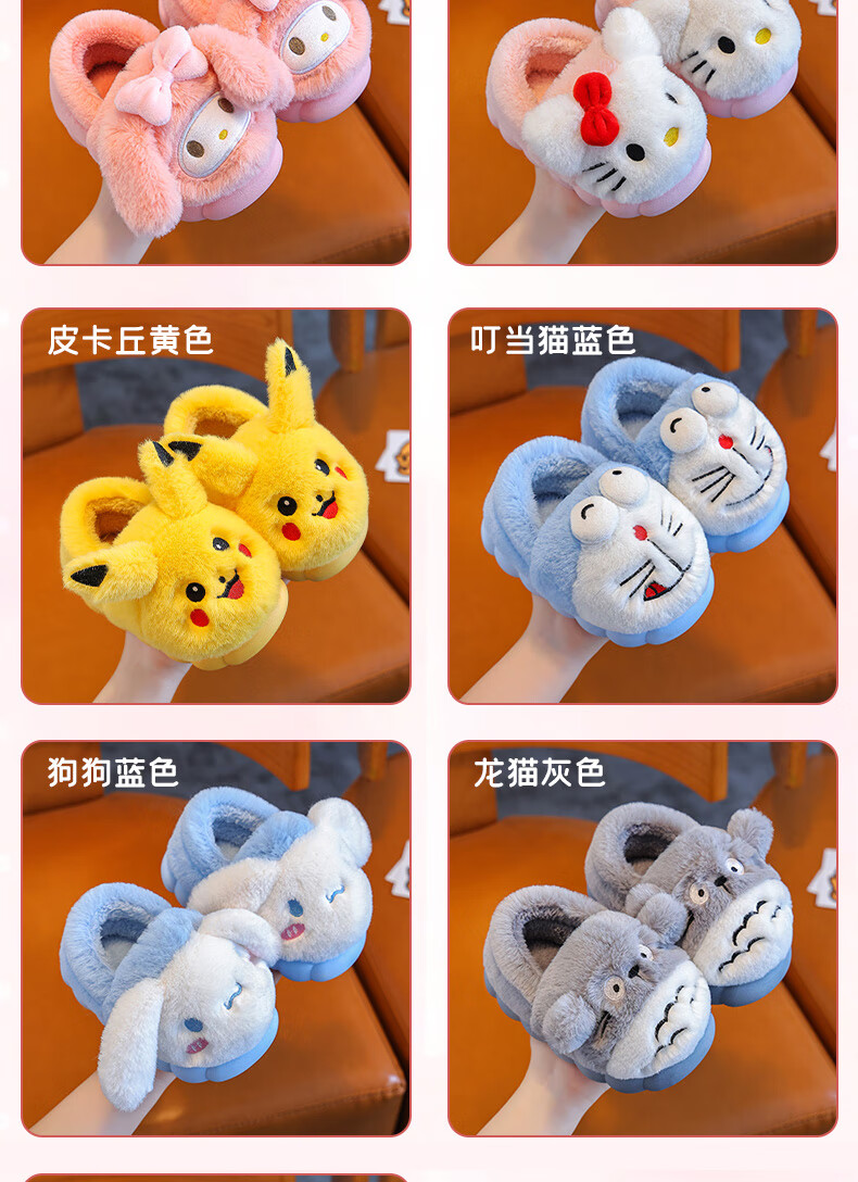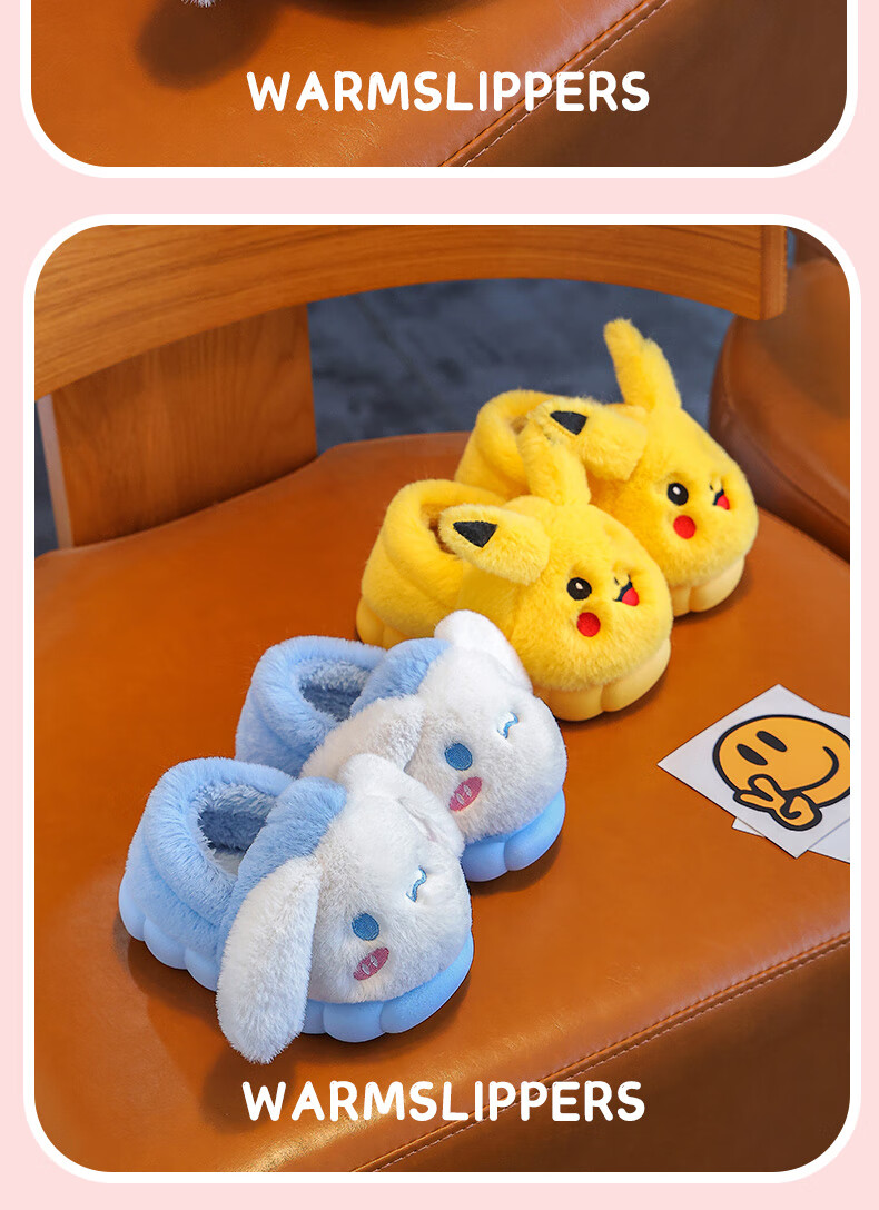 New autumn and winter cartoon children's cotton slippers, medium and large children's baby cotton slippers, cute parent-child home non-slip warm cotton, upgraded version yellow-slippers 12 34/35 size inner length 21.5CM
